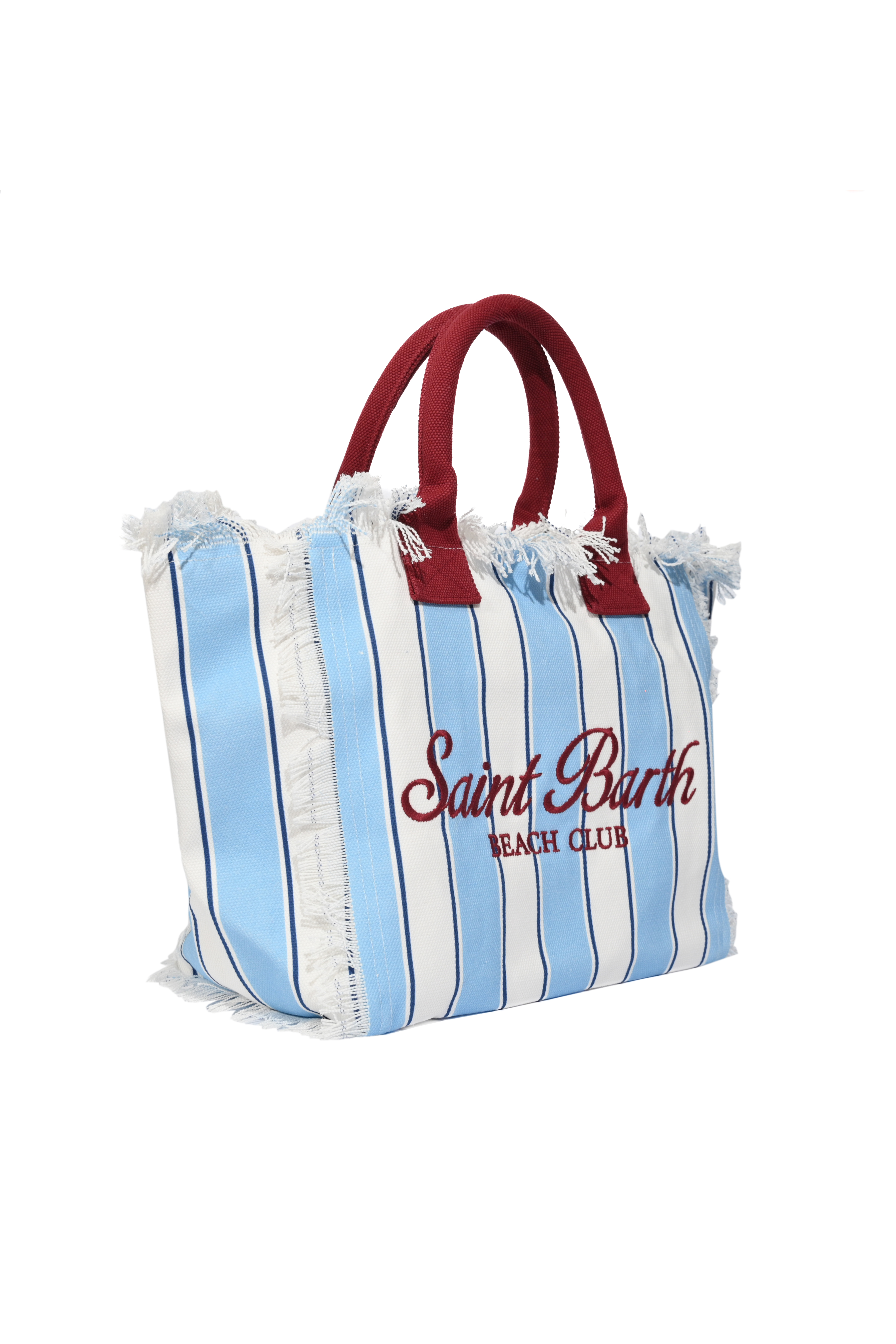- Dettagli: logo Saint Barth ricamato a contrasto, cuciture a vista, bordi sfrangiati, dettagli bordeaux