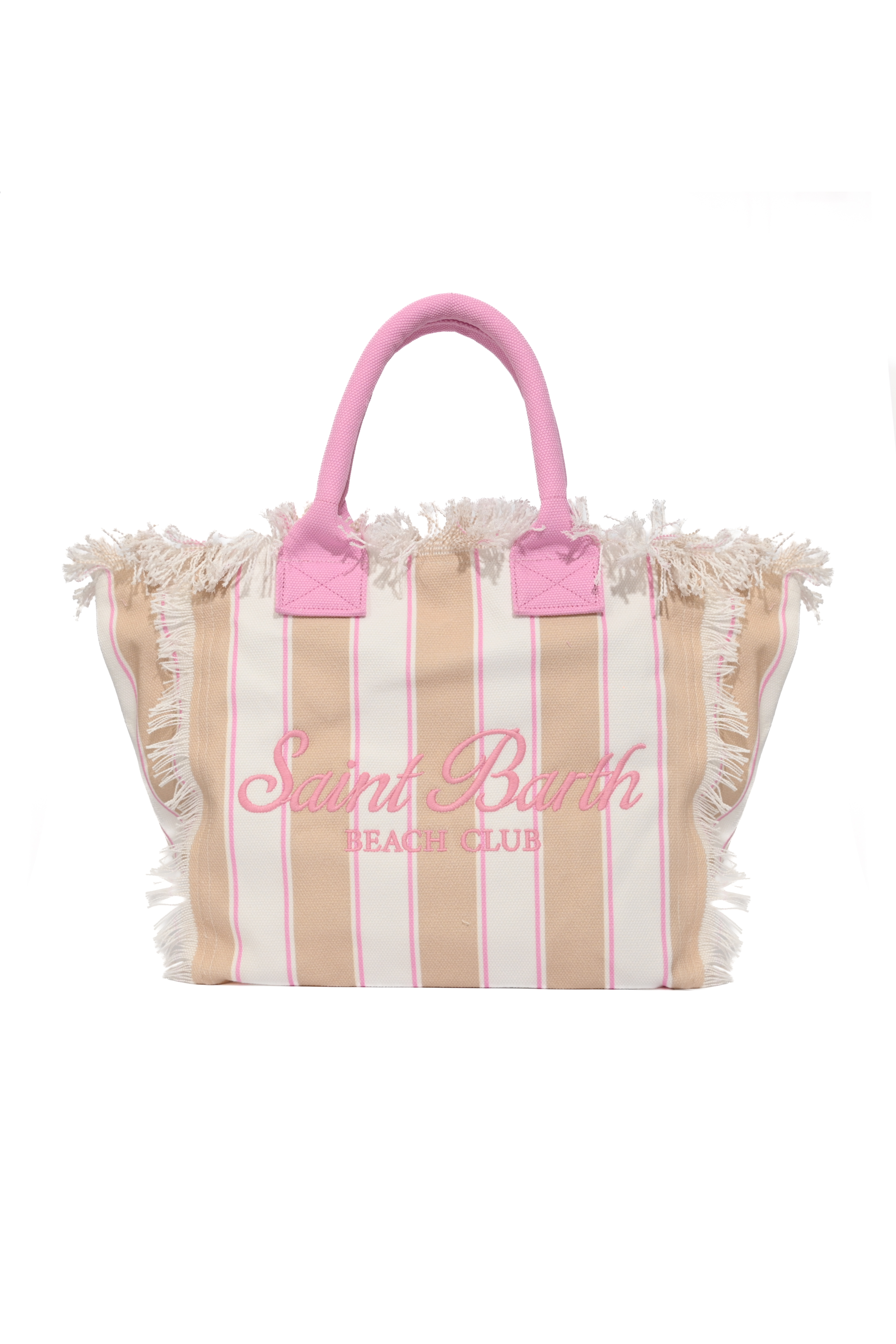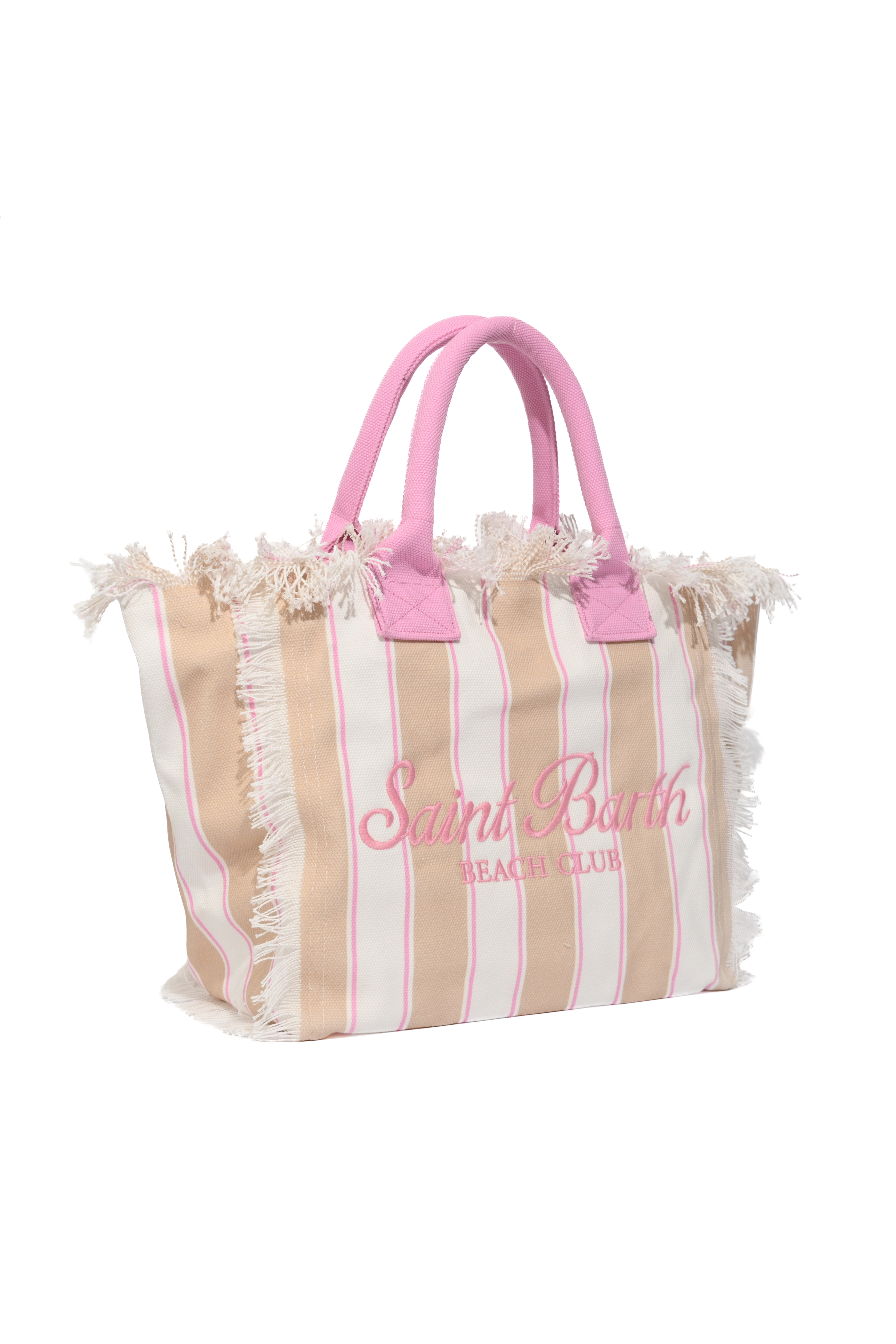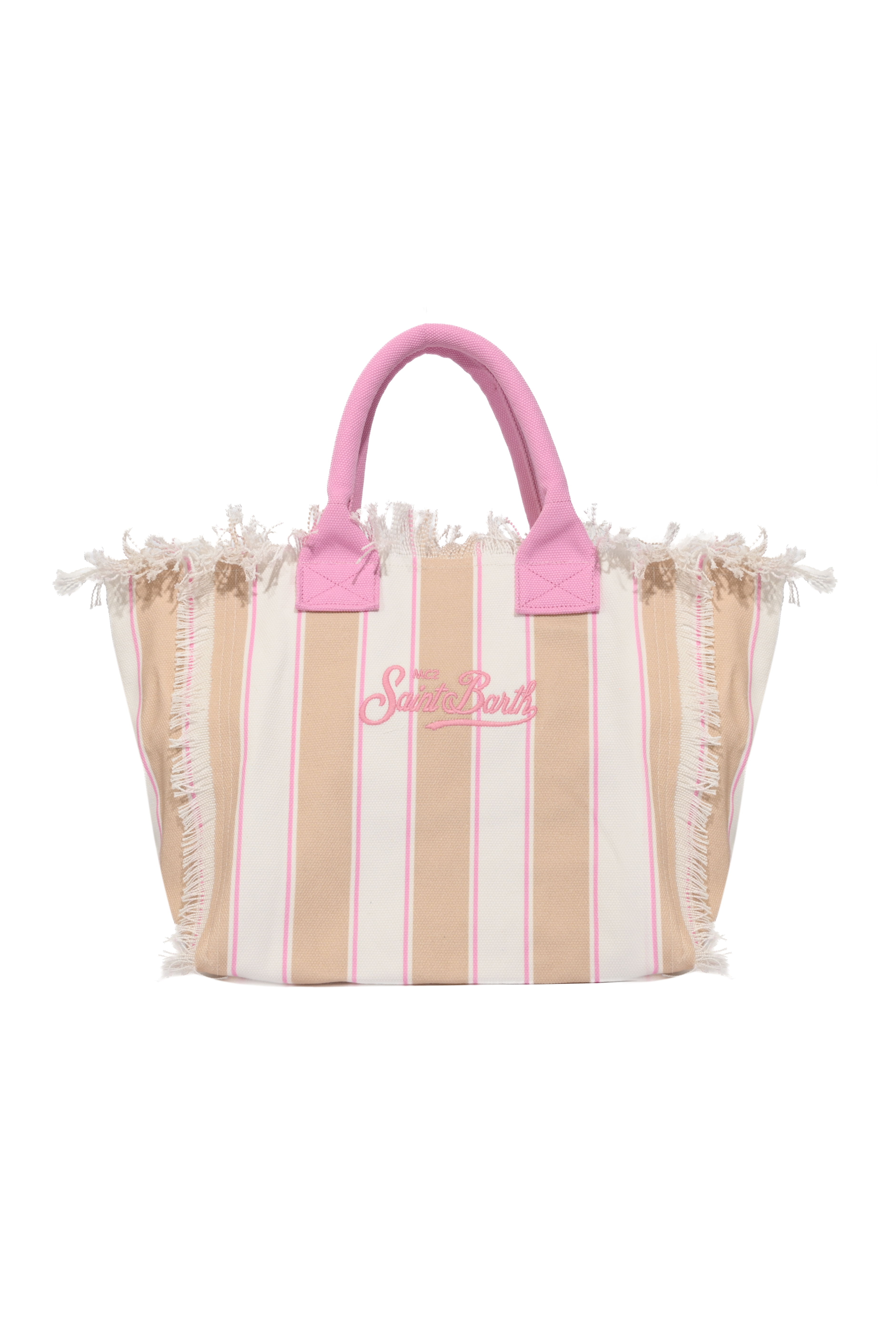 Borsa in canvas di cotone a righe beige con dettagli rosa, MC2 Saint Barth, modello Vanity Regular