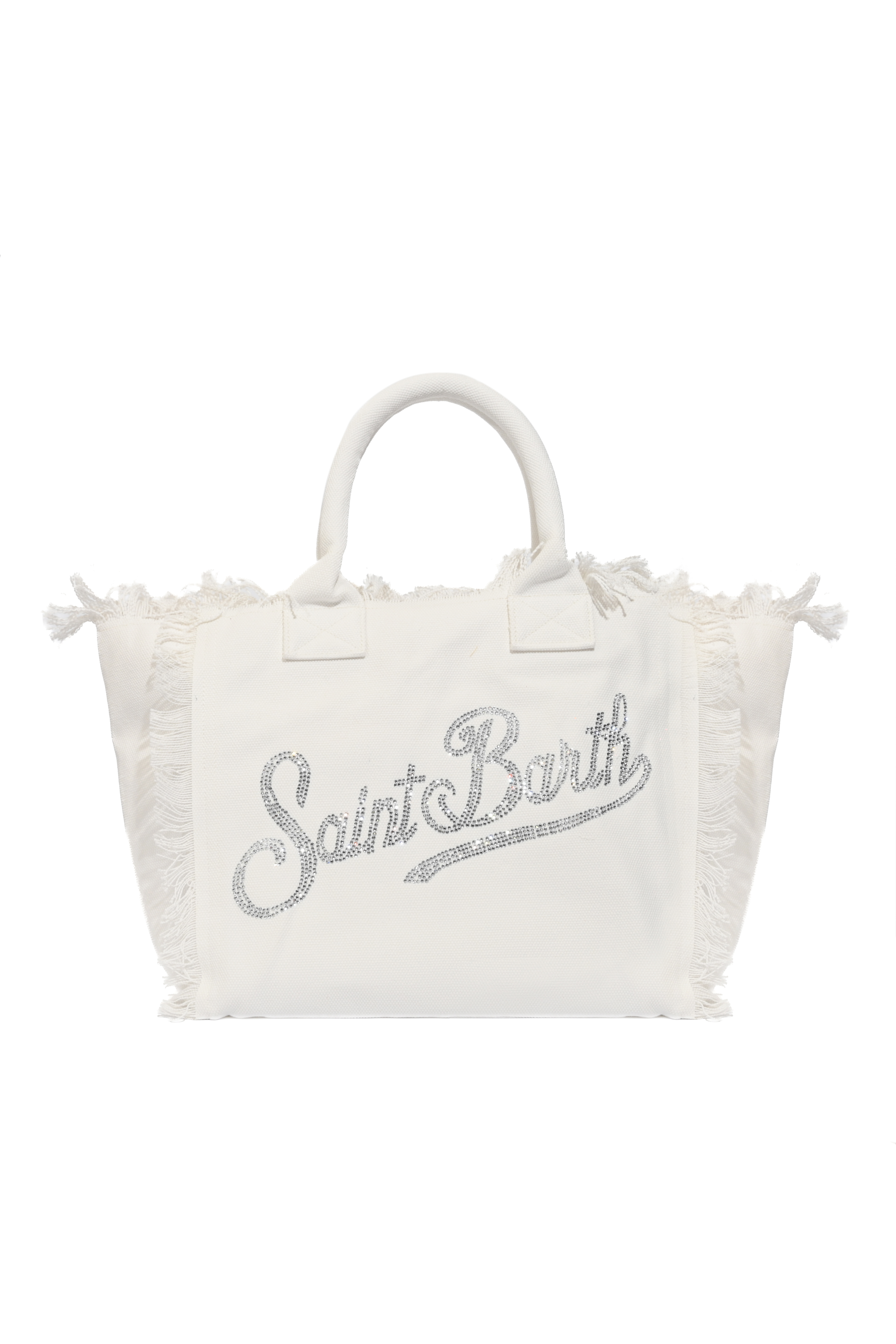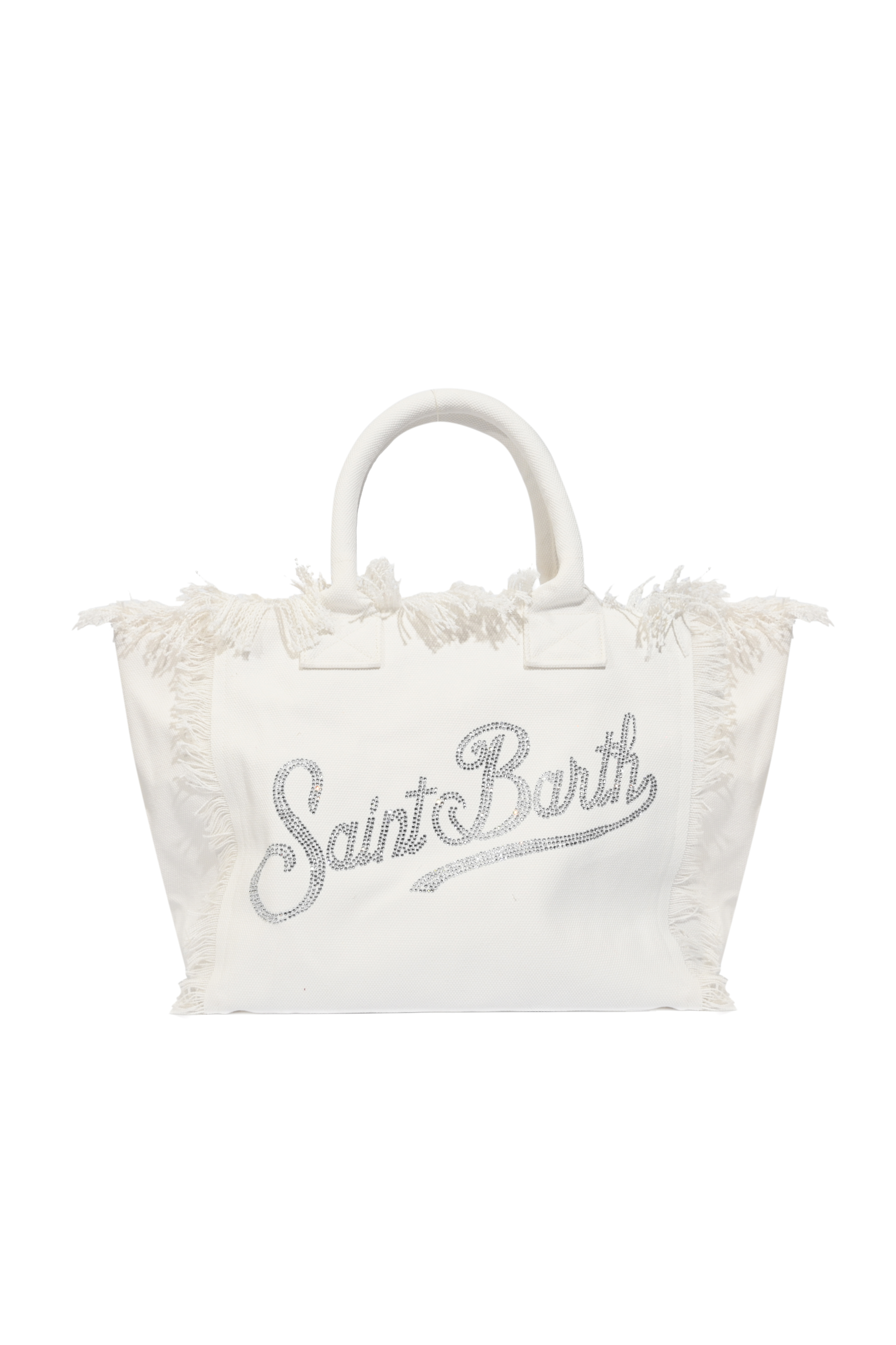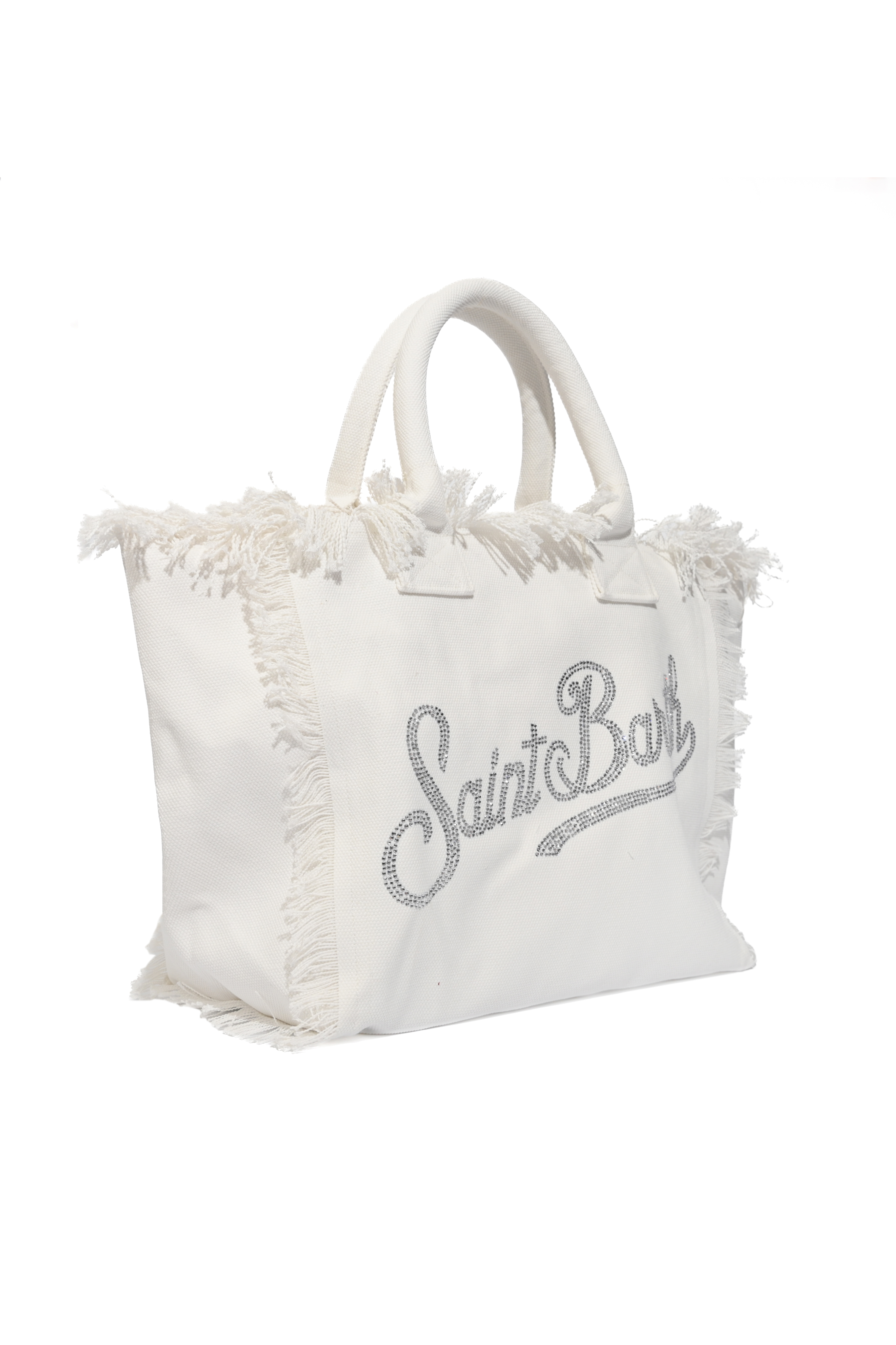 Borsa in canvas bianca con logo in strass, MC2 Saint Barth, modello Vanity Regular