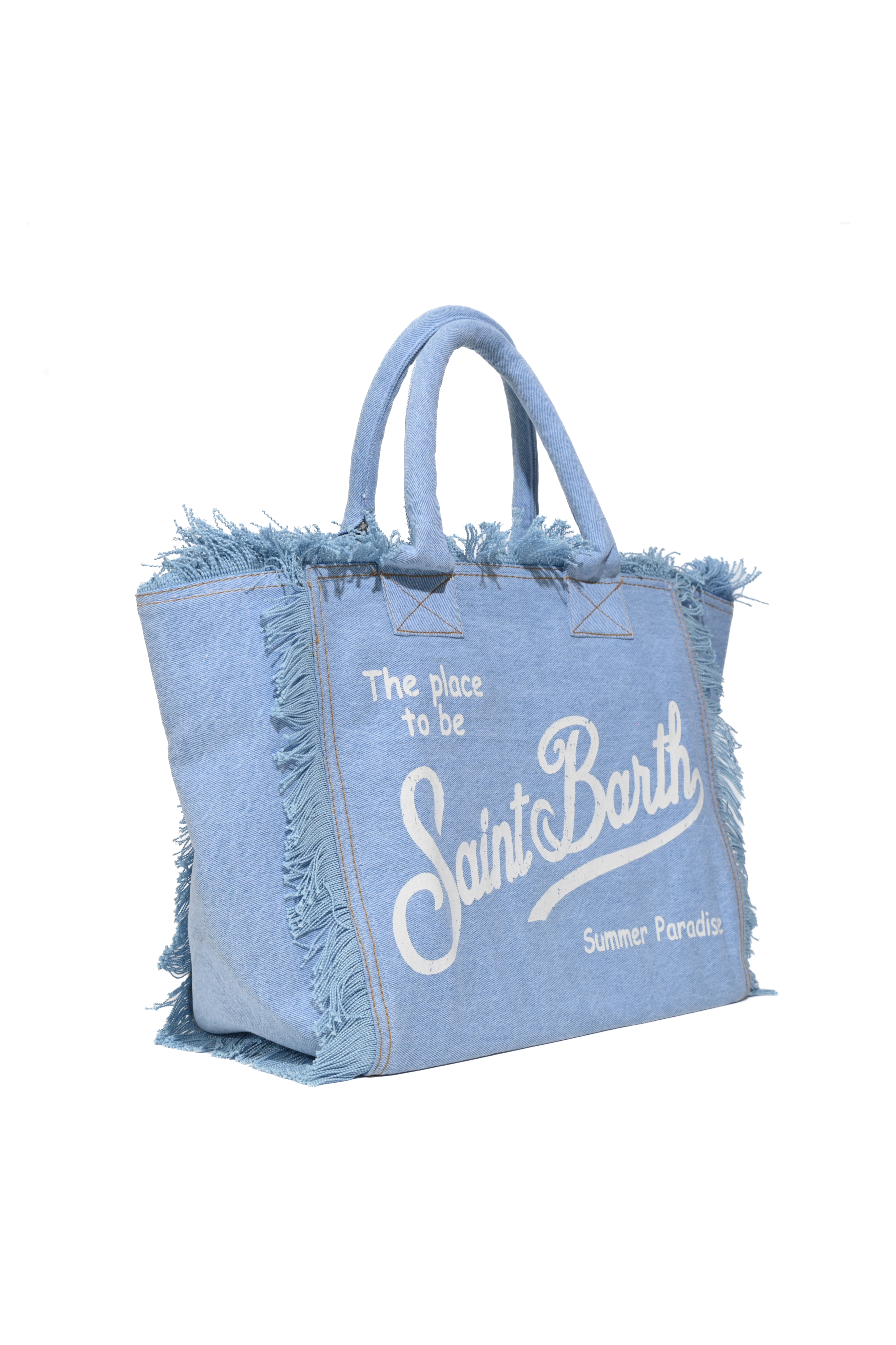 Borsa in denim di cotone lavaggio chiaro, MC2 Saint Barth, modello Vanity Regular