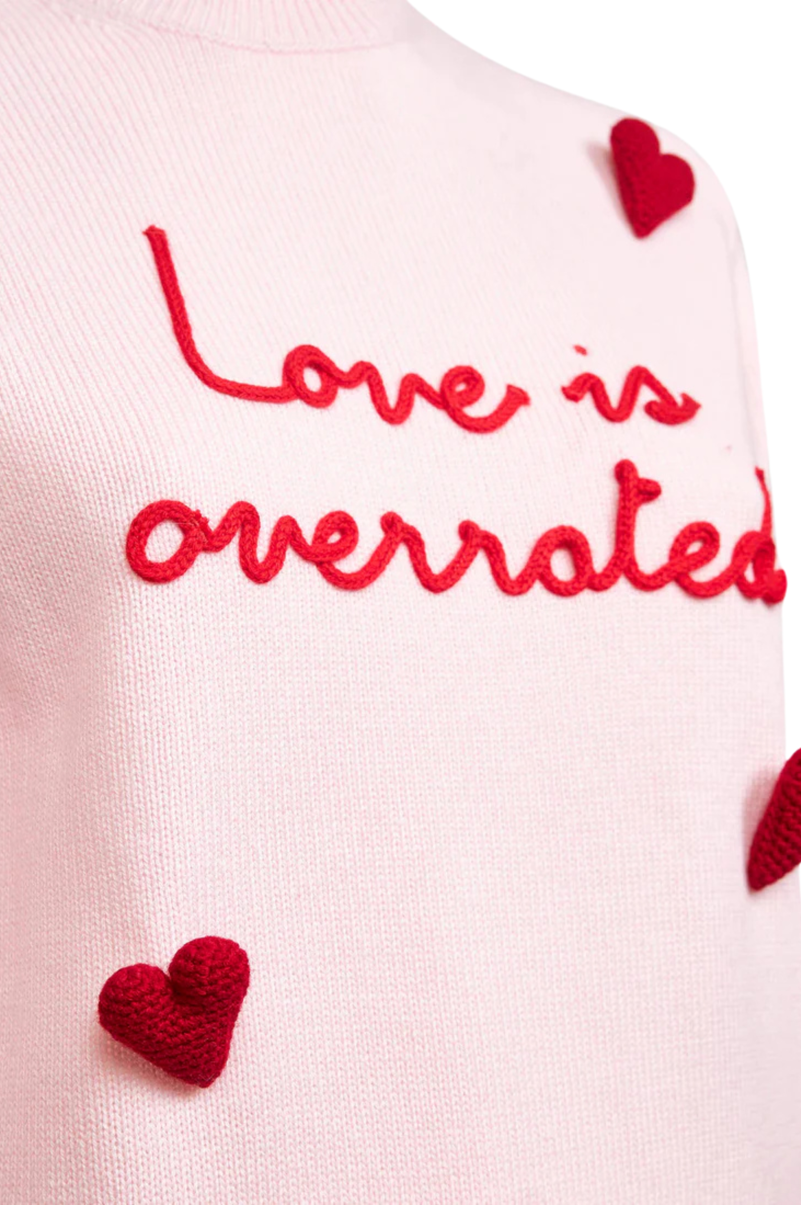 - Dettagli: scritta frontale Love is overrated, cuori applicati in rilievo, lavorazione a maglia rasata