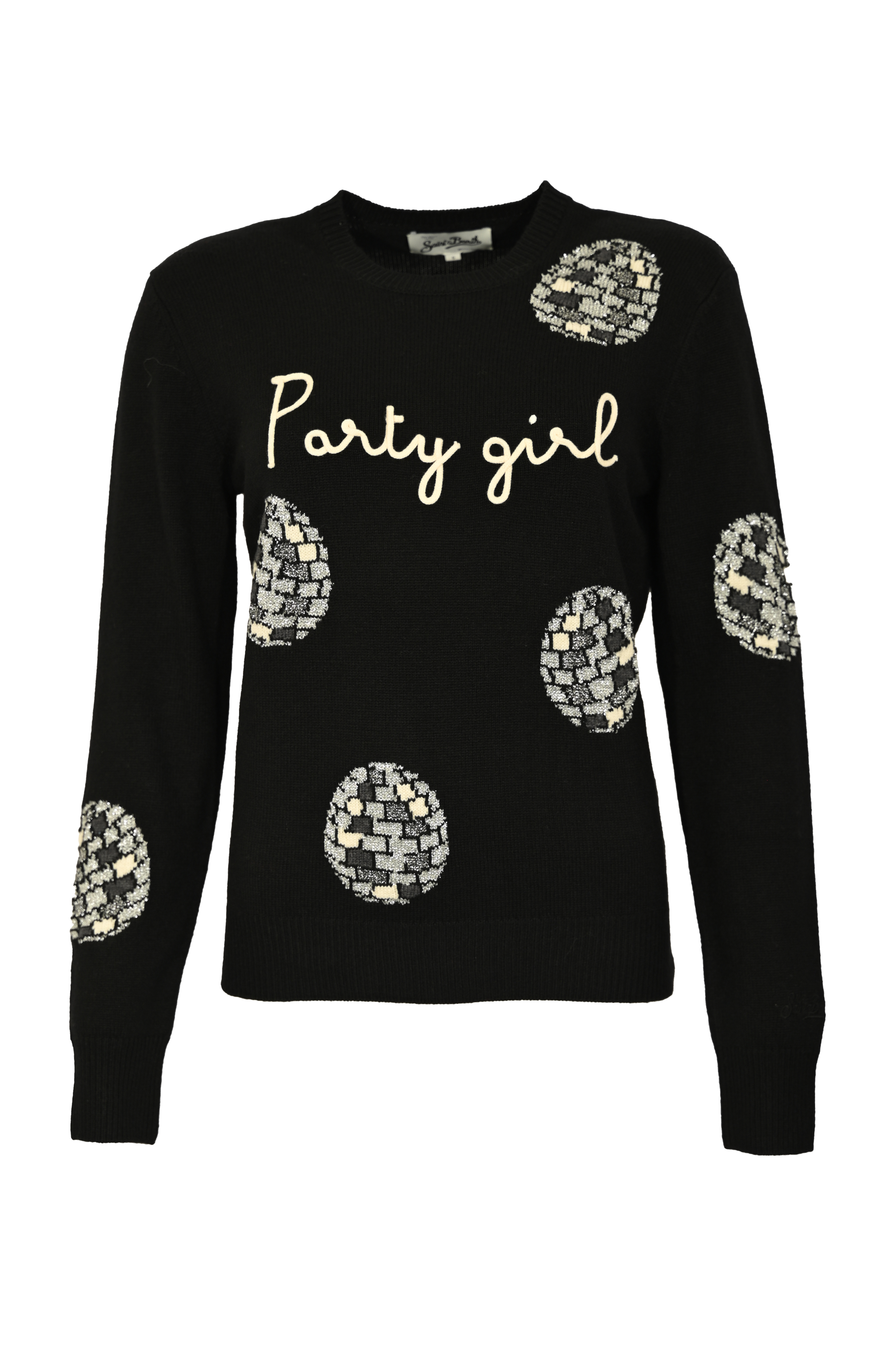 - Dettagli: scritta Party Girl ricamata sul davanti, ricami con paillettes a forma di disco ball, bordi a coste