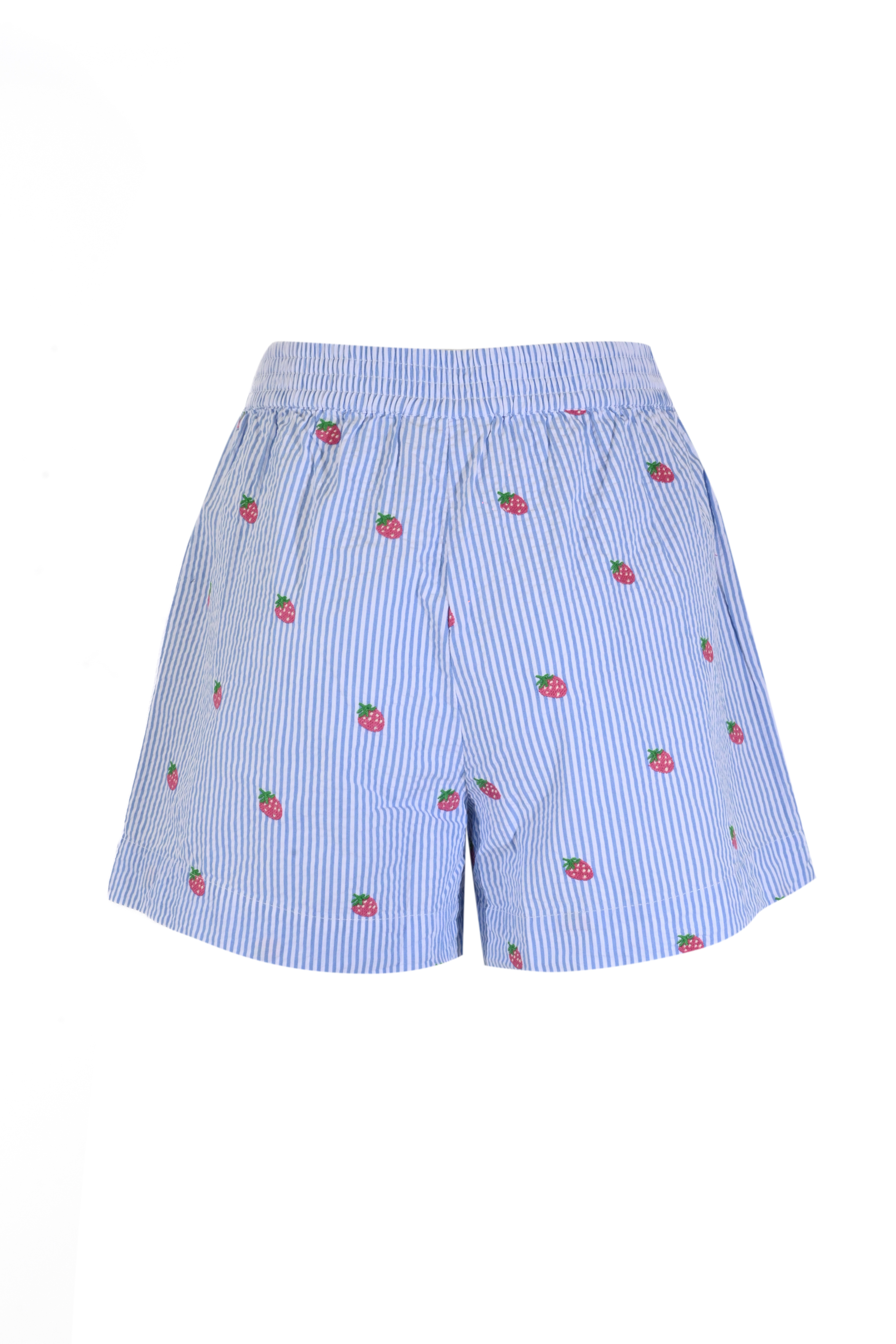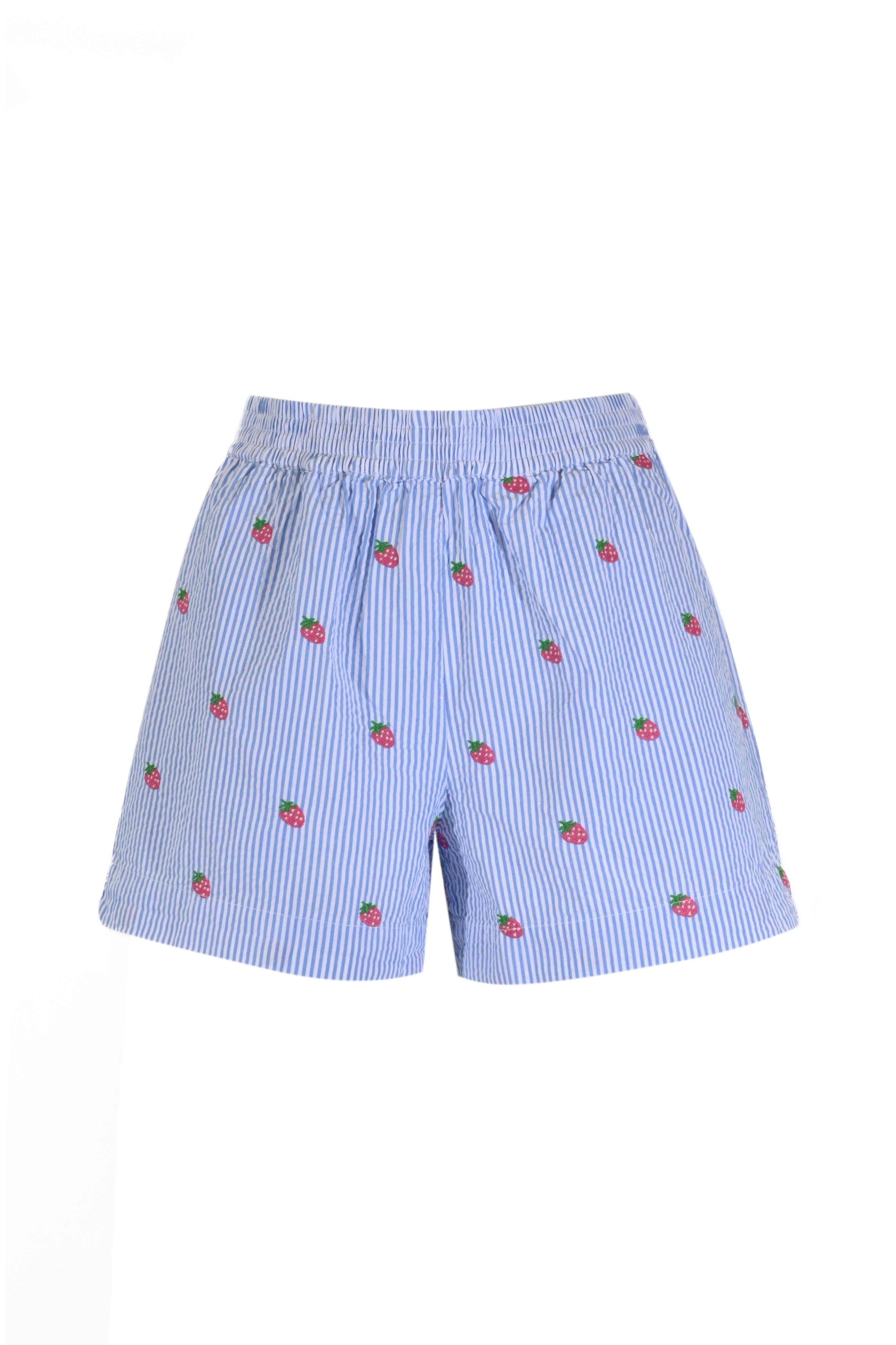 Shorts Meave in seersucker di cotone con ricamo fragola