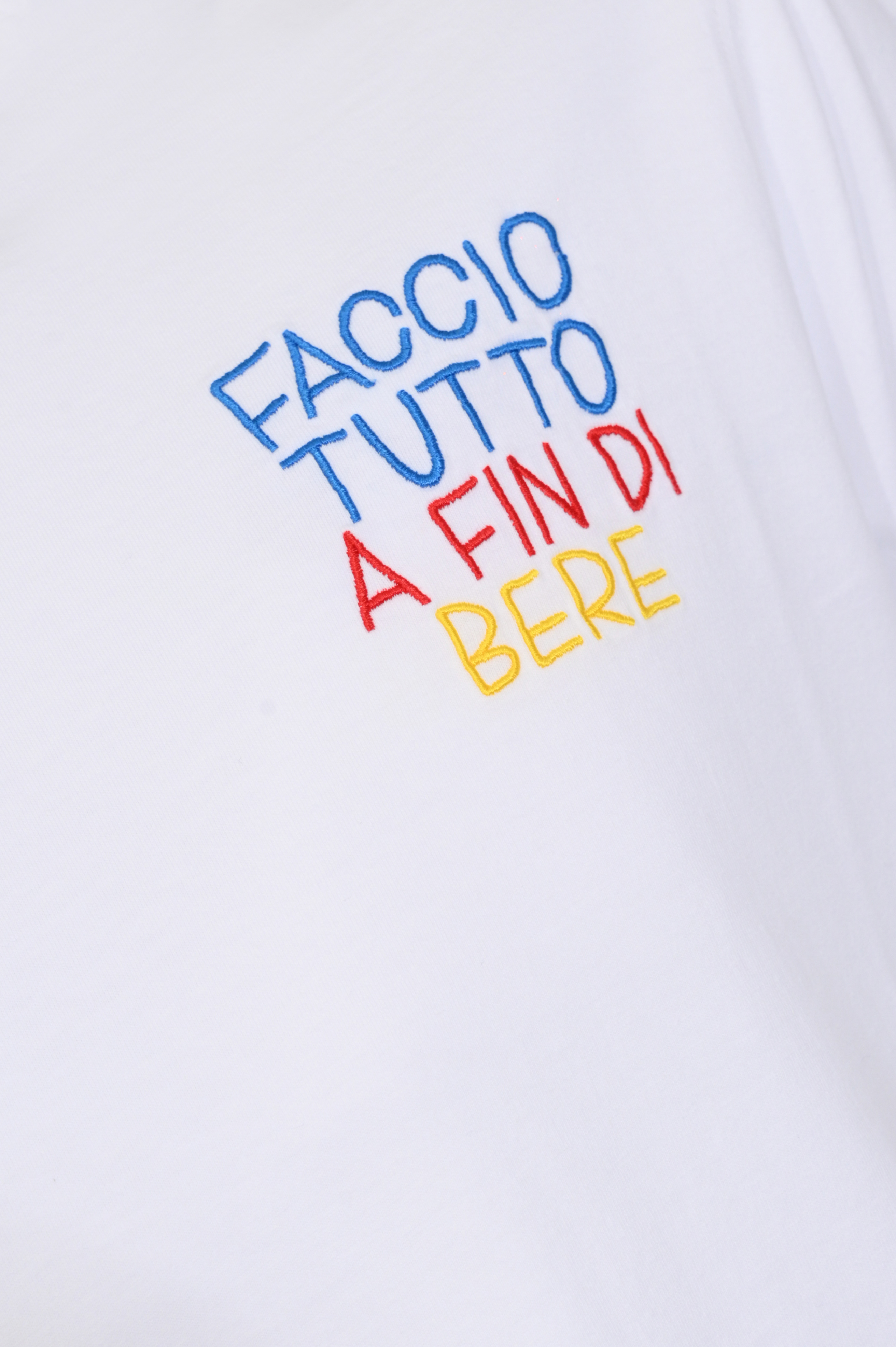 - Fantasia: ricamo frontale con scritta Faccio tutto a fin di bere