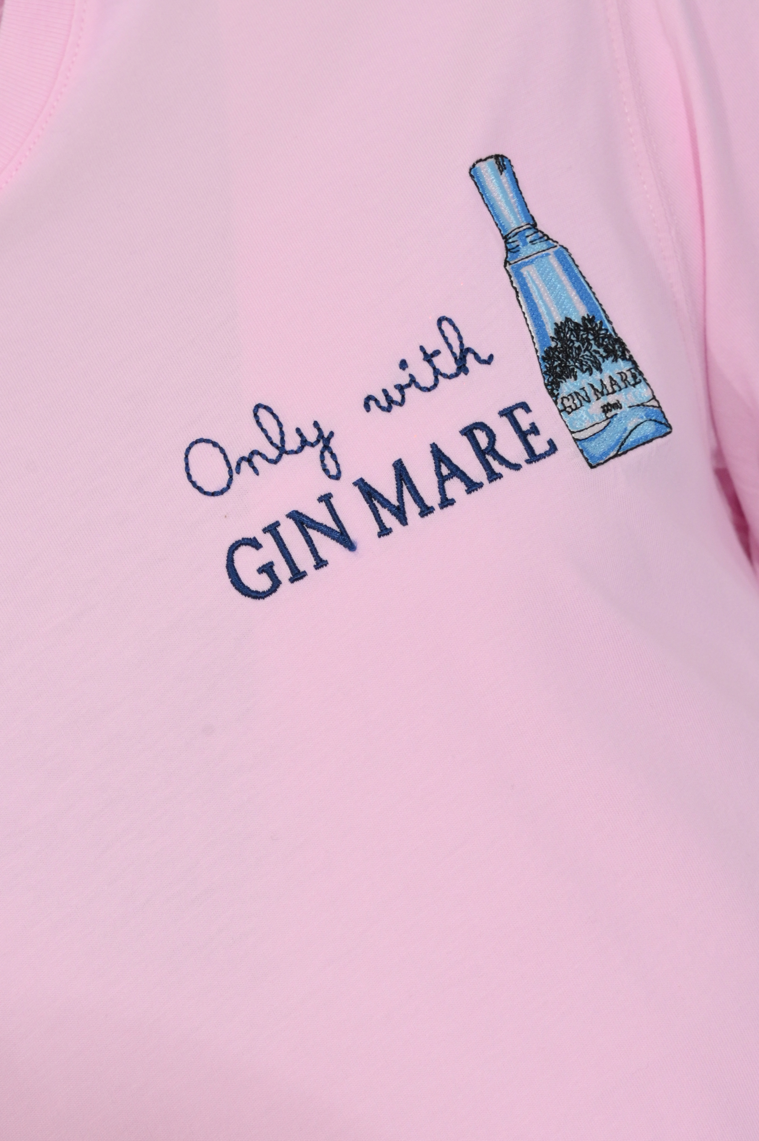 - Fantasia: ricamo frontale con scritta e grafica bottiglia Gin Mare