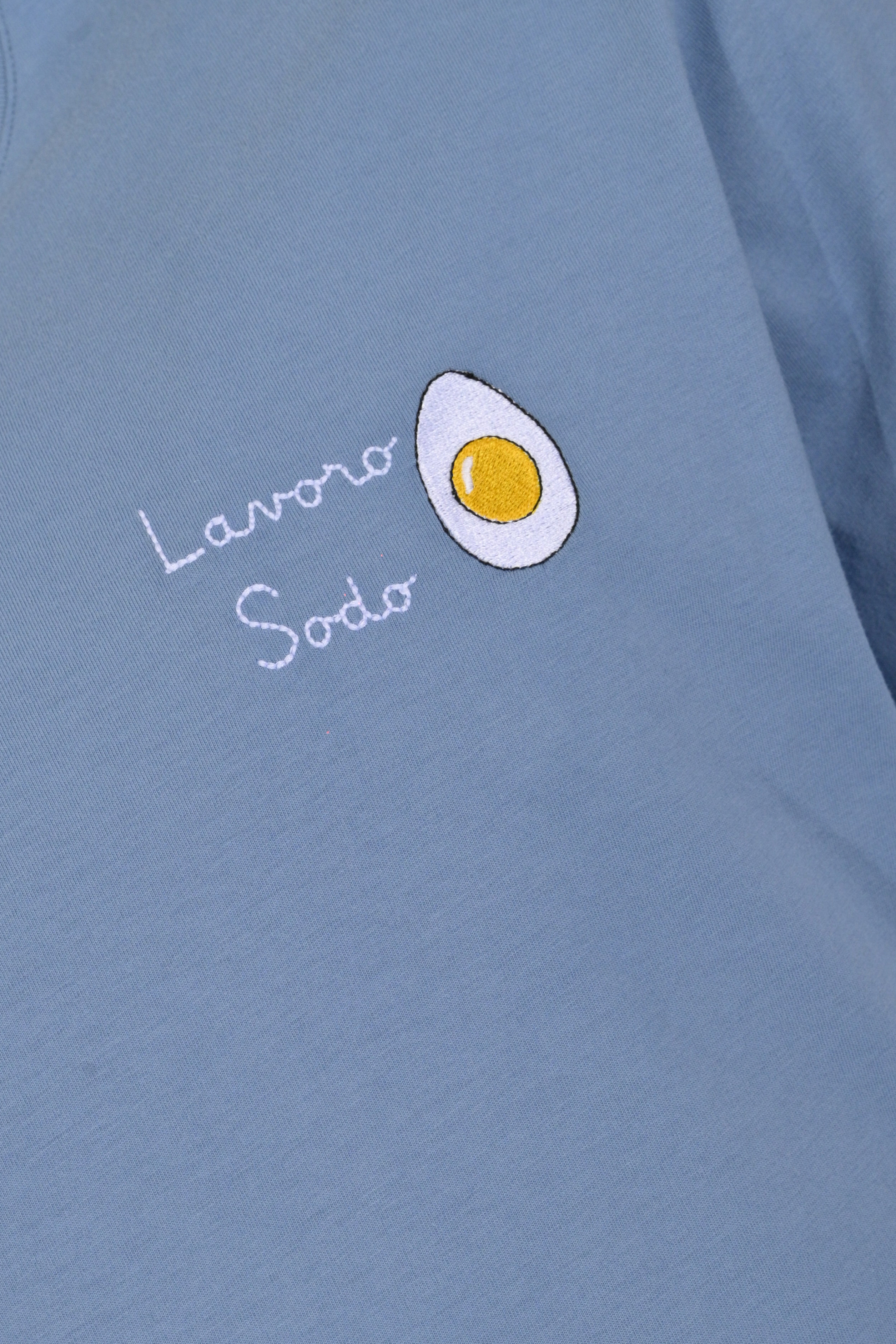 - Dettagli: ricamo sul petto con scritta Lavoro Sodo e motivo uovo, logo su manica, tessuto leggero e confortevole