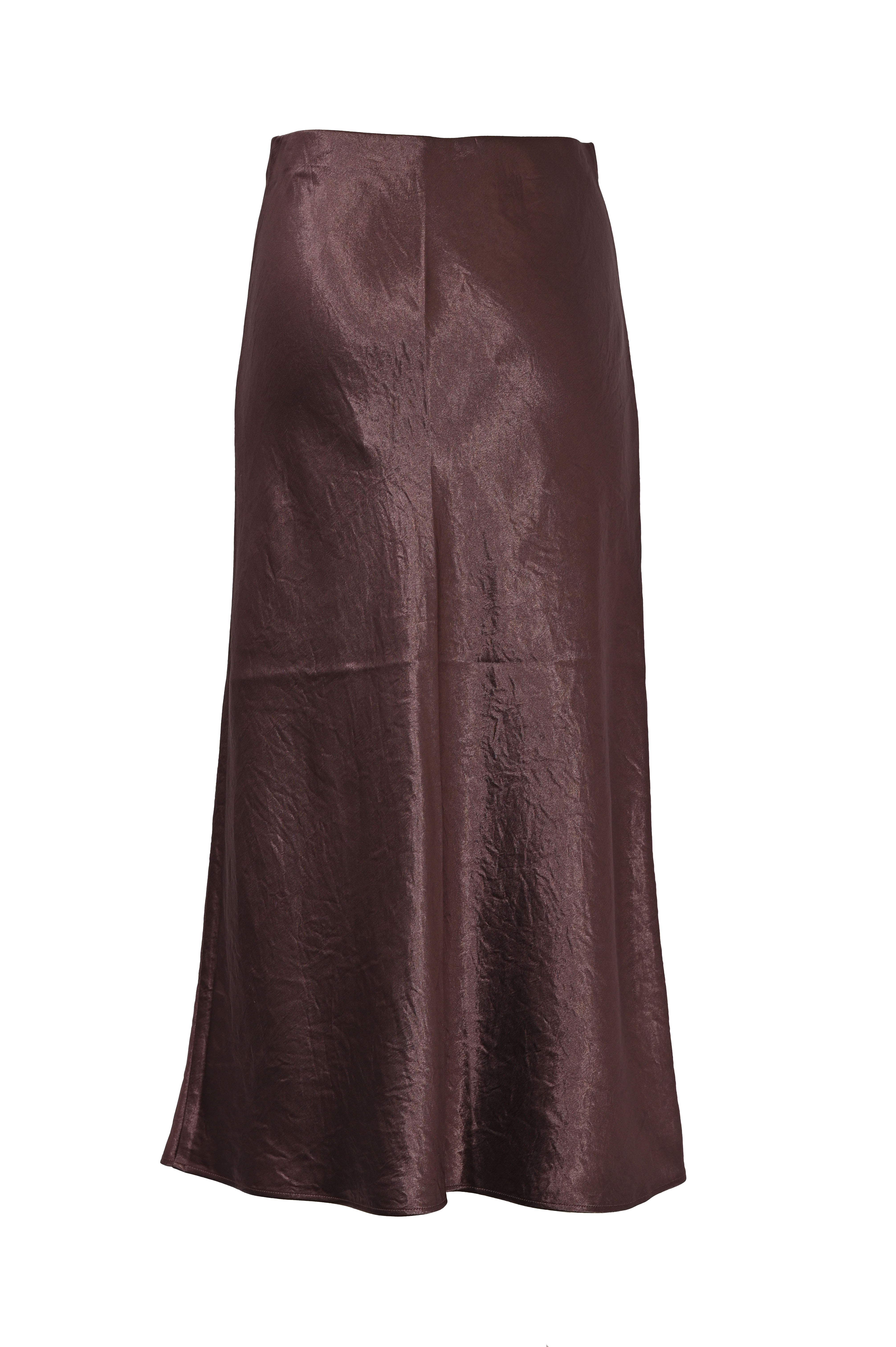 - Dettagli: linea svasata, effetto lucido, taglio minimal, leggero spacco laterale