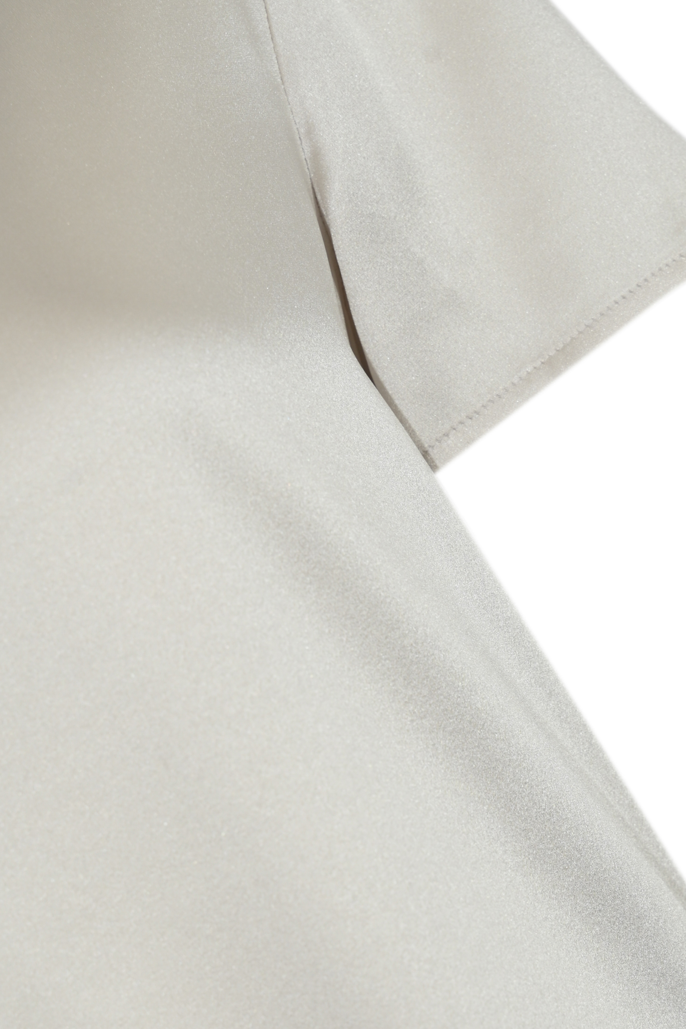 - Dettagli: raso lucido con taglio leggermente stondato al fondo e cuciture tono su tono, effetto fluido