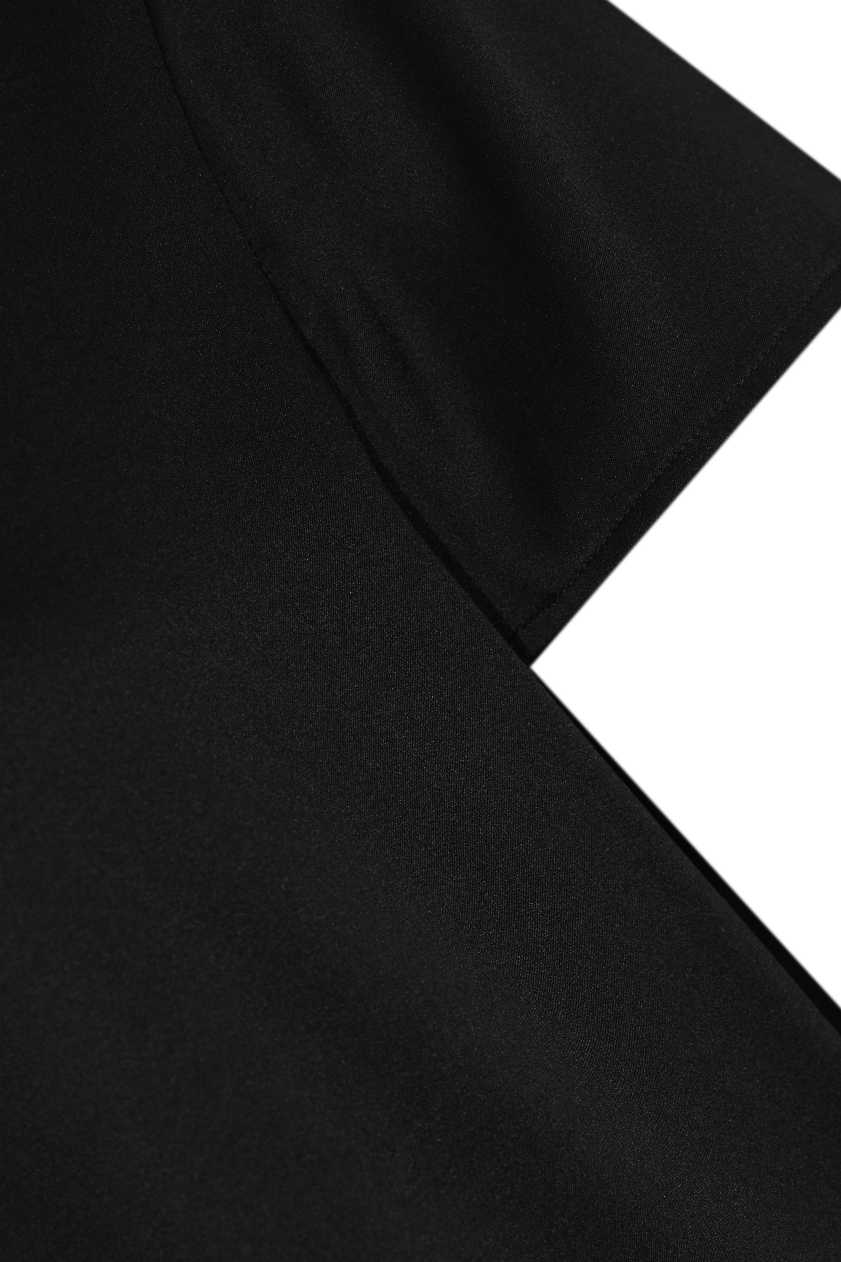 - Dettagli: raso lucido con taglio leggermente stondato al fondo e cuciture tono su tono, effetto fluido