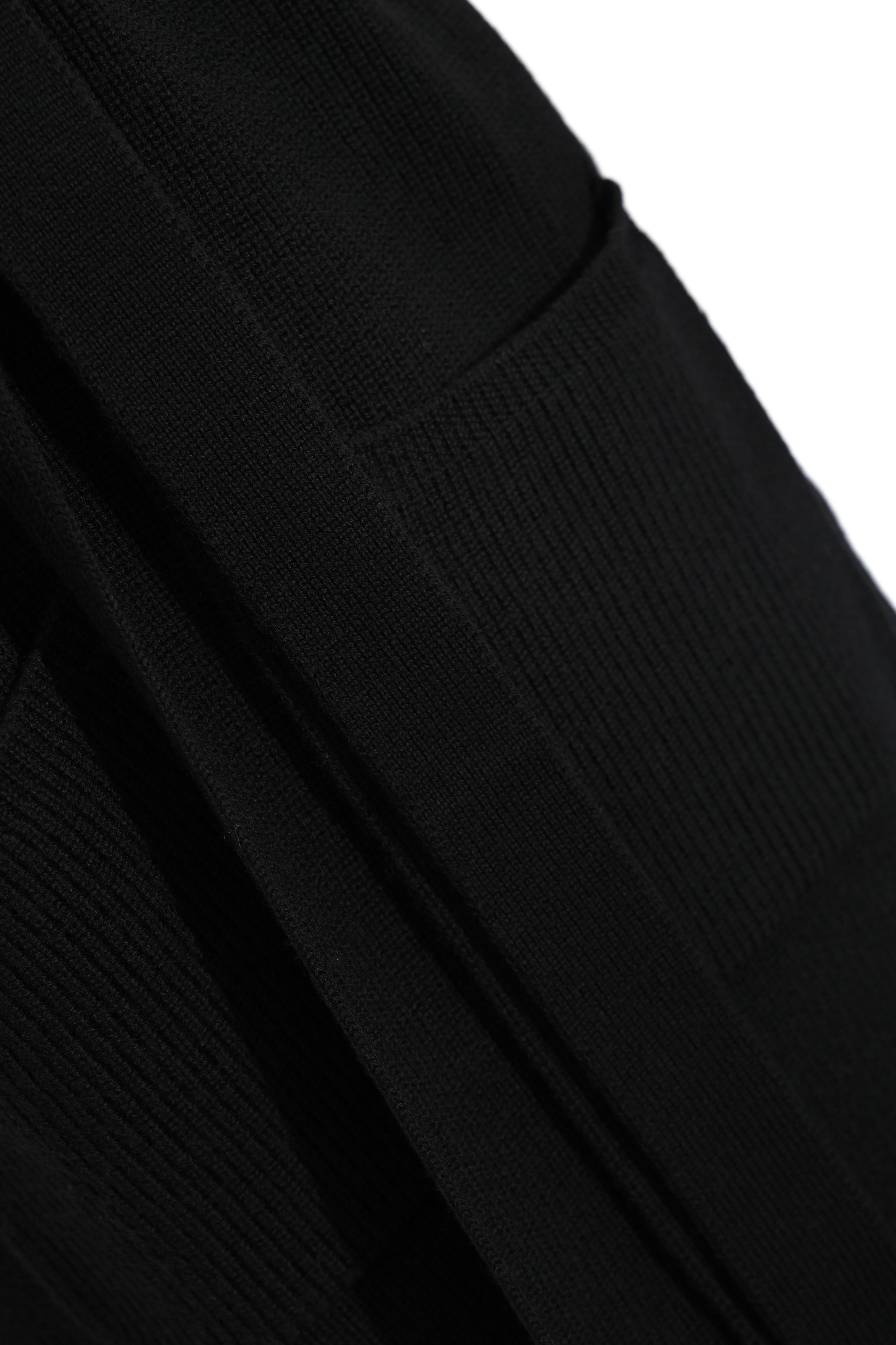 - Dettagli: lavorazione a coste, taglio dritto, lunghezza sotto il ginocchio, cintura rimovibile coordinata, bordo rifinito a maglia larga