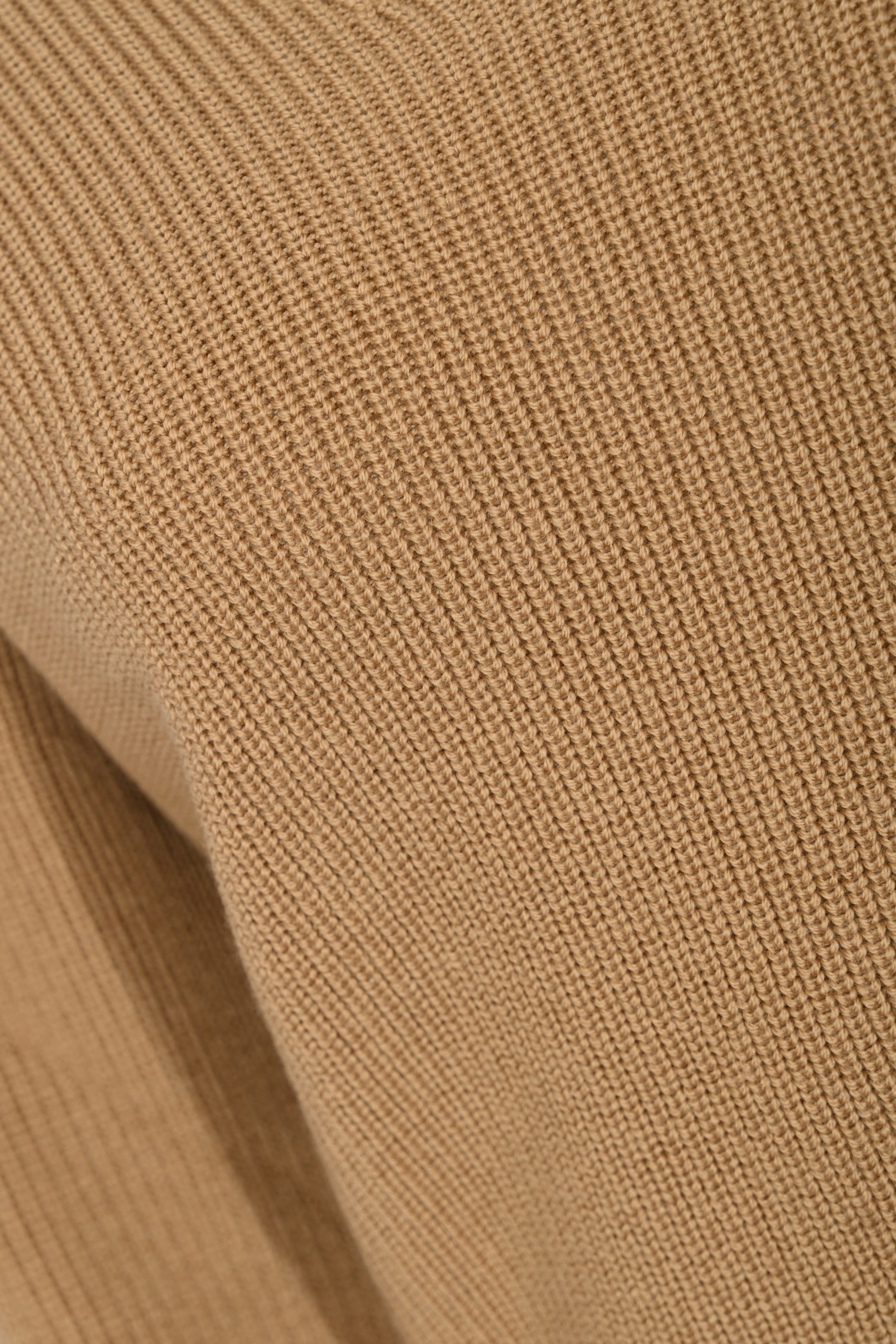 - Dettagli: lavorazione a maglia grossa, linea morbida, spalle leggermente scese, bordo a costine su polsi e fondo