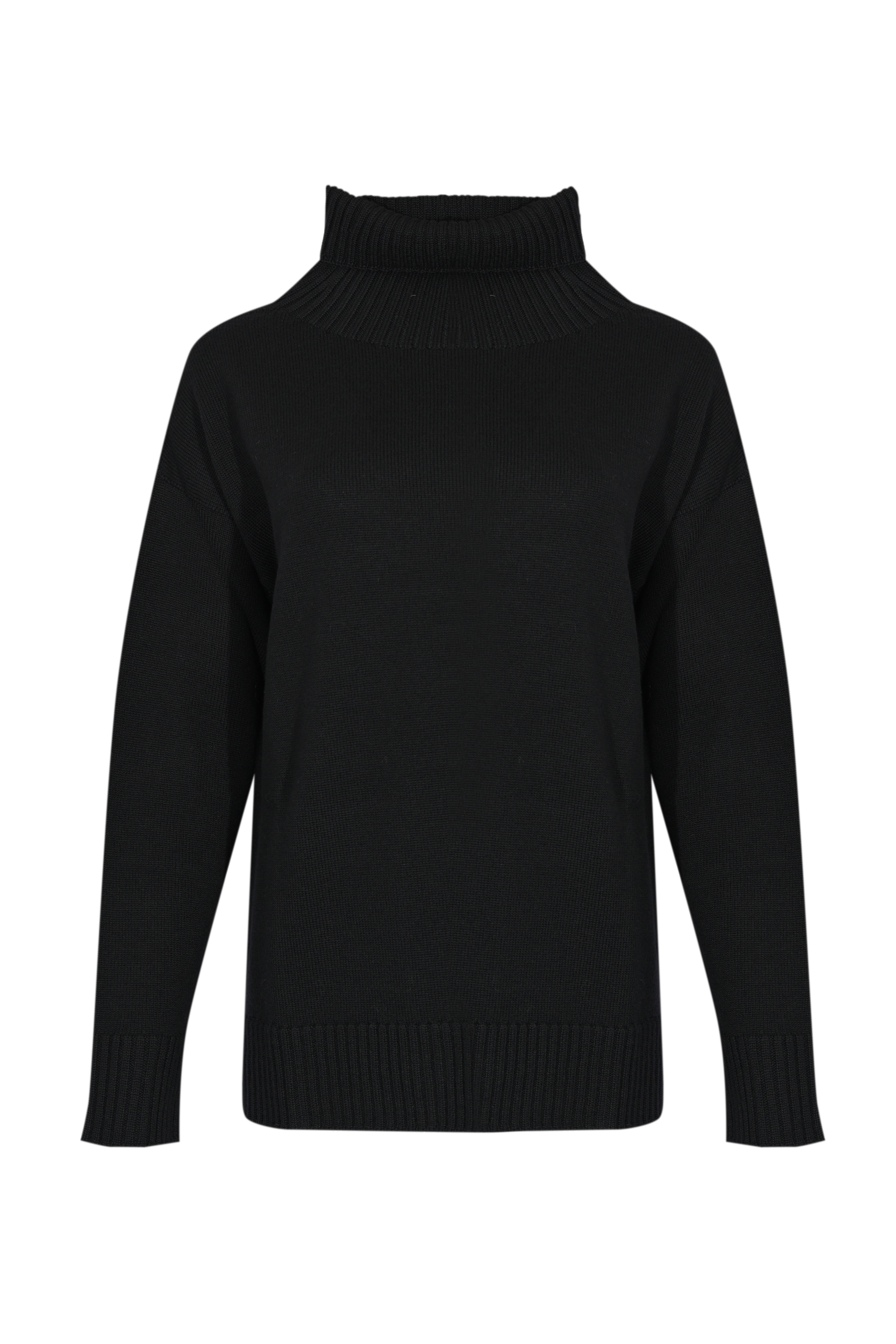 - Dettagli: lavorazione a maglia liscia con bordi a coste su collo, polsini e fondo; linea pulita ed essenziale, con taglio morbido