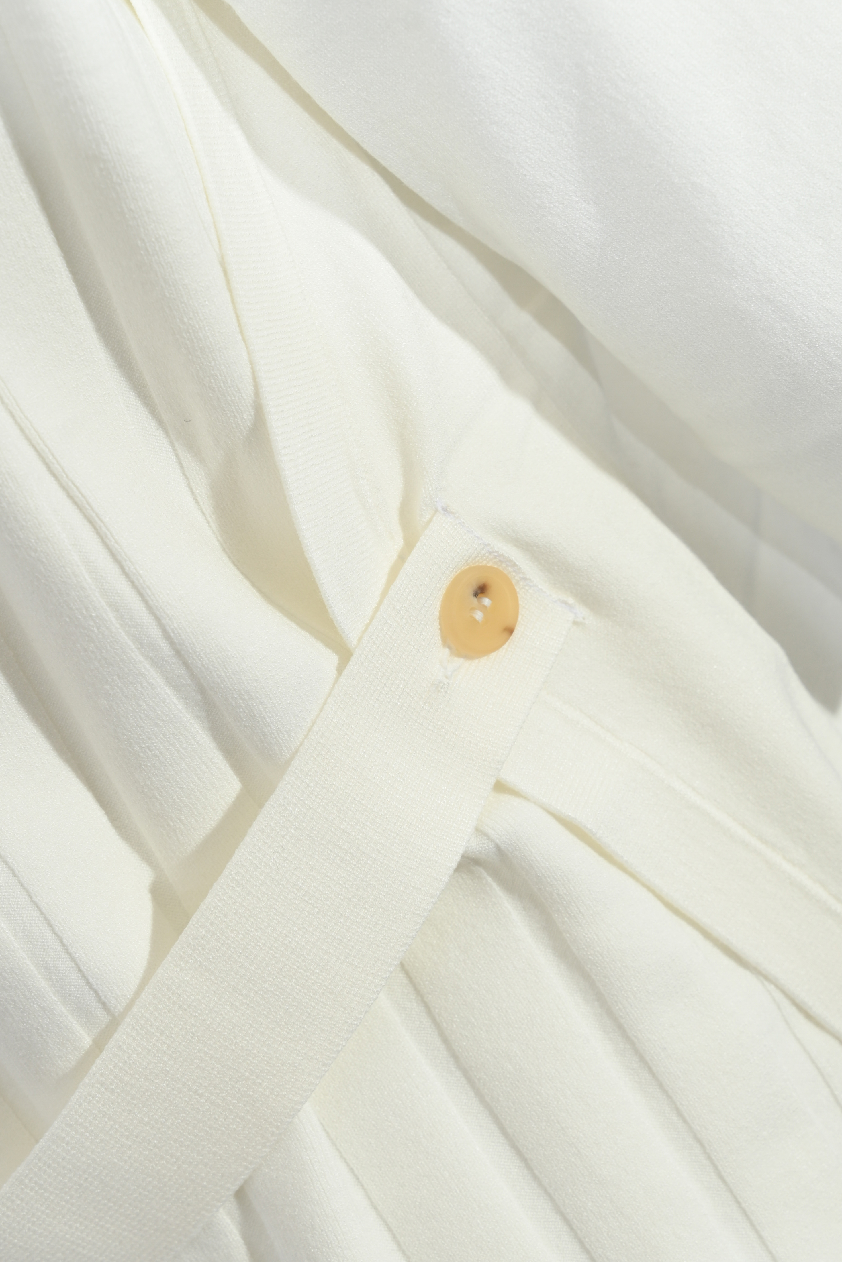 - Dettagli: parte posteriore con lavorazione a coste verticali e fascia regolabile con bottone tono su tono; struttura liscia sul davanti; finiture pulite