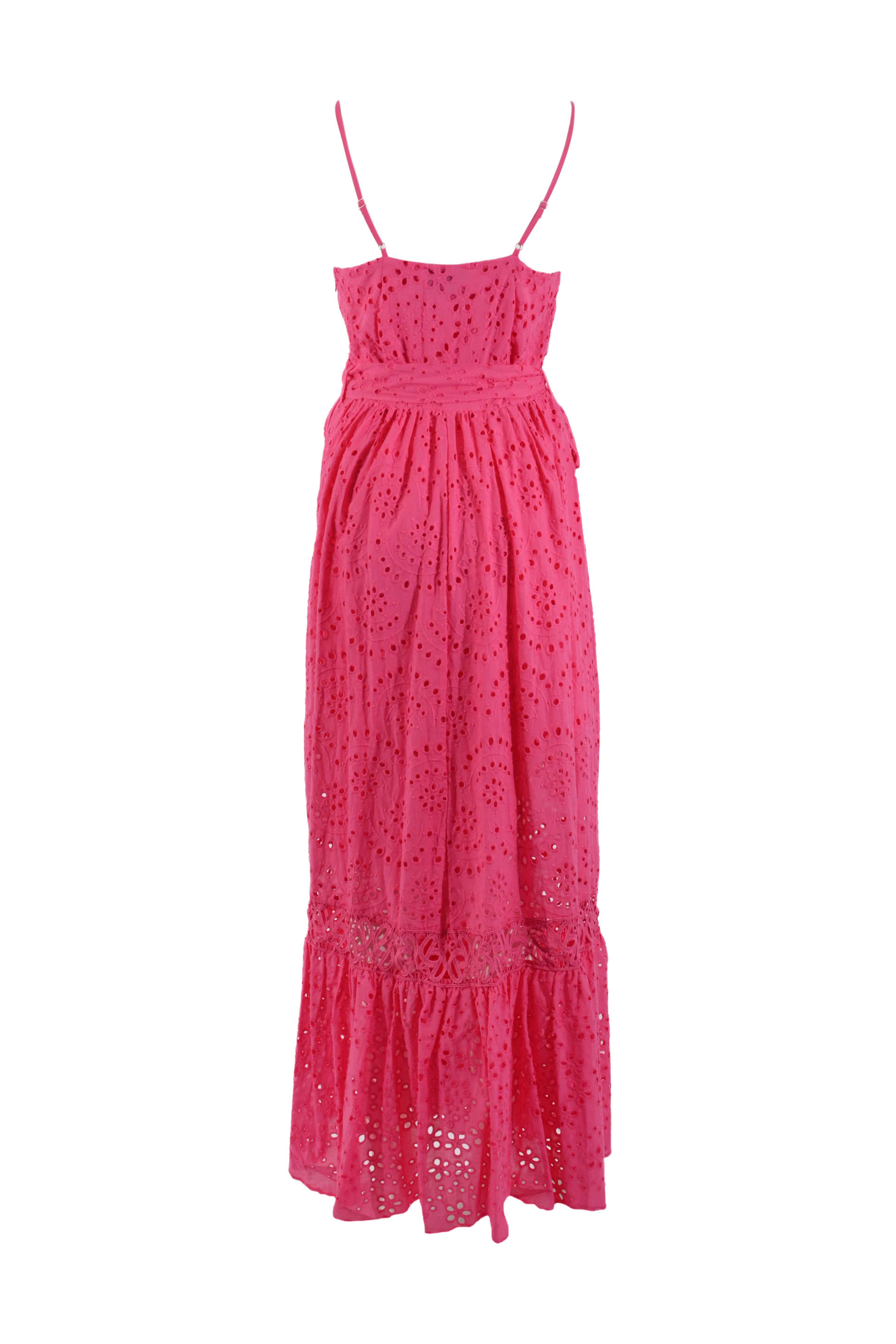- Dettagli: cintura in vita con fiocco, vita elasticizzata, gonna a balze, inserto in pizzo sul fondo