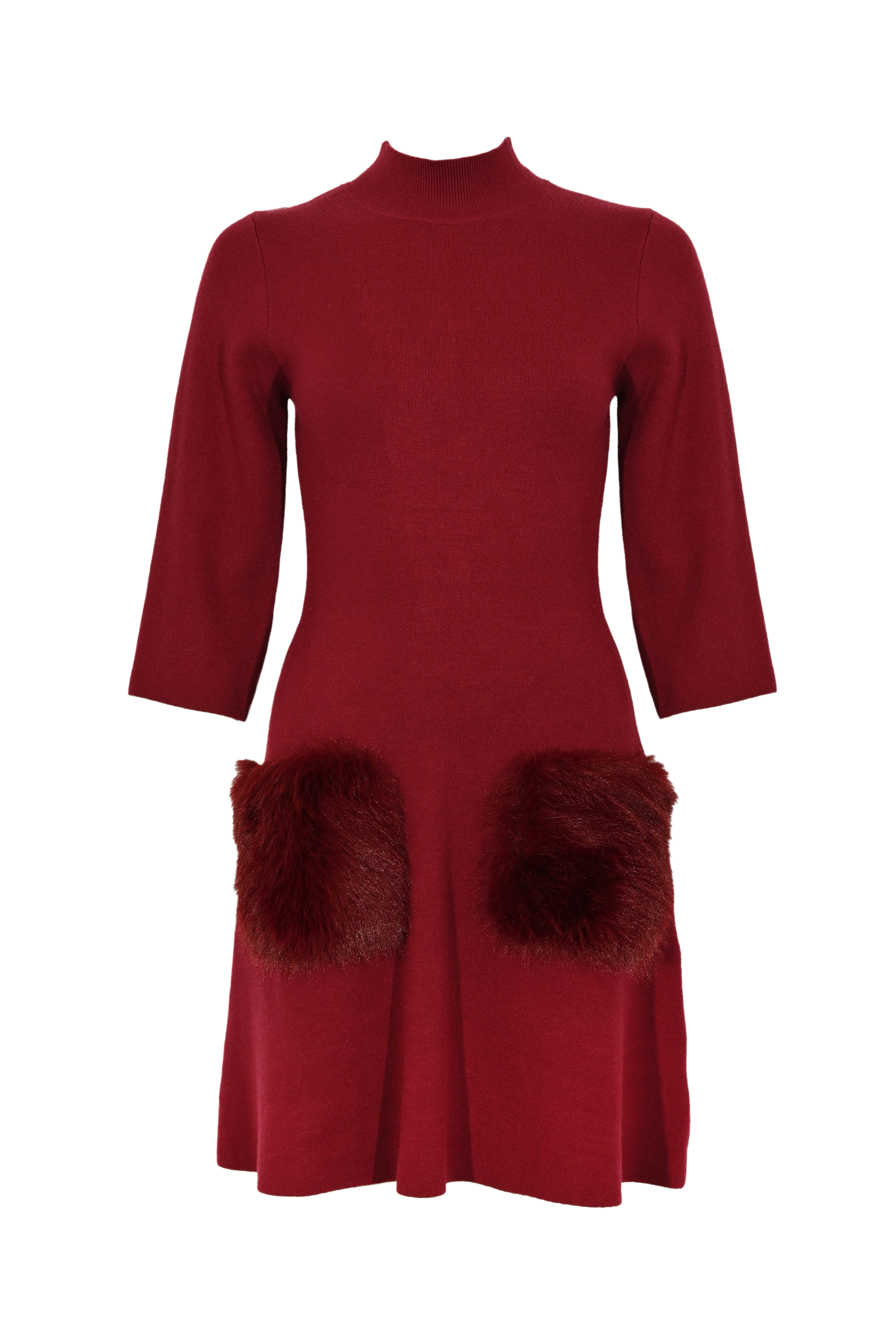 Abito in maglia con tasche in finta pelliccia Ciliegia