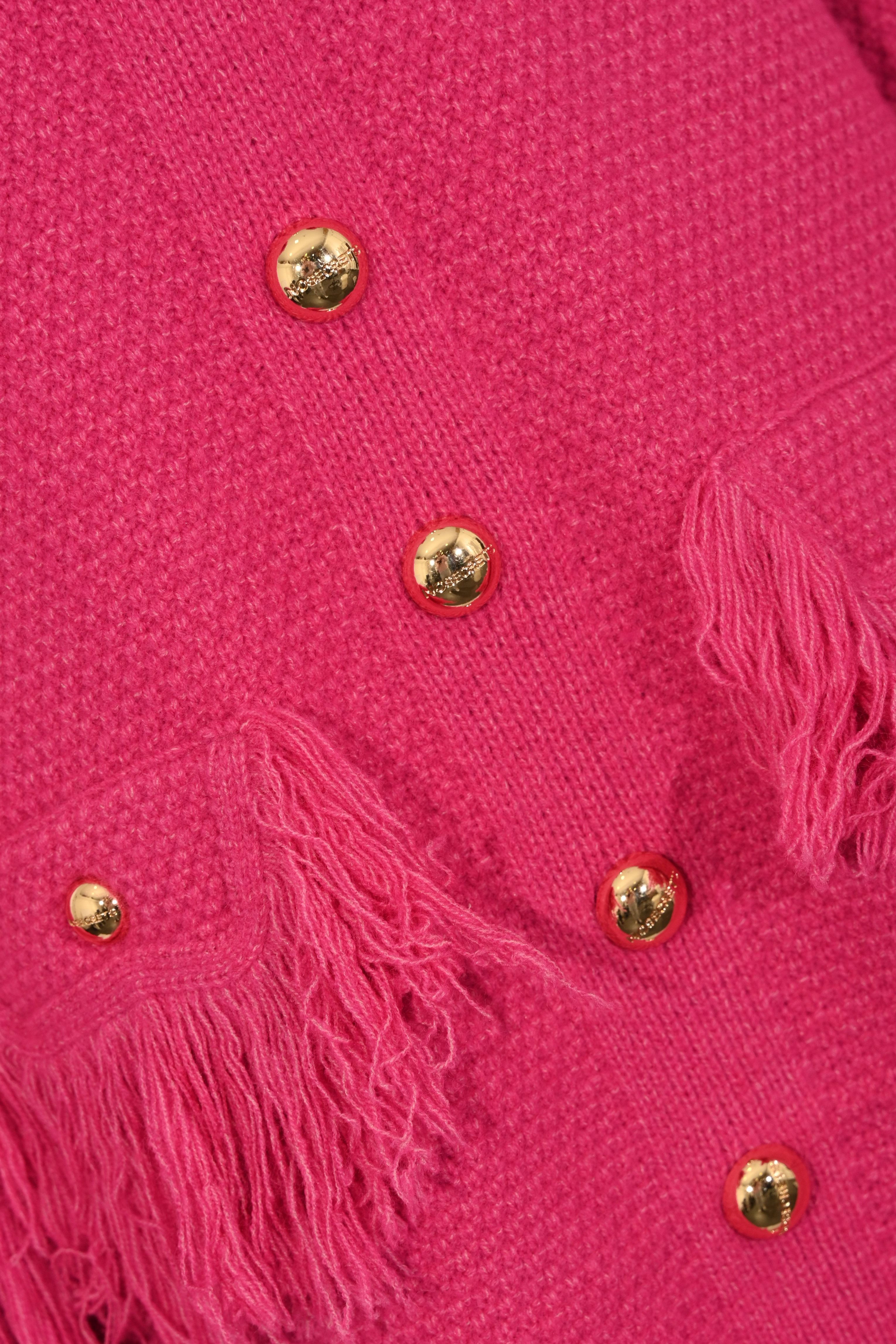 - Dettagli: frange decorative su maniche, tasche e fondo, bottoni dorati logati