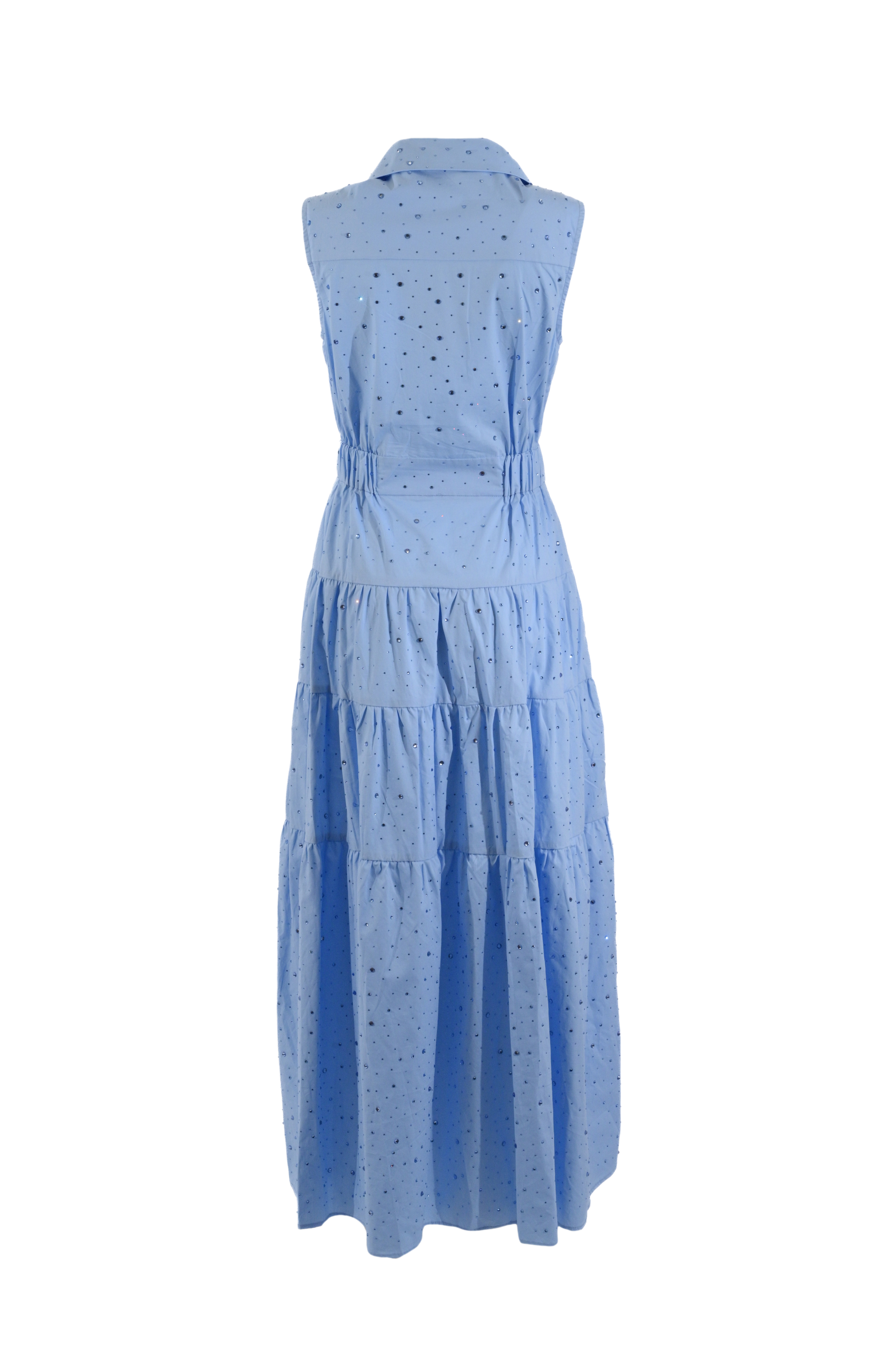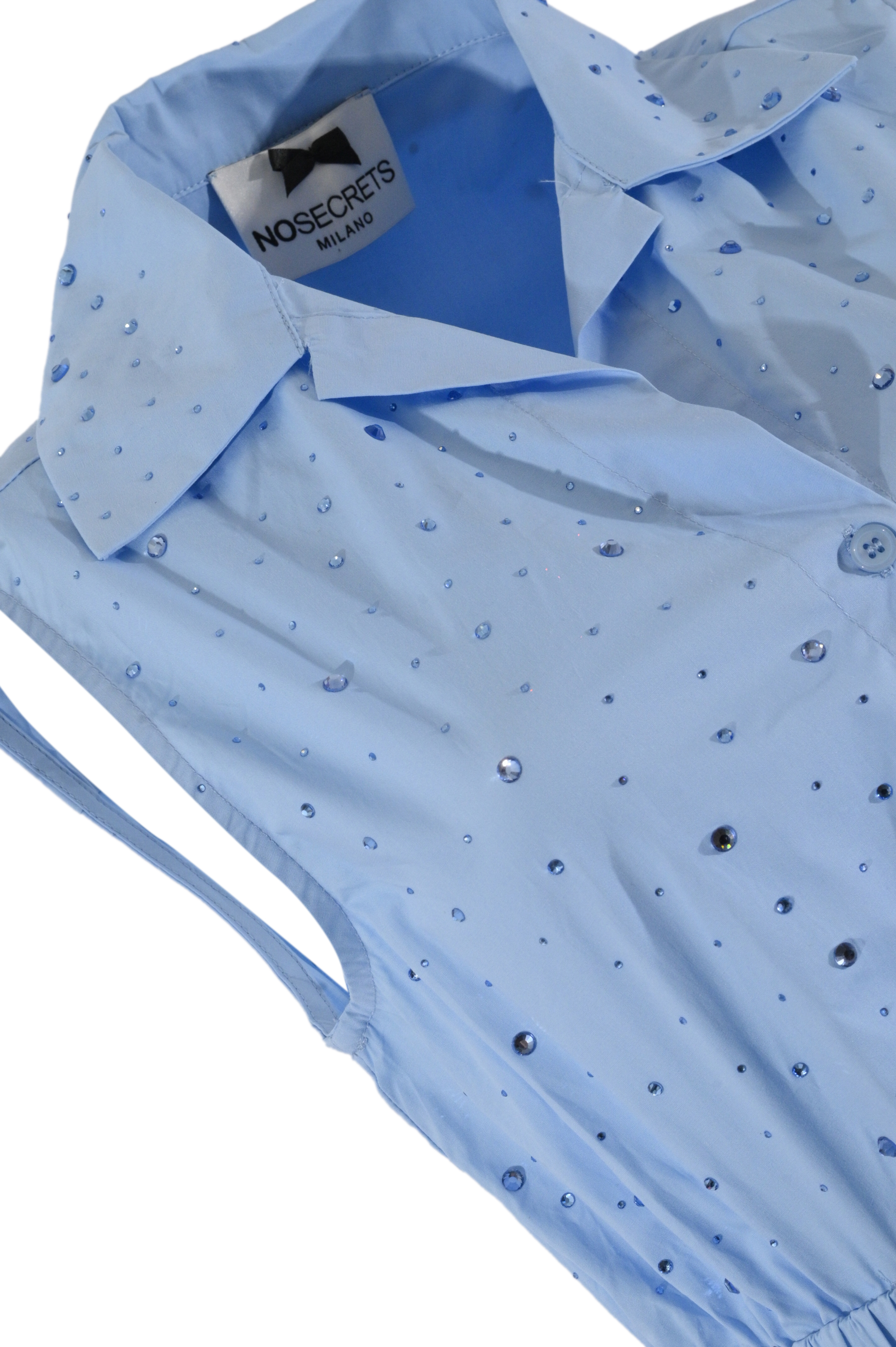 - Dettagli: cintura in vita con laccio, vita elasticizzata, gonna a balze, applicazioni brillanti su tutta la superficie
