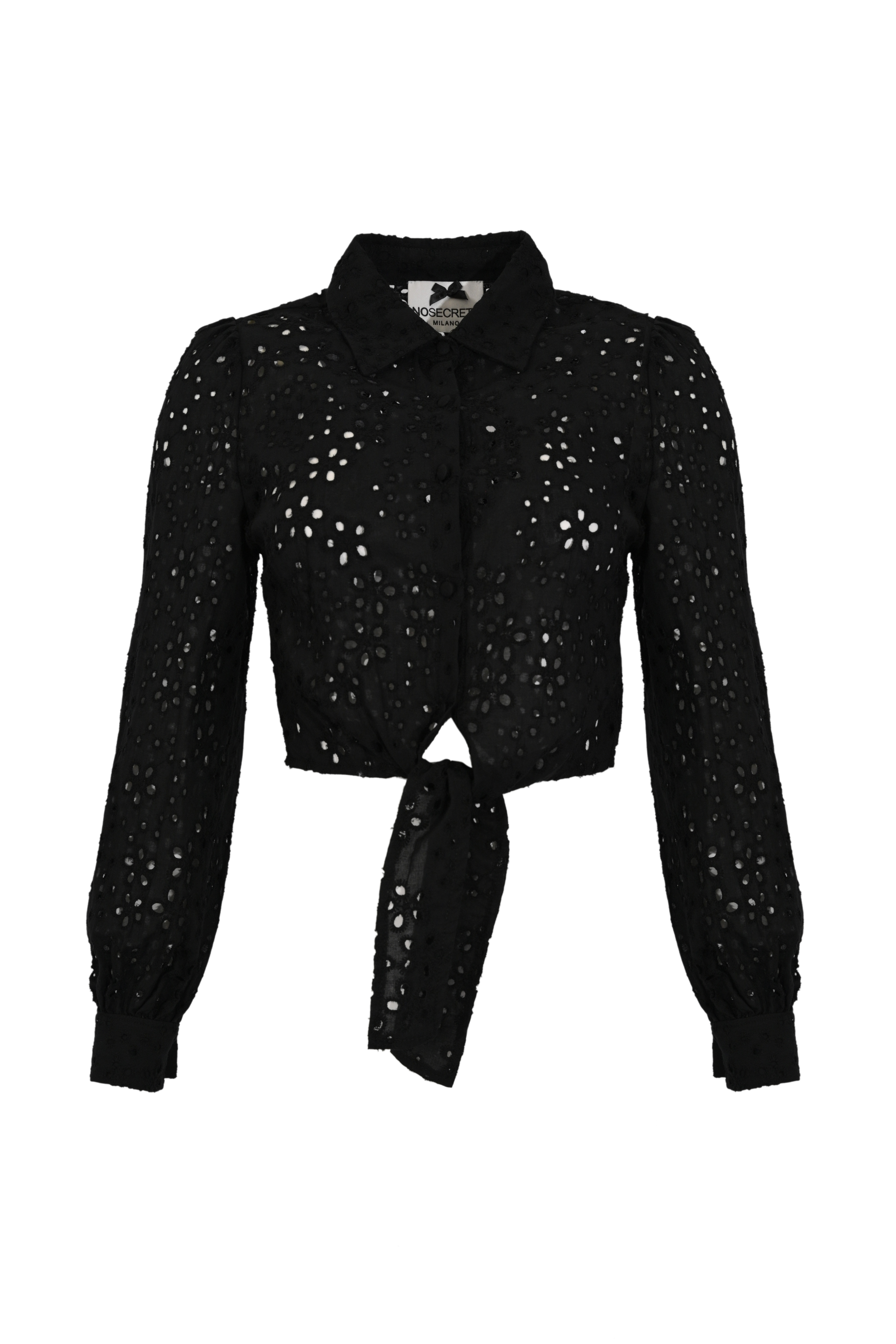 Camicia crop in Sangallo con nodo Caviale