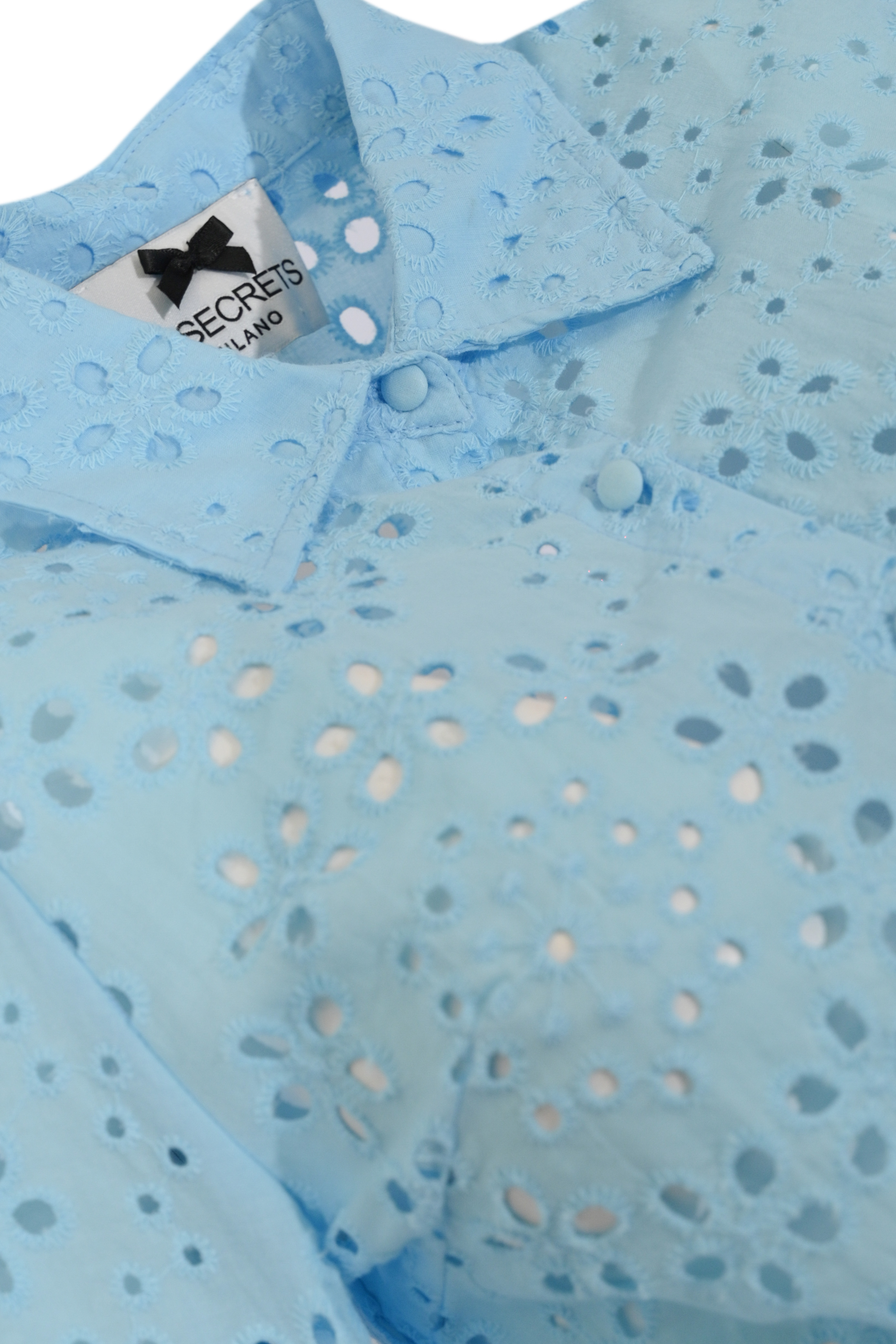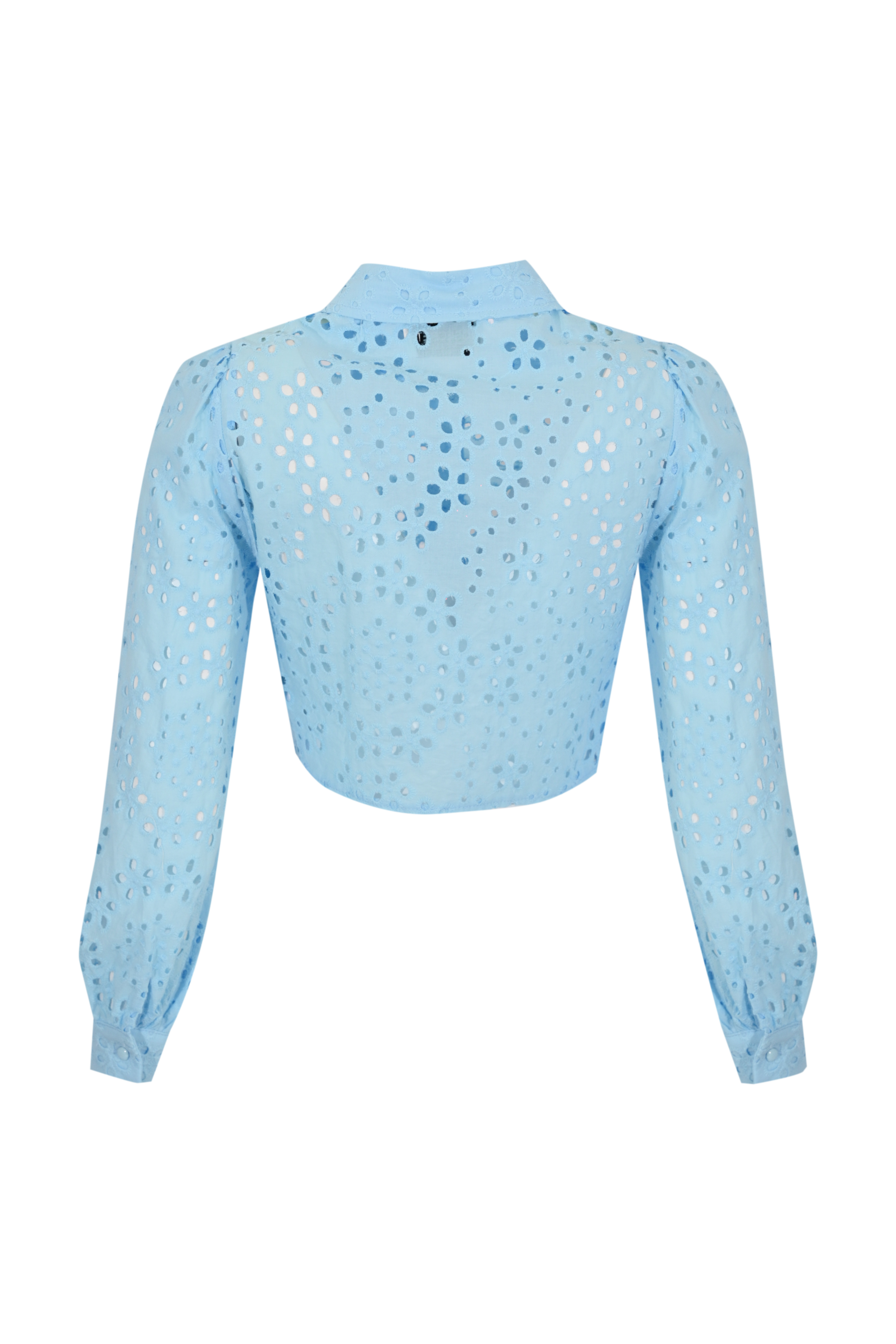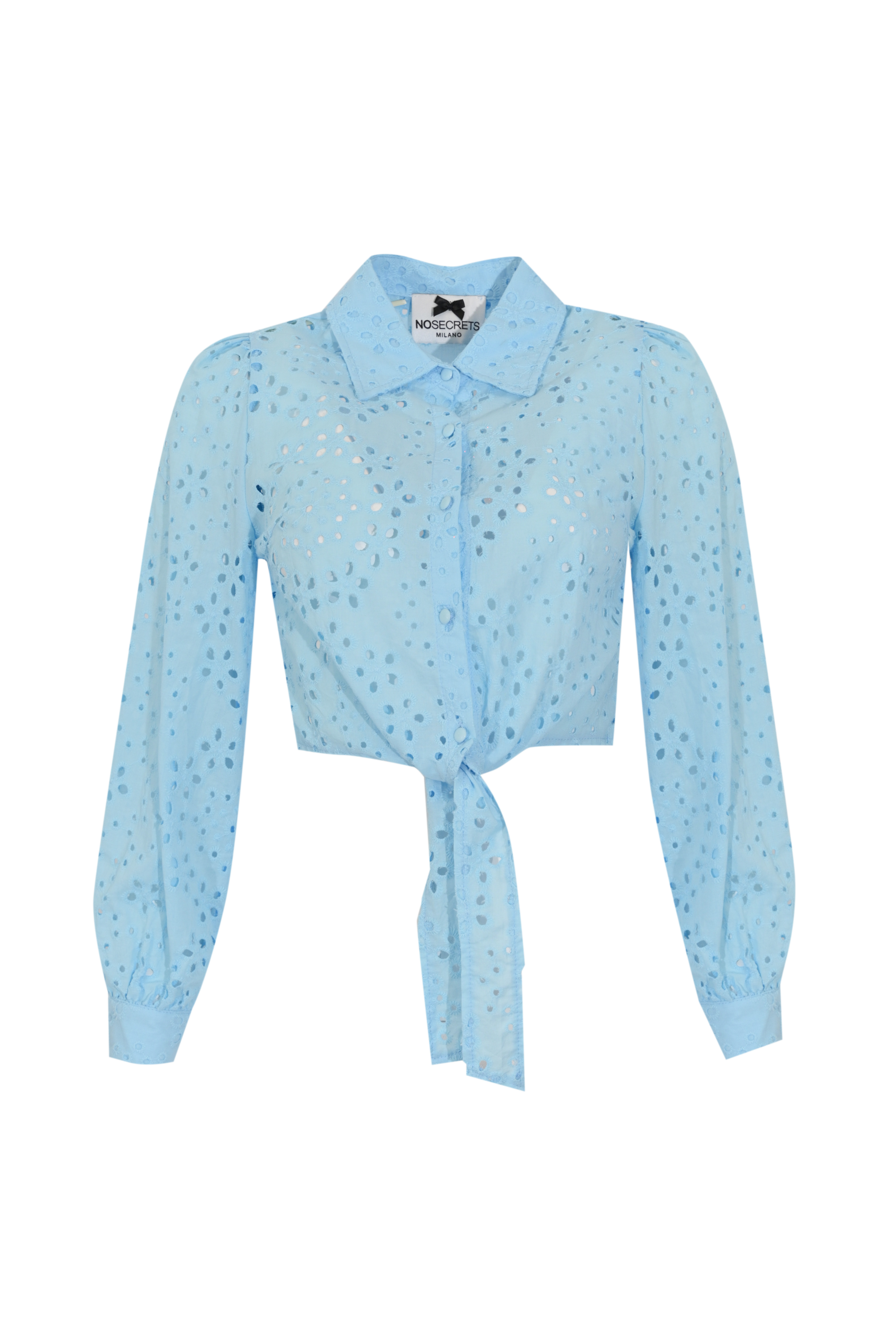 Camicia crop in Sangallo con nodo Celeste