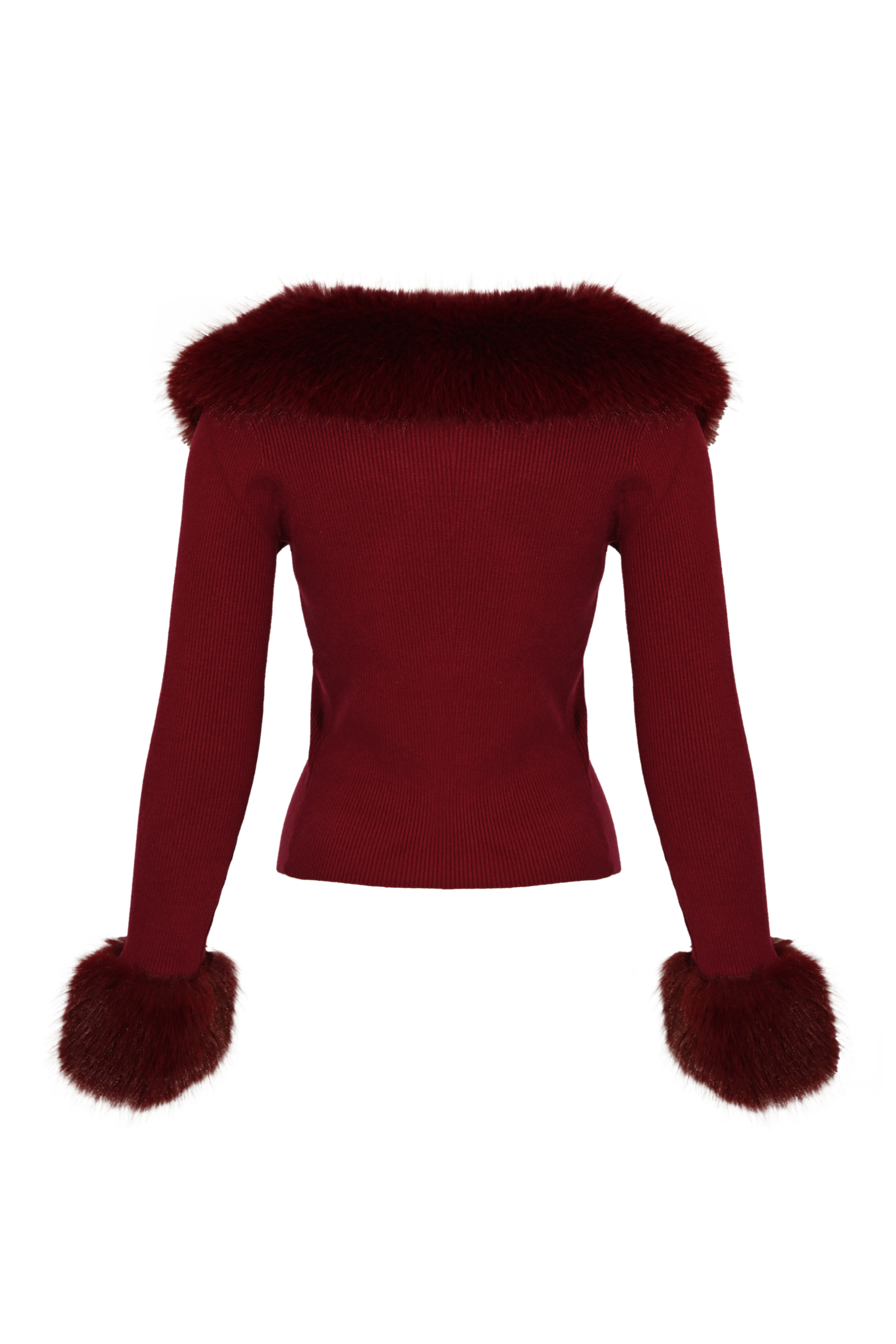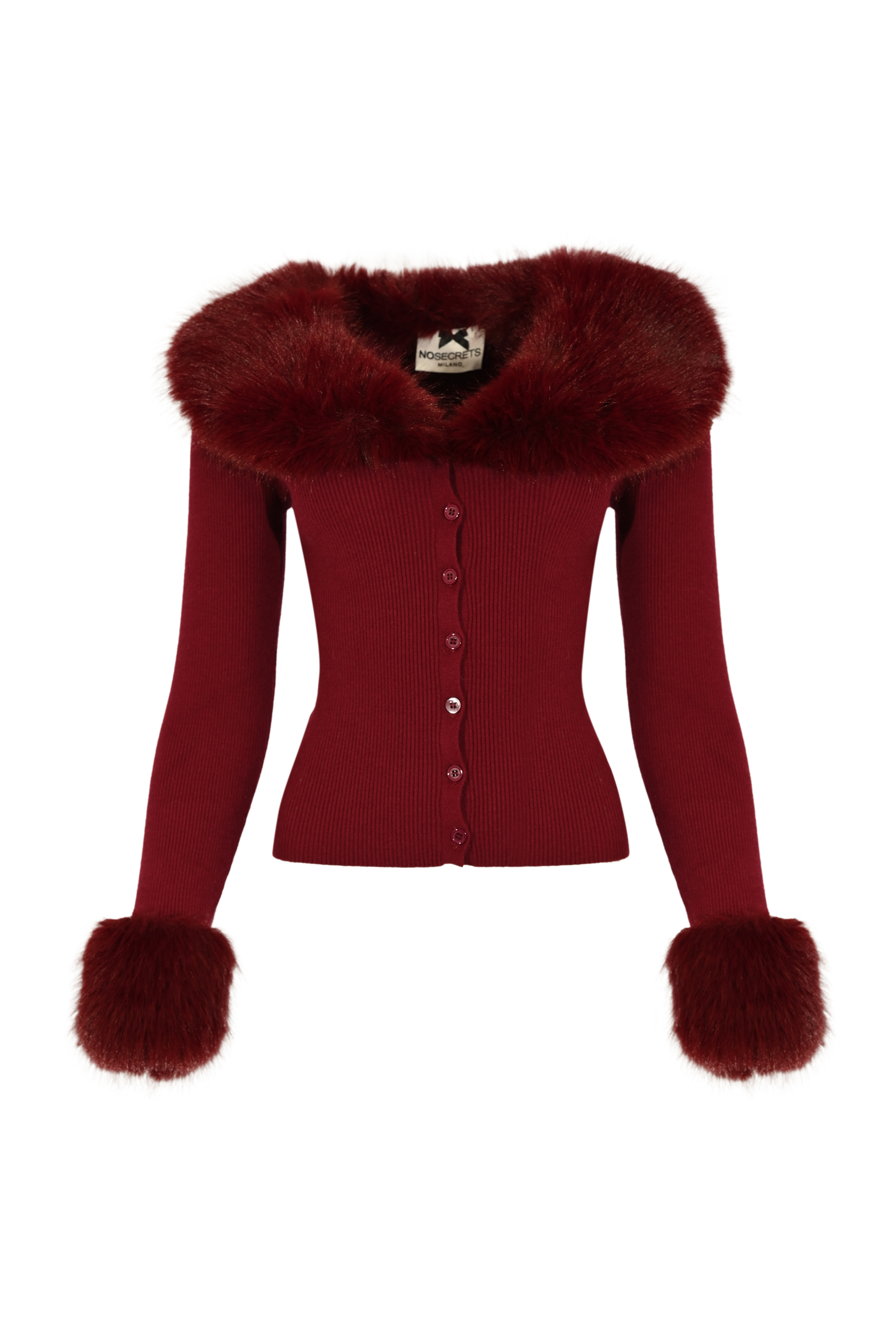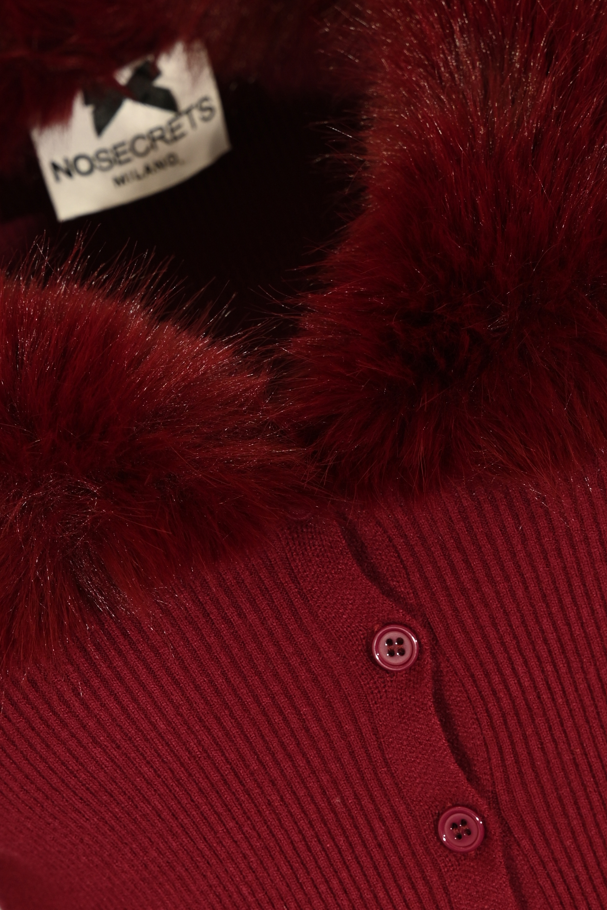 Cardigan maglia bordi simil pelliccia Ciliegia