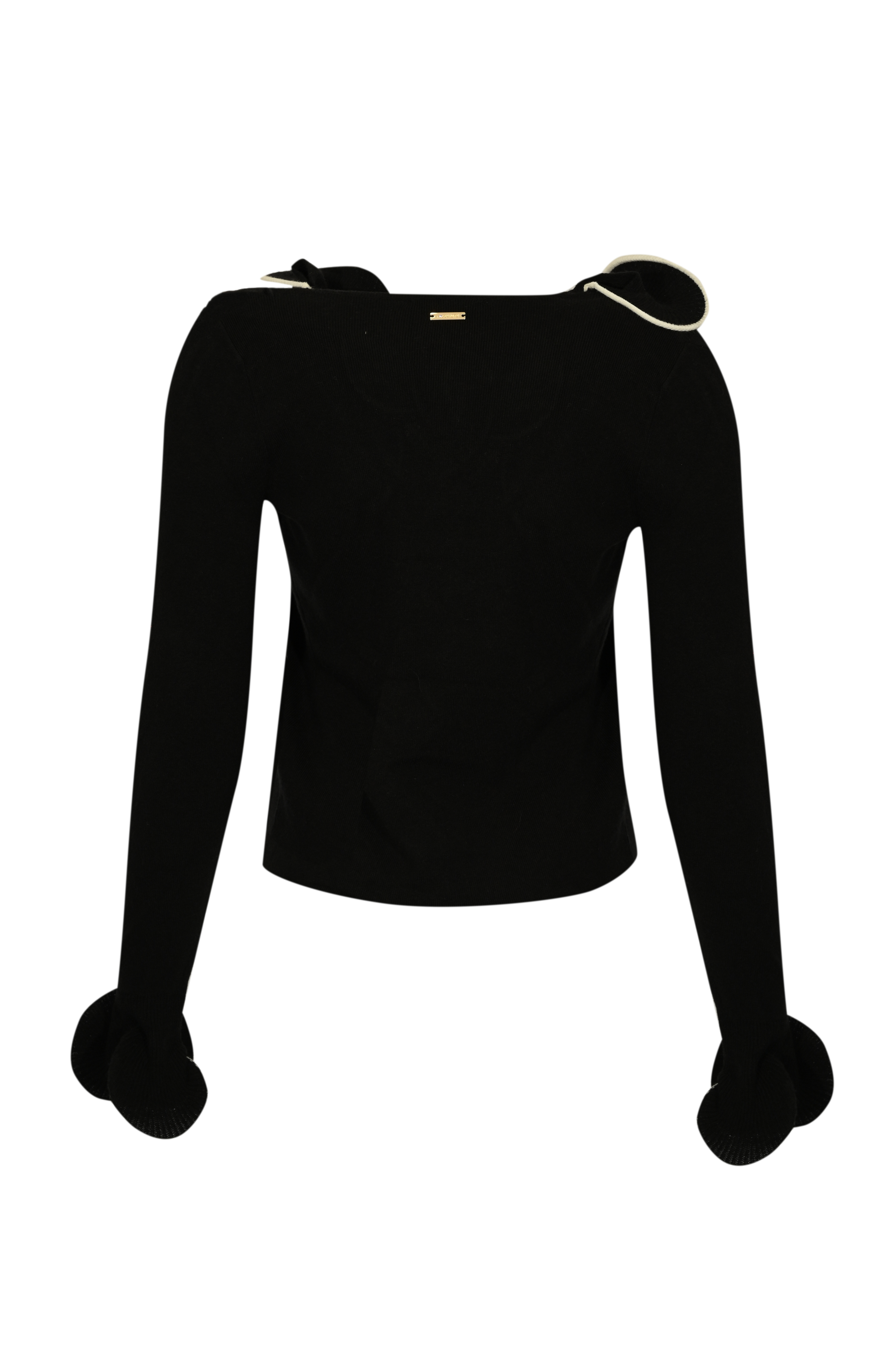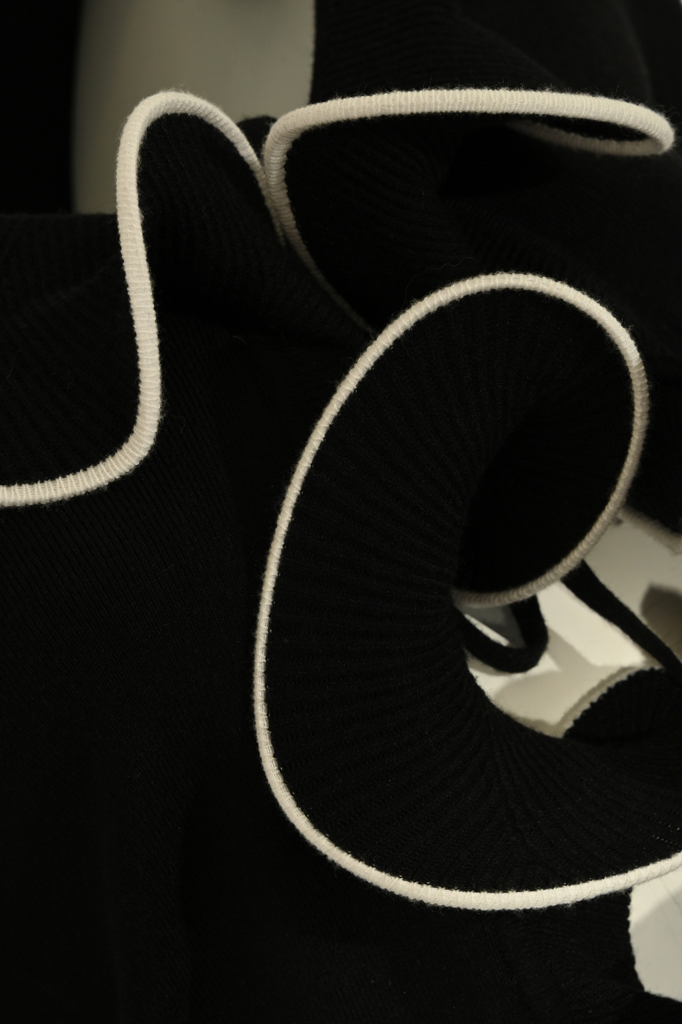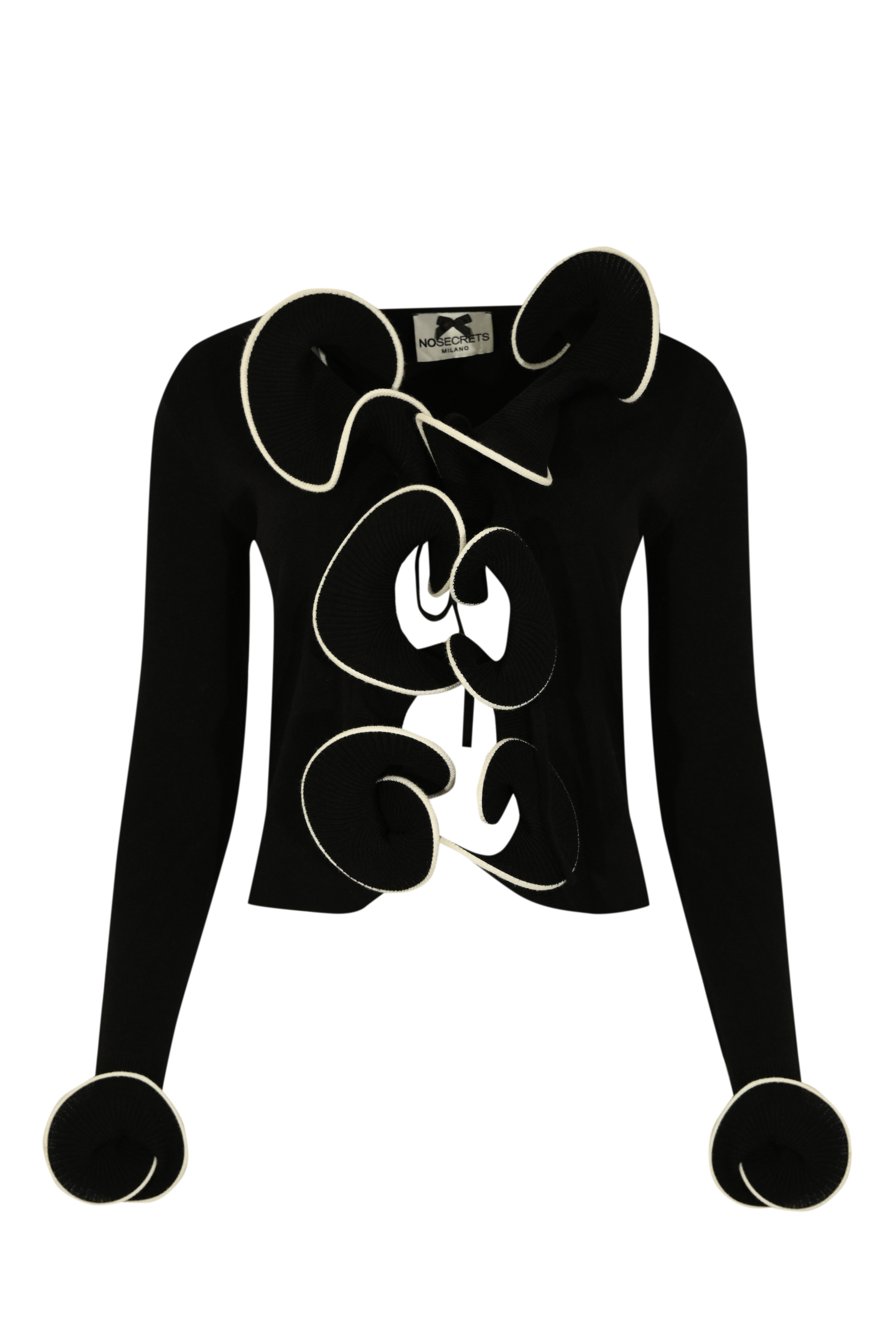 - Dettagli: rouches decorative sul davanti e sui polsi, profili a contrasto, linea aderente, look originale e femminile