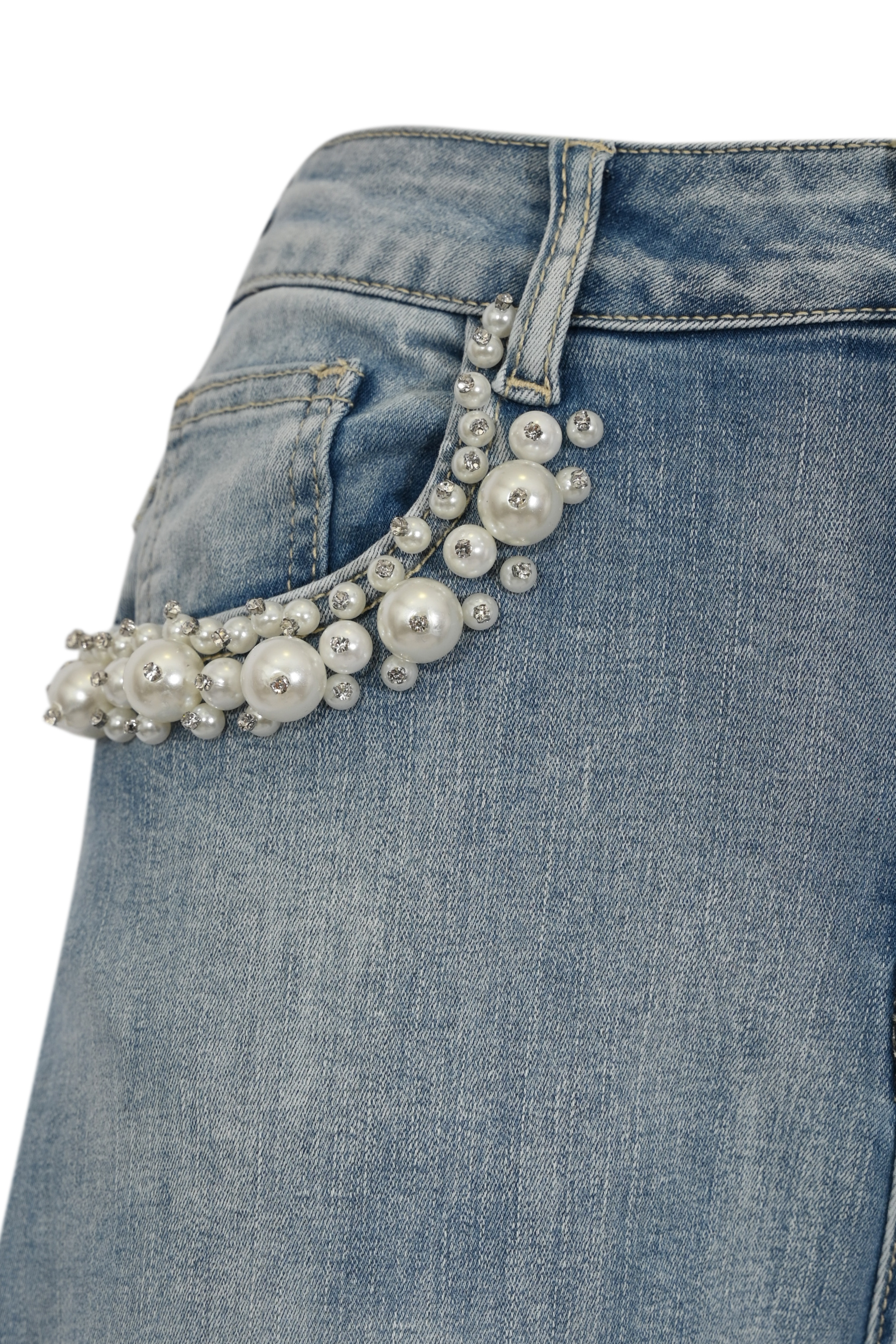 Jeans palazzo da donna in denim con applicazioni di perle, No Secrets