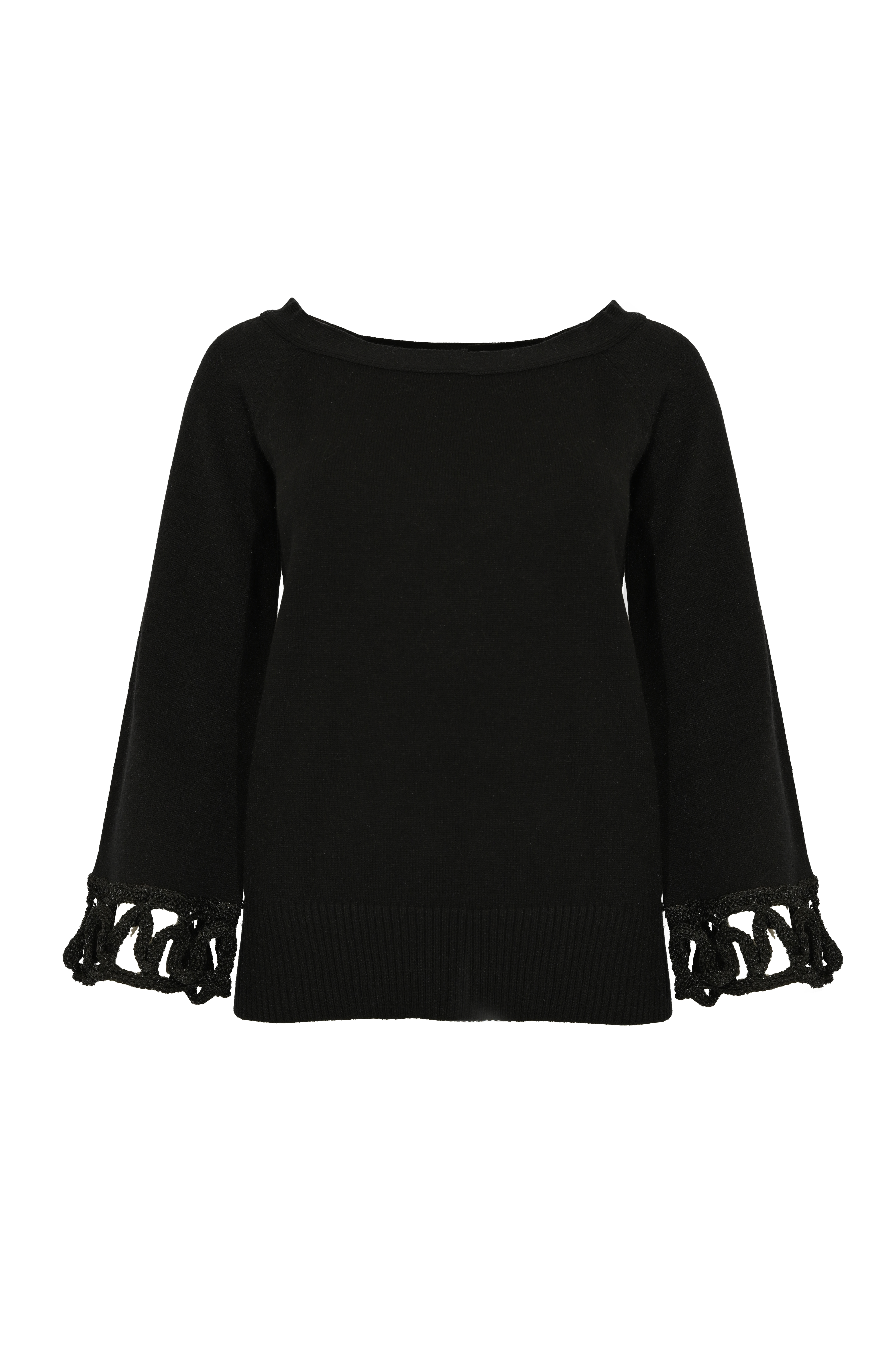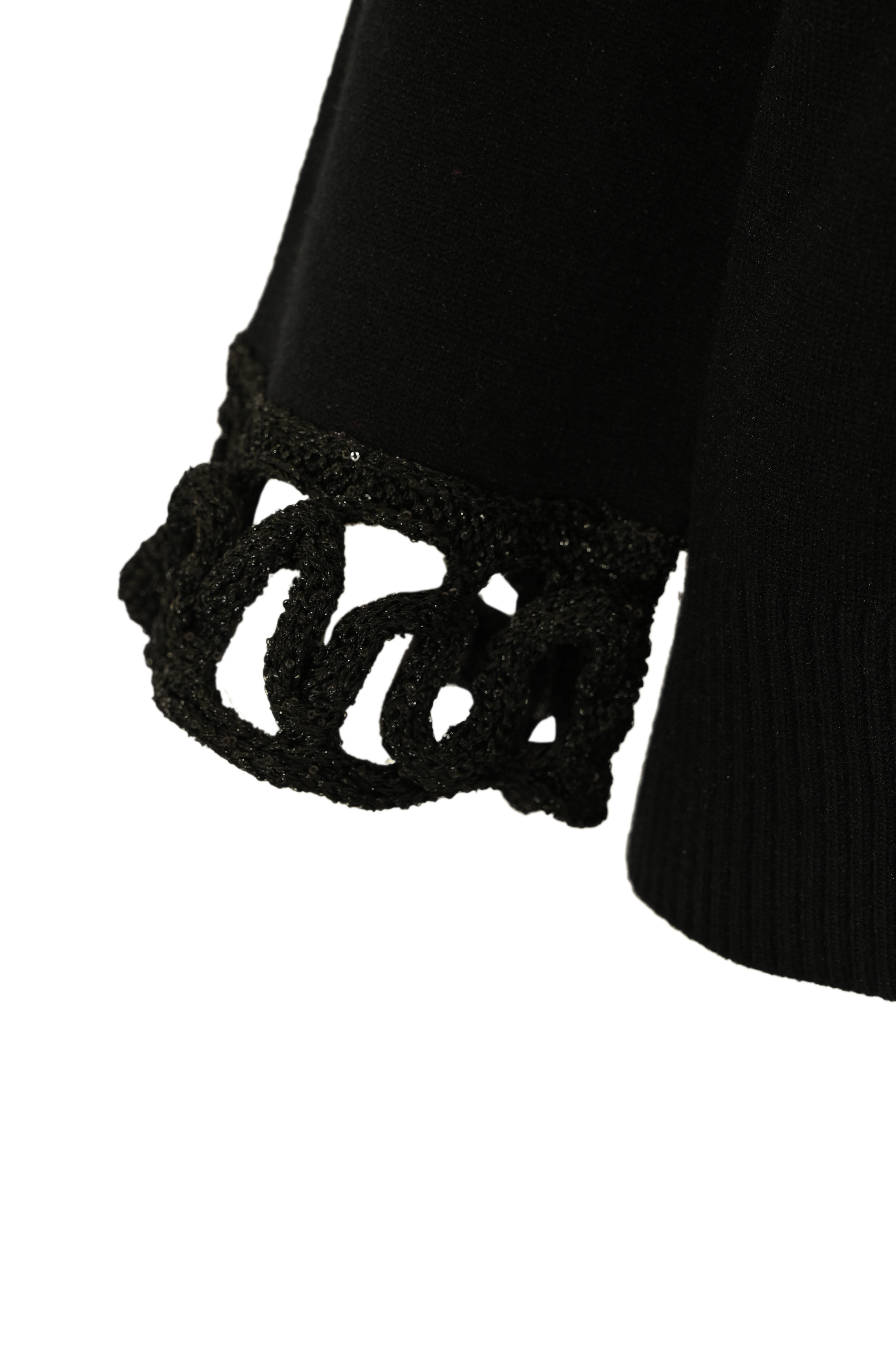 - Dettagli: polsi in lavorazione traforata a motivo intrecciato, bordi a coste
