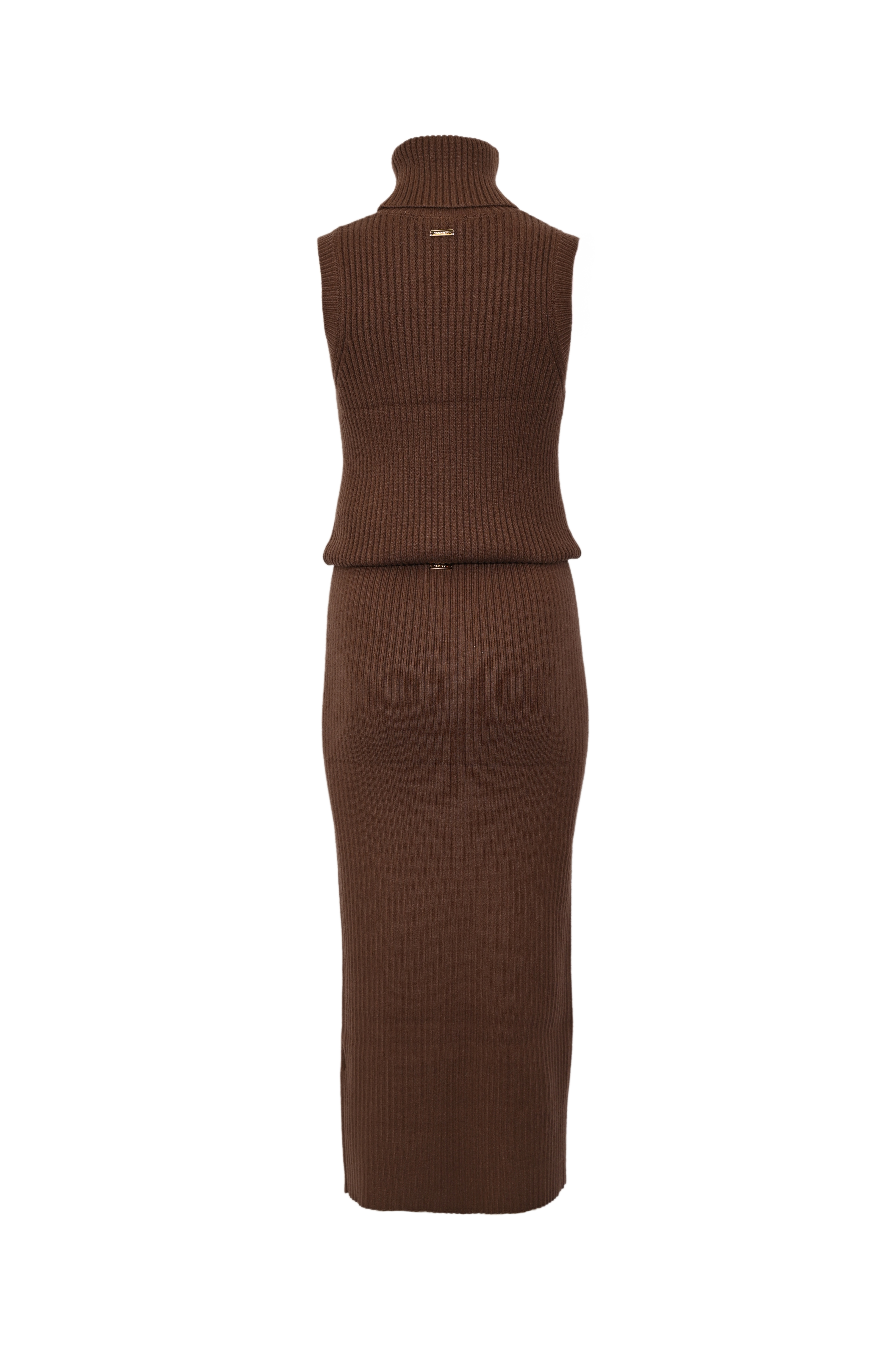 Set maglia smanicata e gonna longuette in viscosa Cioccolato