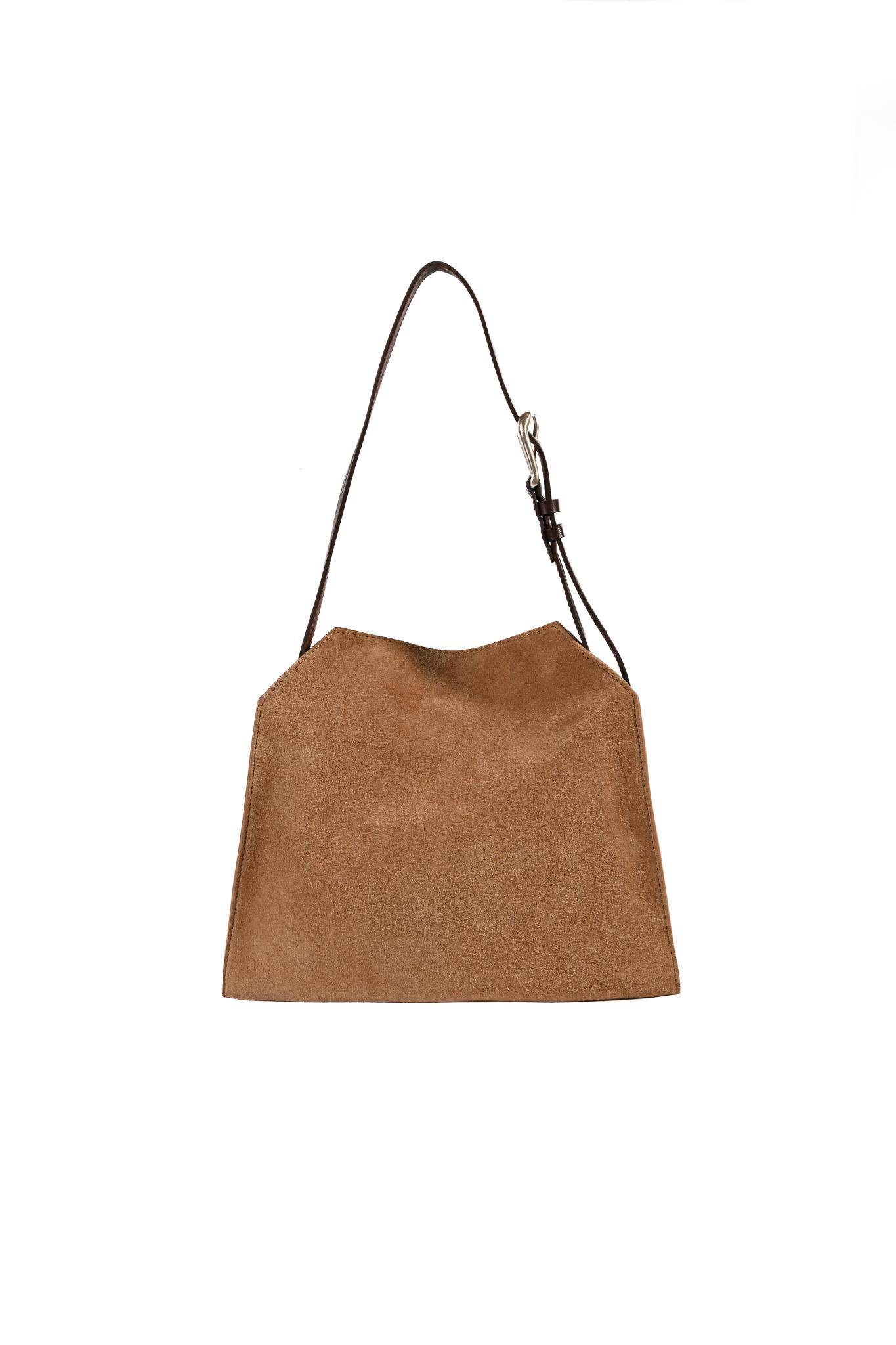 Borsa a spalla Trinity Peach Small in suede e cuoio Biscotto