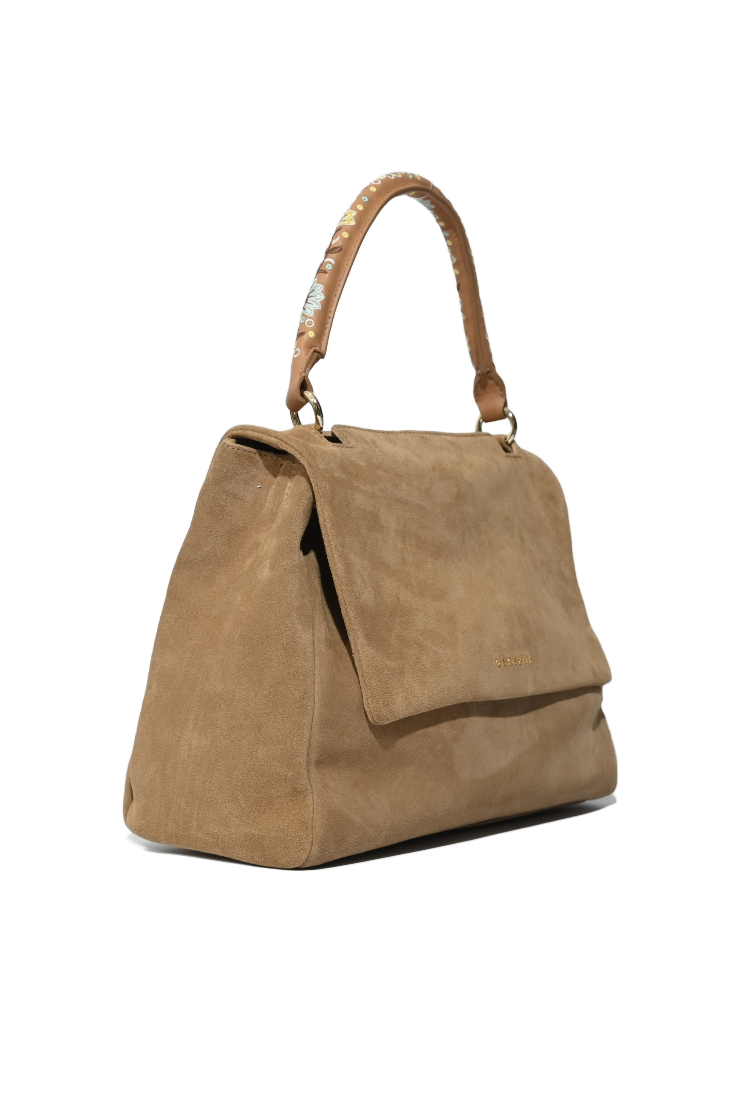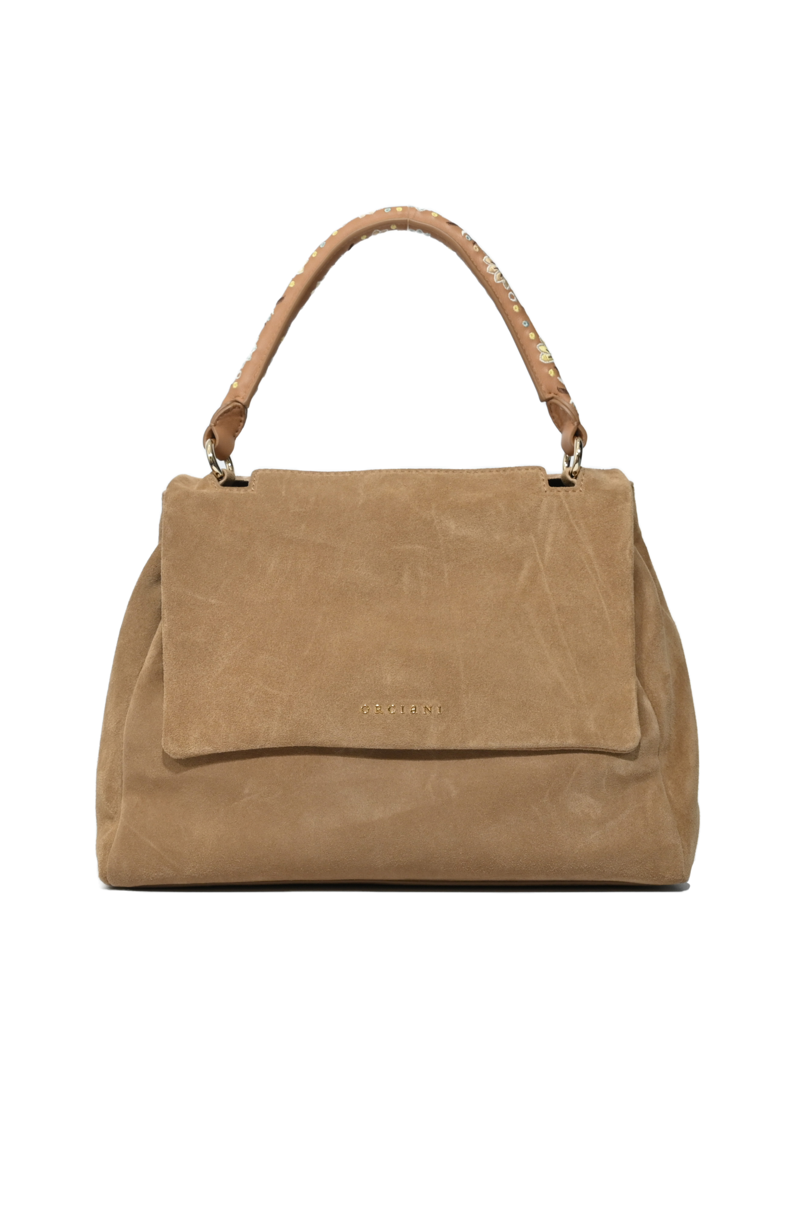 Borsa da donna in suede, Orciani, modello Sveva Peach Flowers Midi