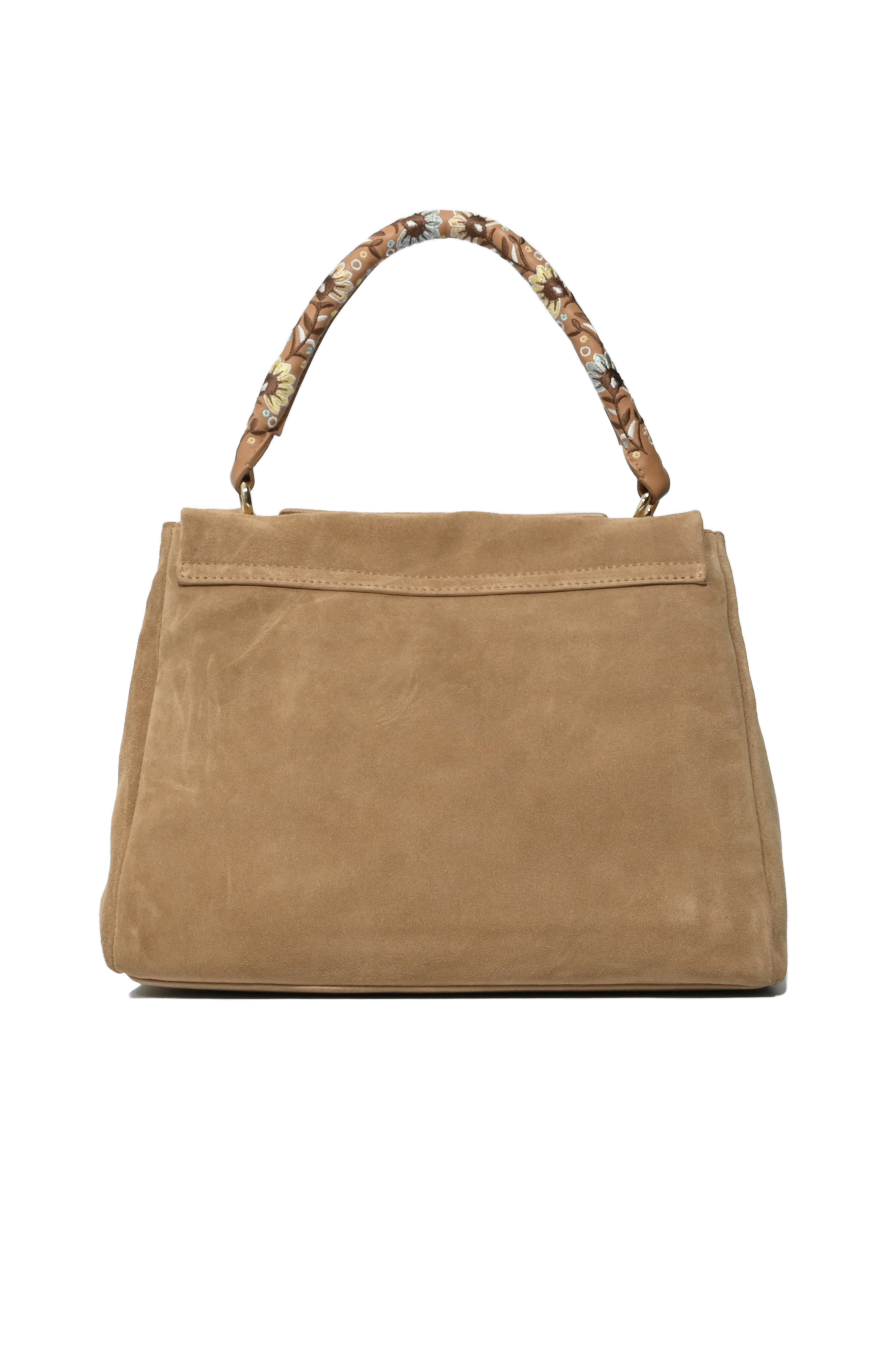 Borsa Sveva Peach Flowers Midi in suede con tracolla Biscotto