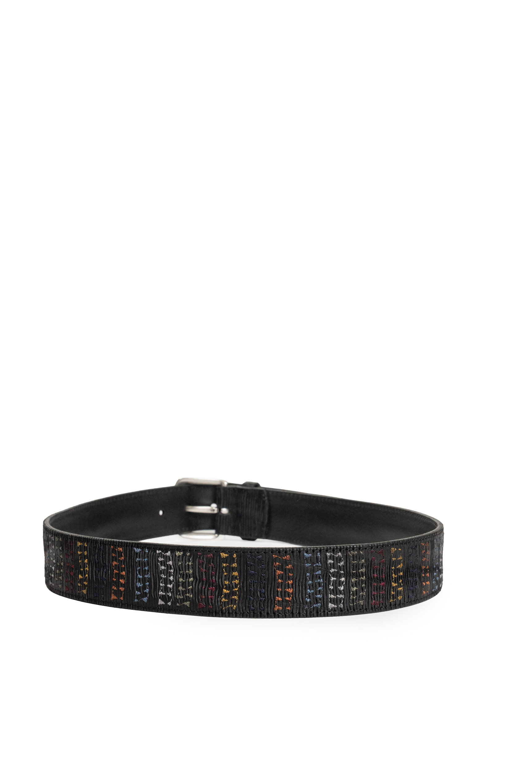 - Dettagli: Lavorazione artigianale con motivo inciso multicolore, passante in pelle coordinato, finitura opaca