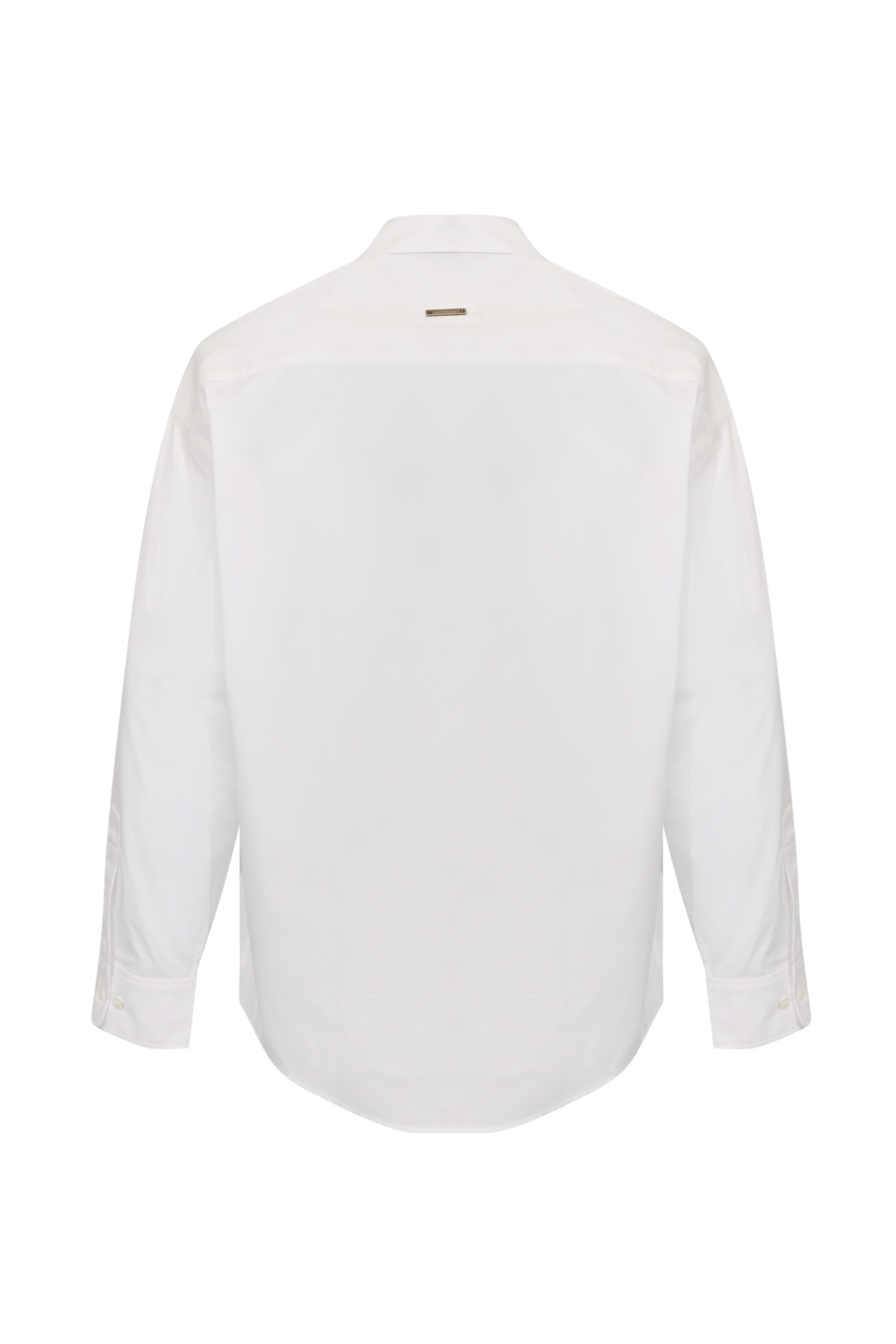 - Dettagli: polsini con bottone, impunture tono su tono, fondo arrotondato, placchetta logo sul retro