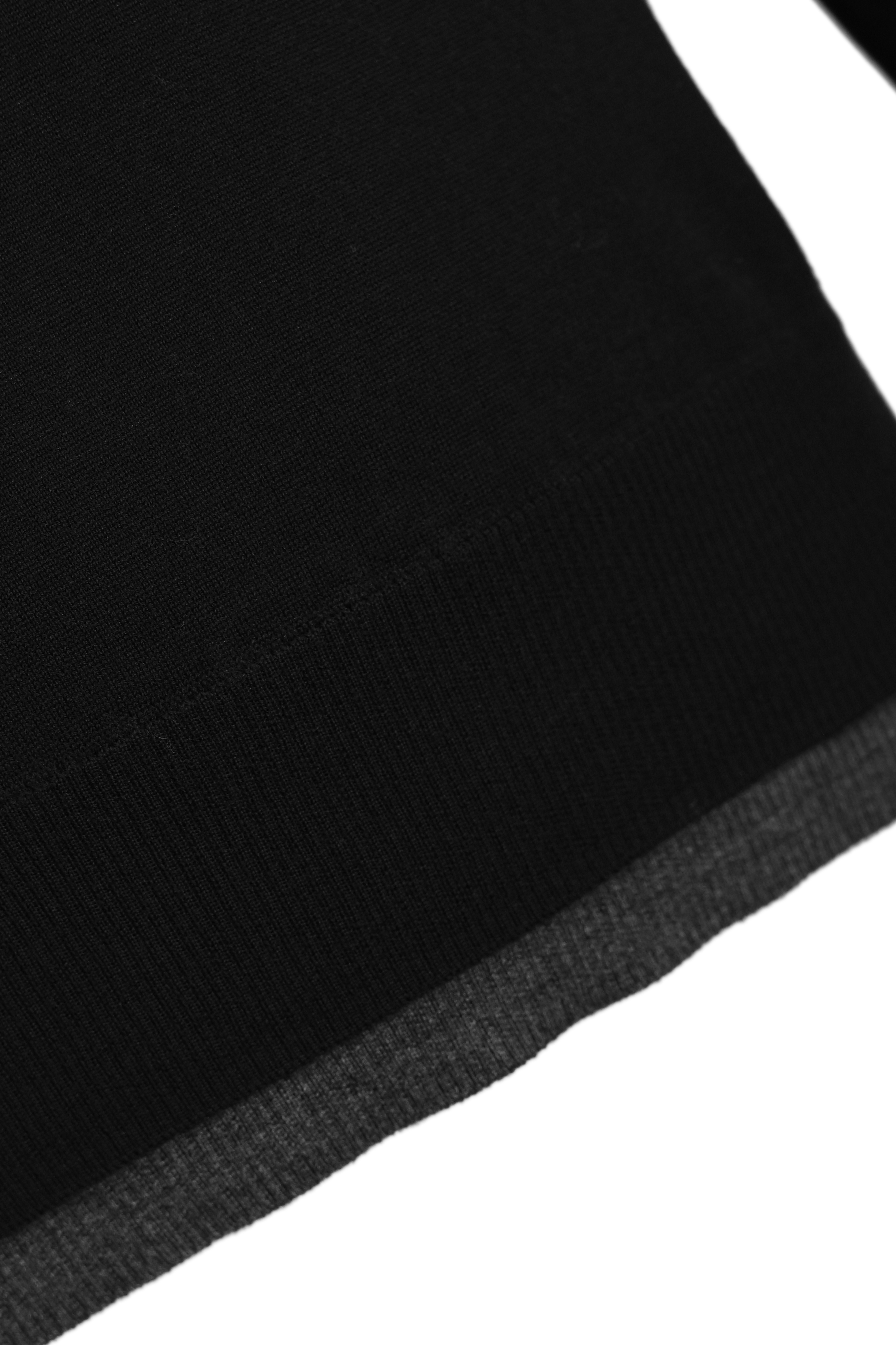 - Dettagli: Finiture a coste su collo, polsini e fondo, bordo inferiore in contrasto di colore