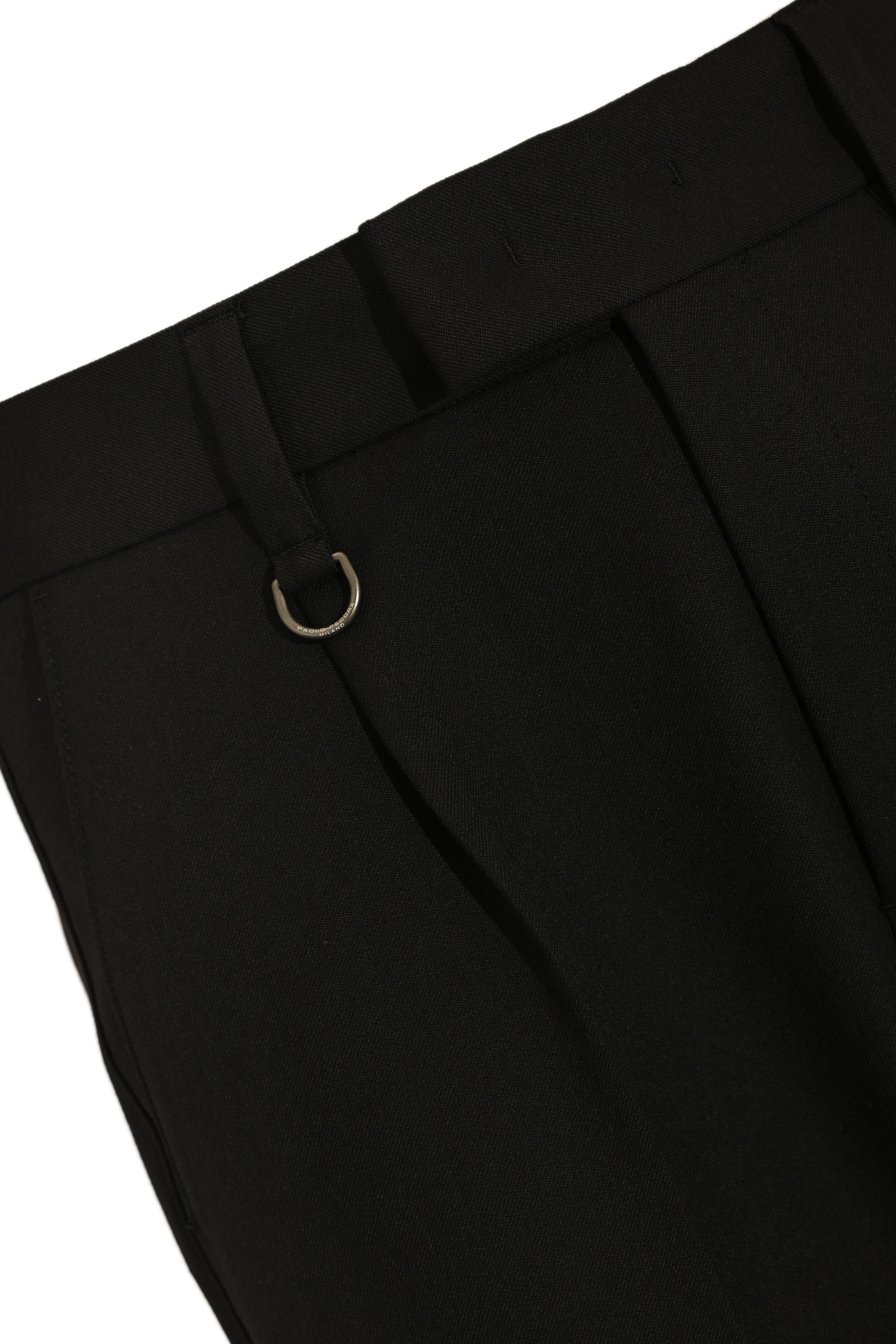 - Dettagli: Pinces frontali, piega stirata, linea elegante e moderna, logo metallico applicato sul retro