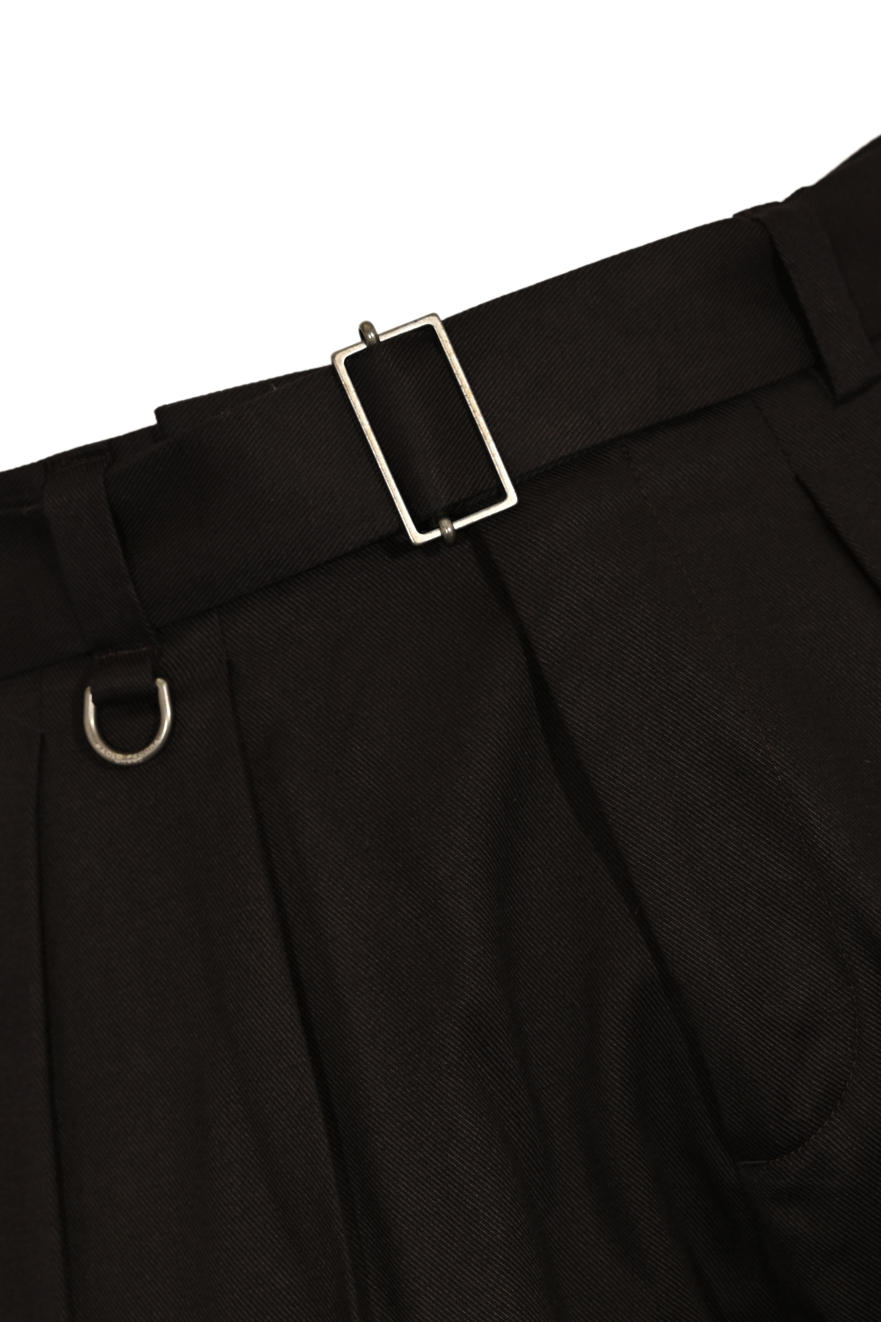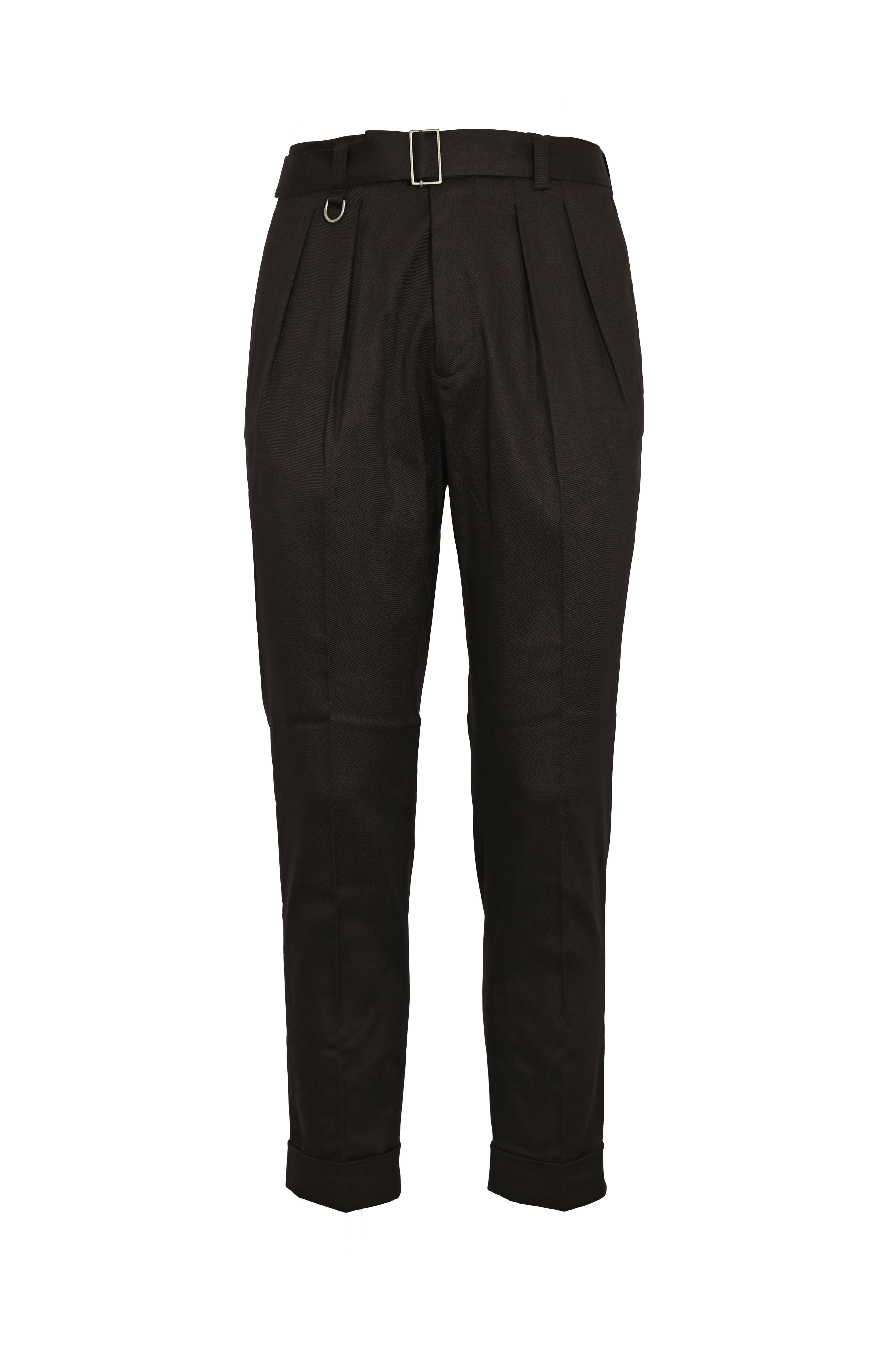 - Dettagli: Pinces frontali, anello metallico decorativo, piega stirata, costruzione sartoriale