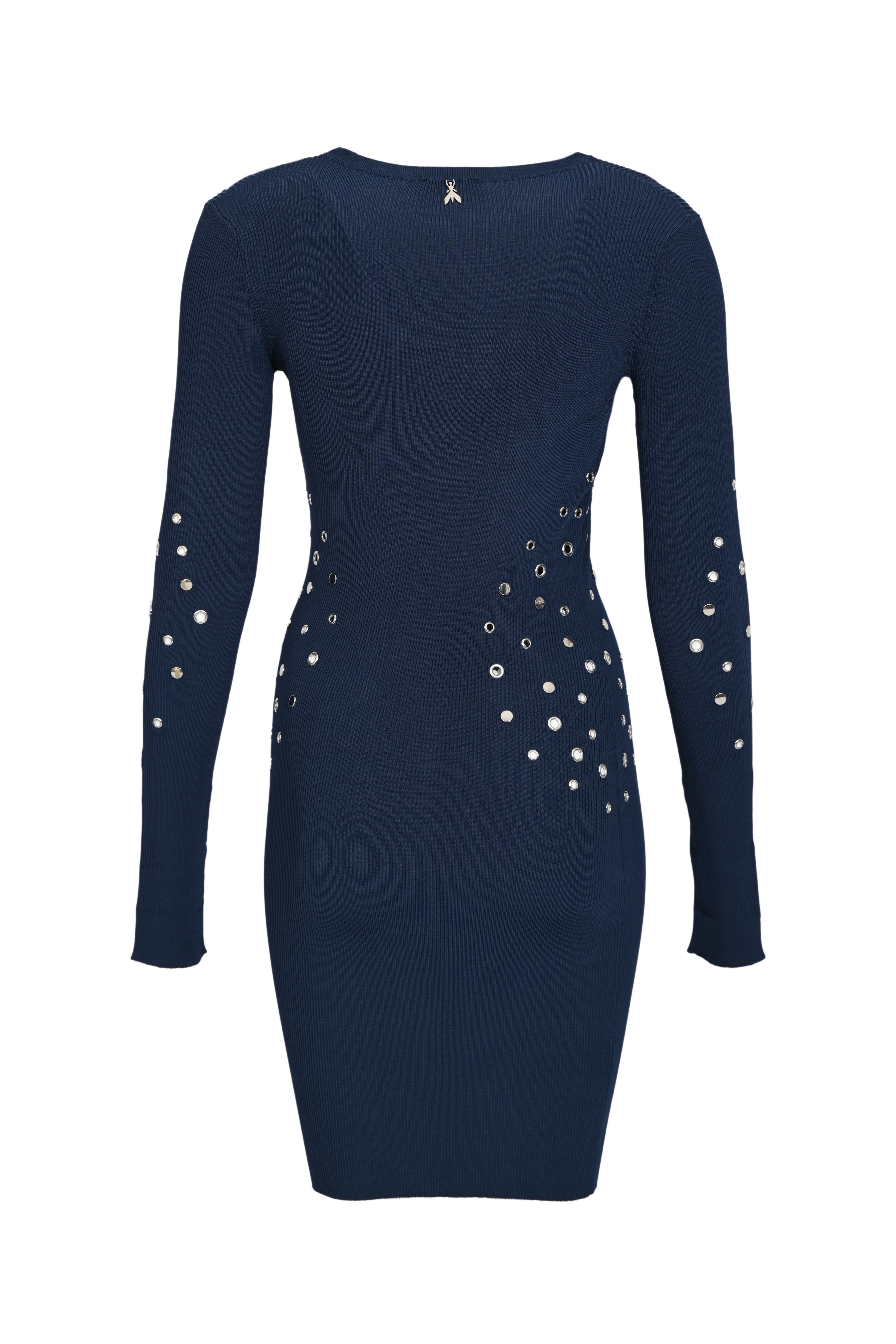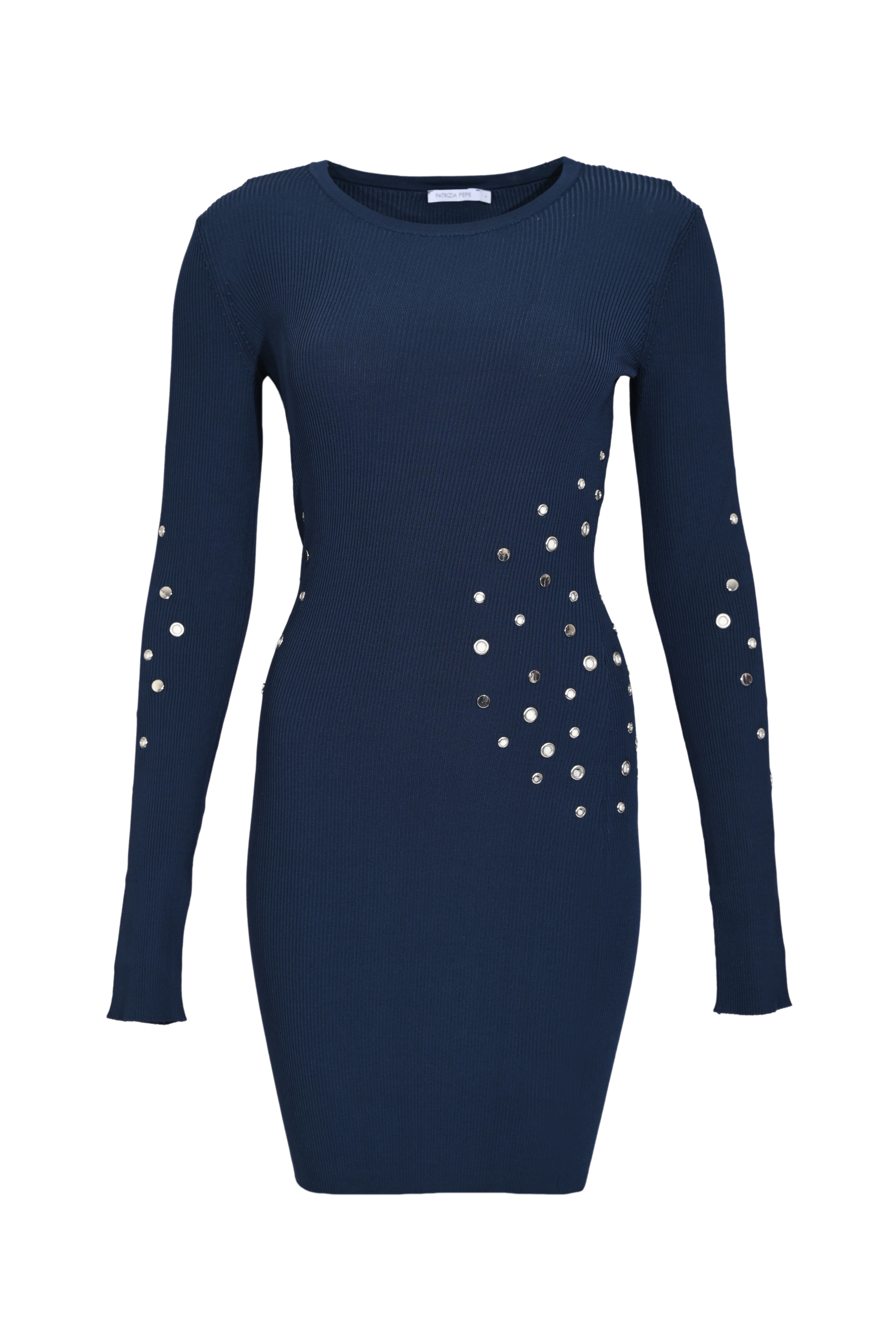 Abito corto in maglia di viscosa a costine con borchie