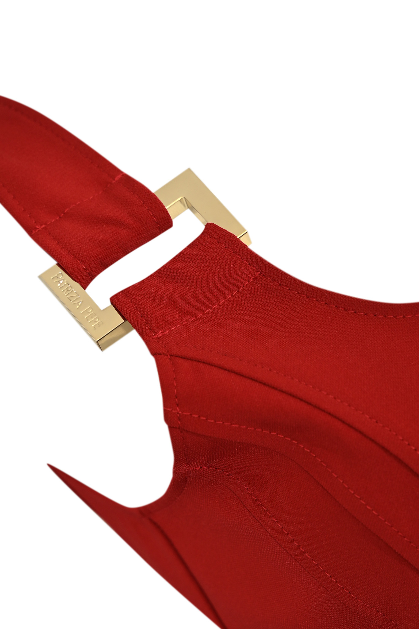 - Dettagli: fibbia metallica dorata logata su una spallina, cuciture modellanti, spacco posteriore