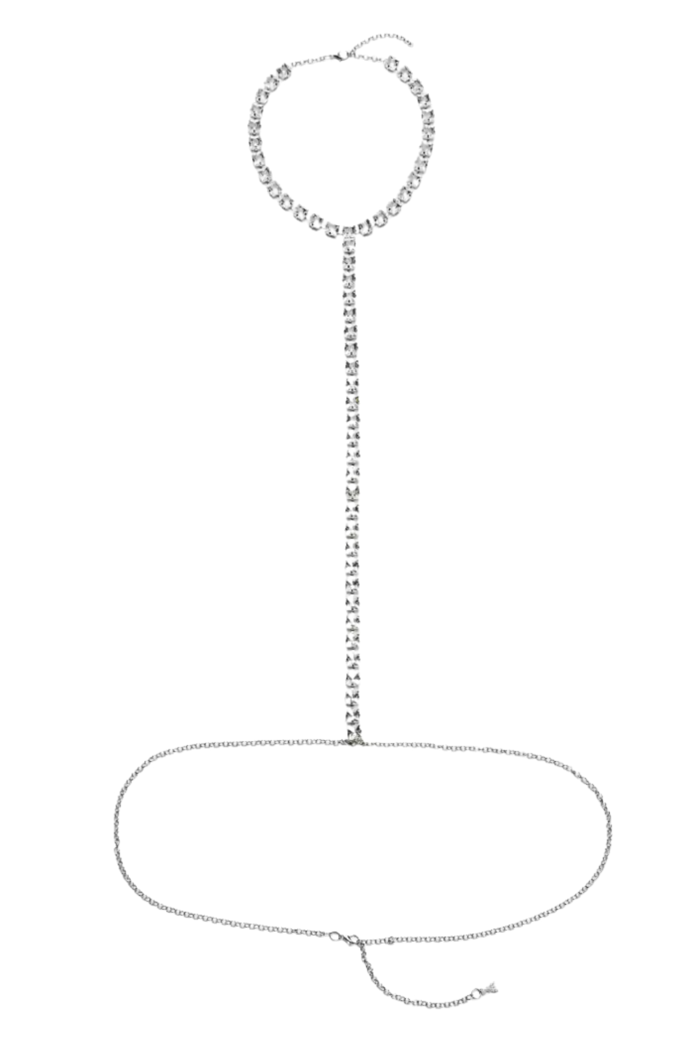 - Dettagli: design gioiello corpo con struttura a collana e cintura collegata da elemento centrale, cristalli sfaccettati che creano un effetto luminoso, dettaglio Fly iconico pendente sul retro, stile glamour e scenografico
