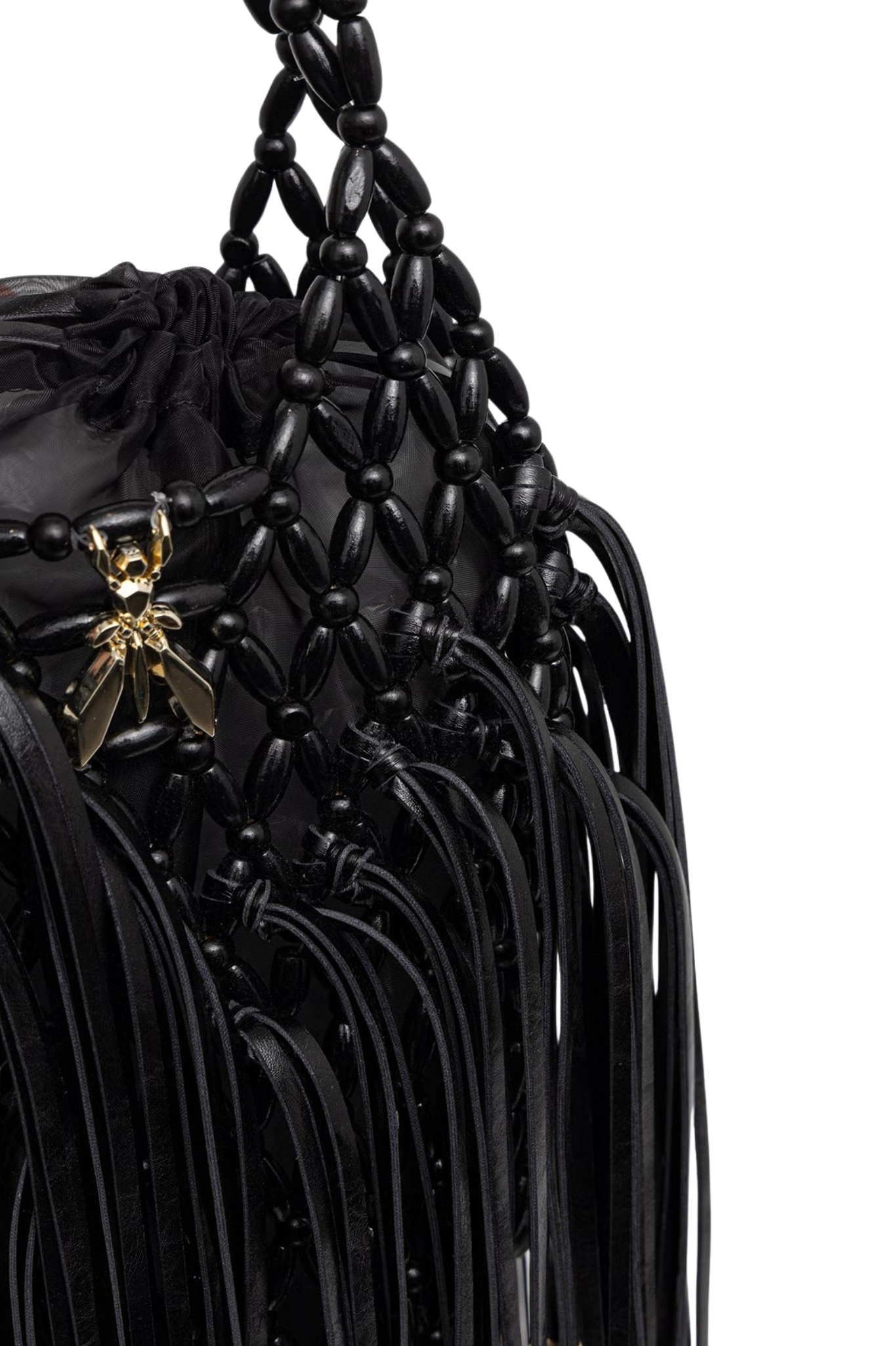 - Dettagli: frange decorative, lavorazione a rete con perline in legno, logo Fly metallico frontale