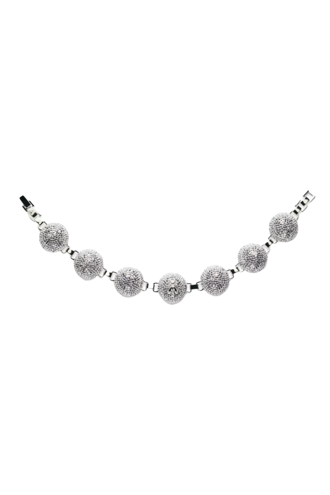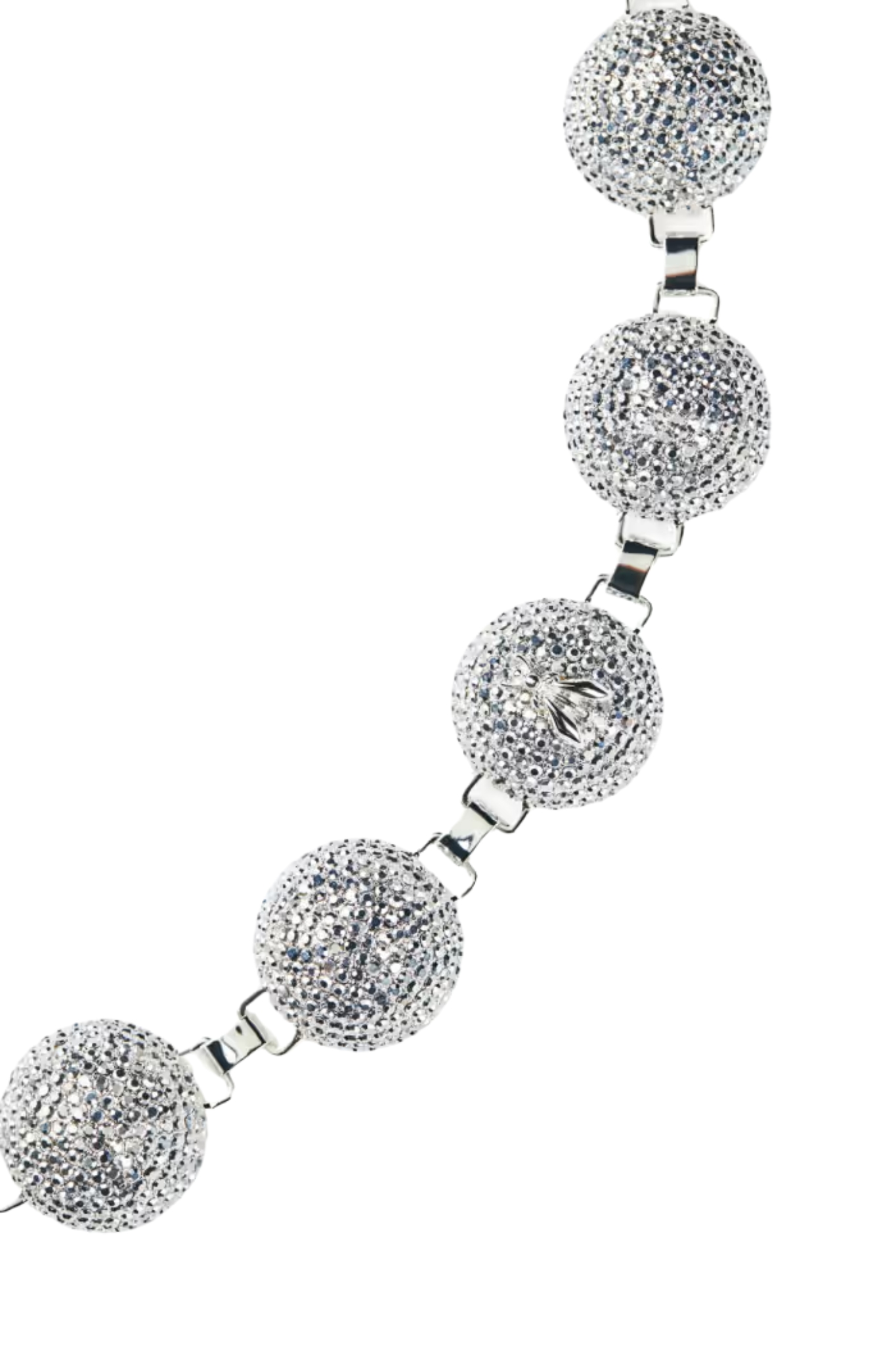 - Dettagli: design a catena con sfere ricoperte di cristalli, elemento centrale con logo Fly inciso, effetto brillante e luminoso, stile elegante e contemporaneo