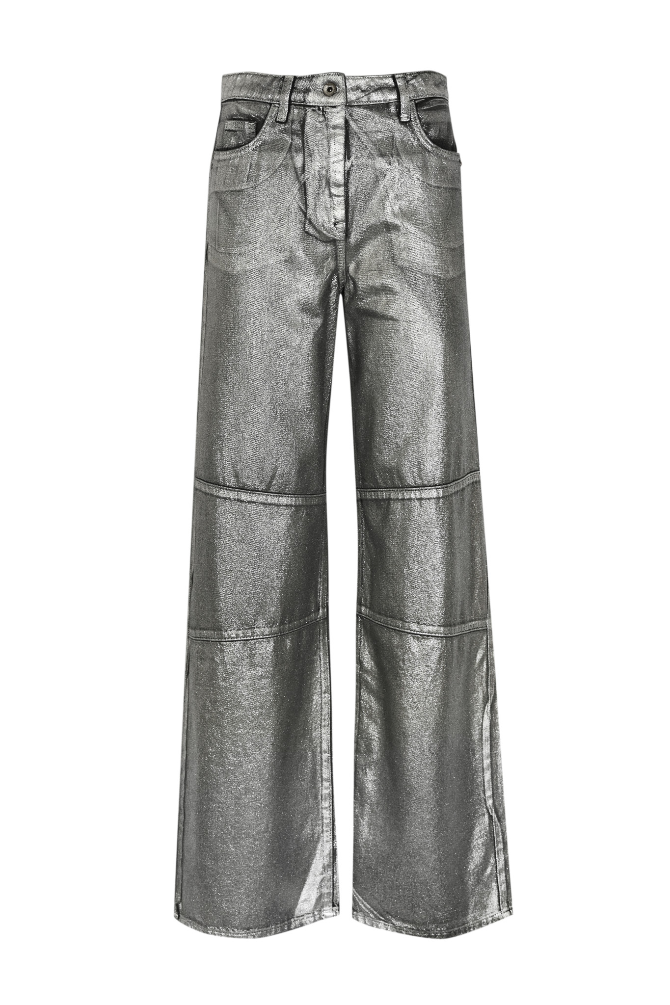 Jeans larghi metallizzati in tela denim laminata, Patrizia Pepe