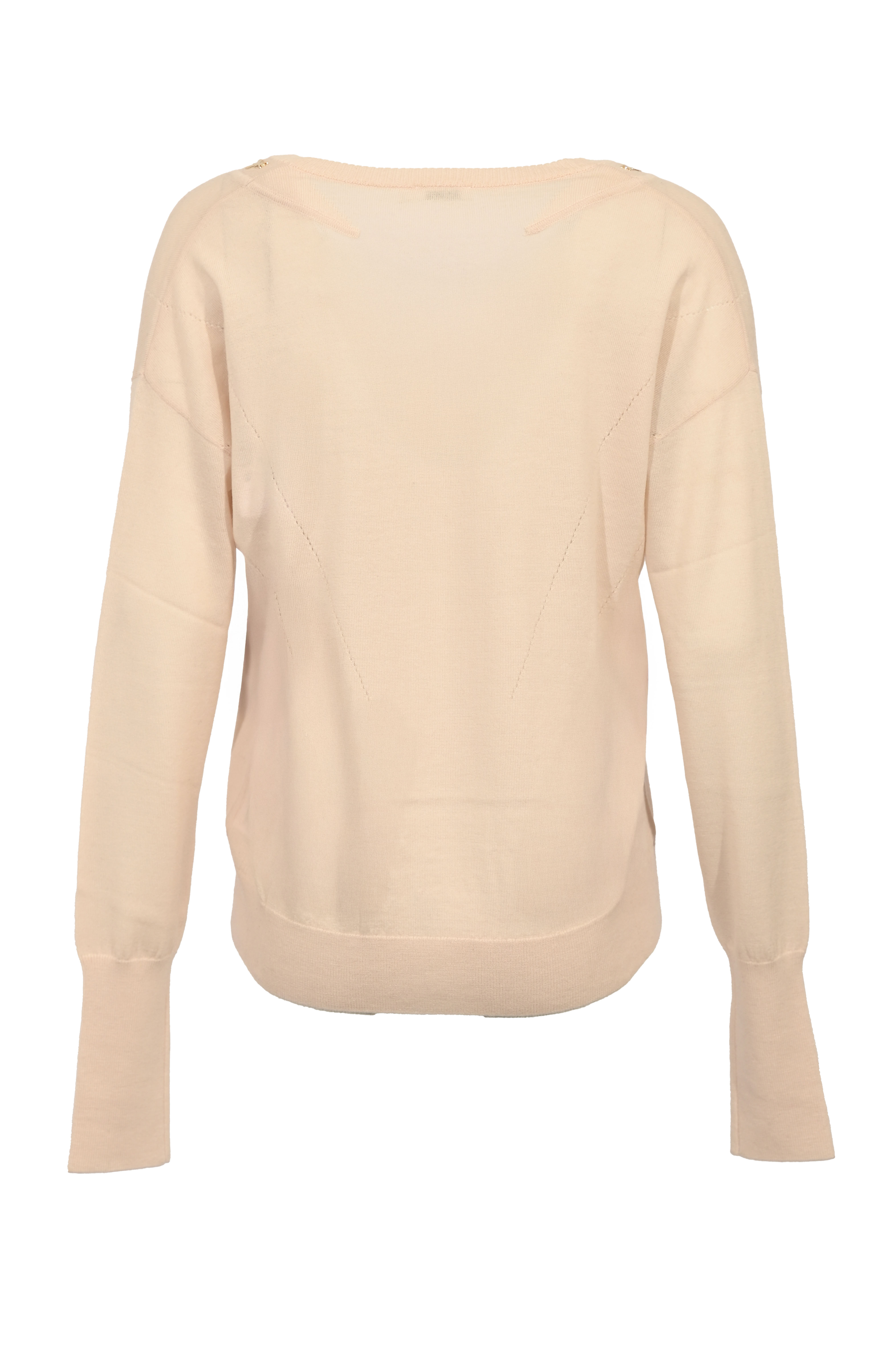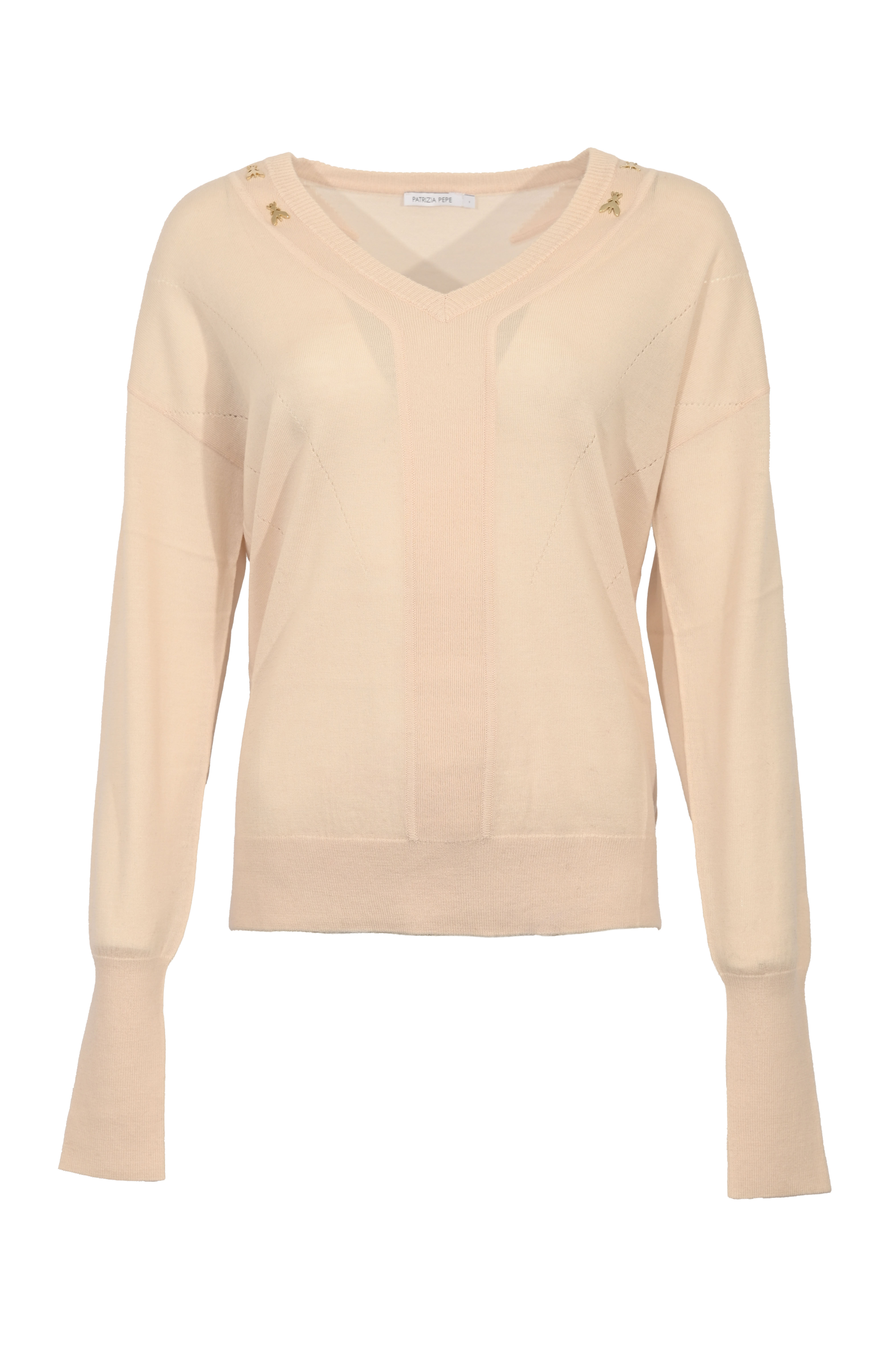 - Collo: scollo a V con dettaglio di piccole Fly metalliche sulle spalle