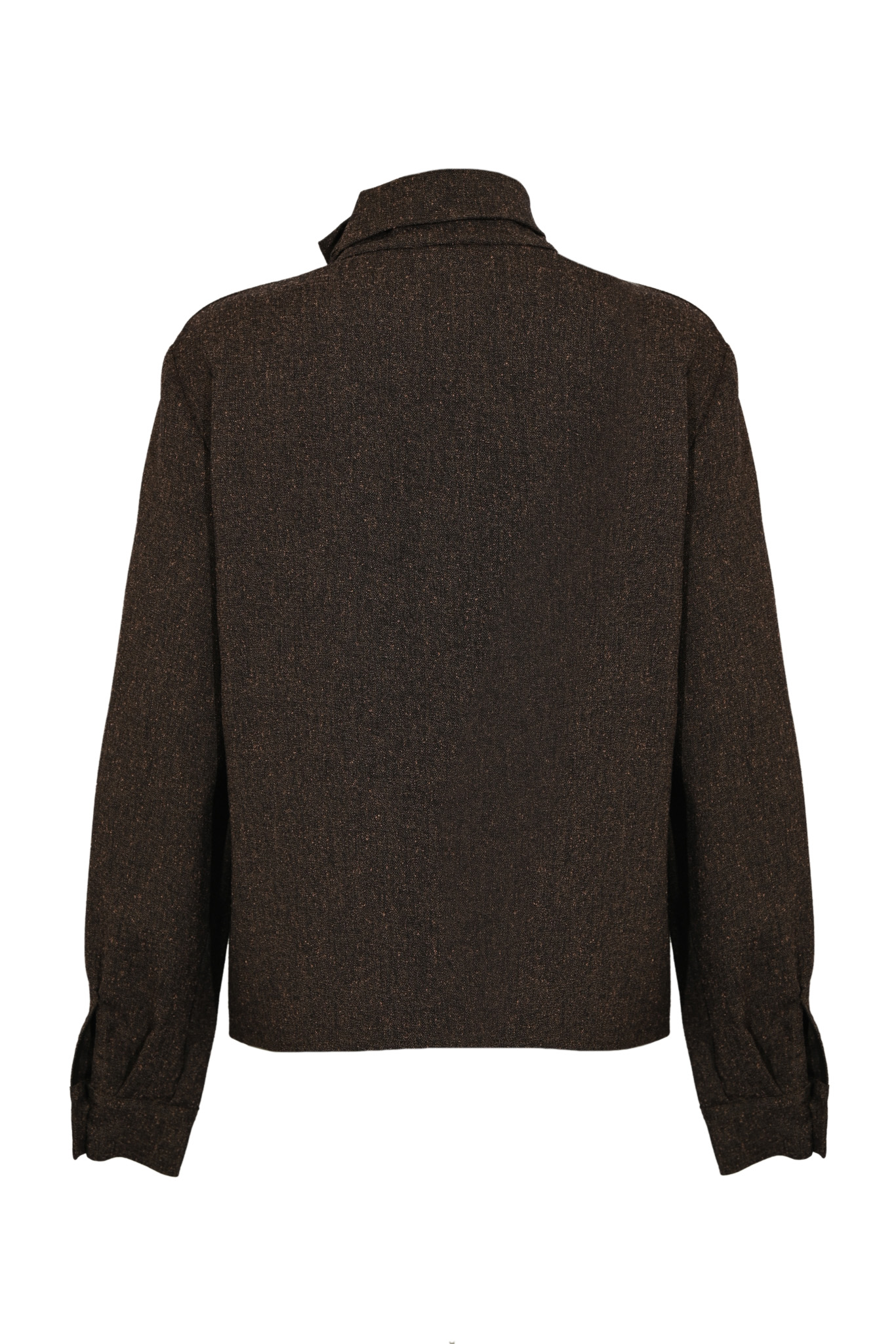 - Dettagli: bottoni logati su collo e polsini, linea dritta e texture compatta