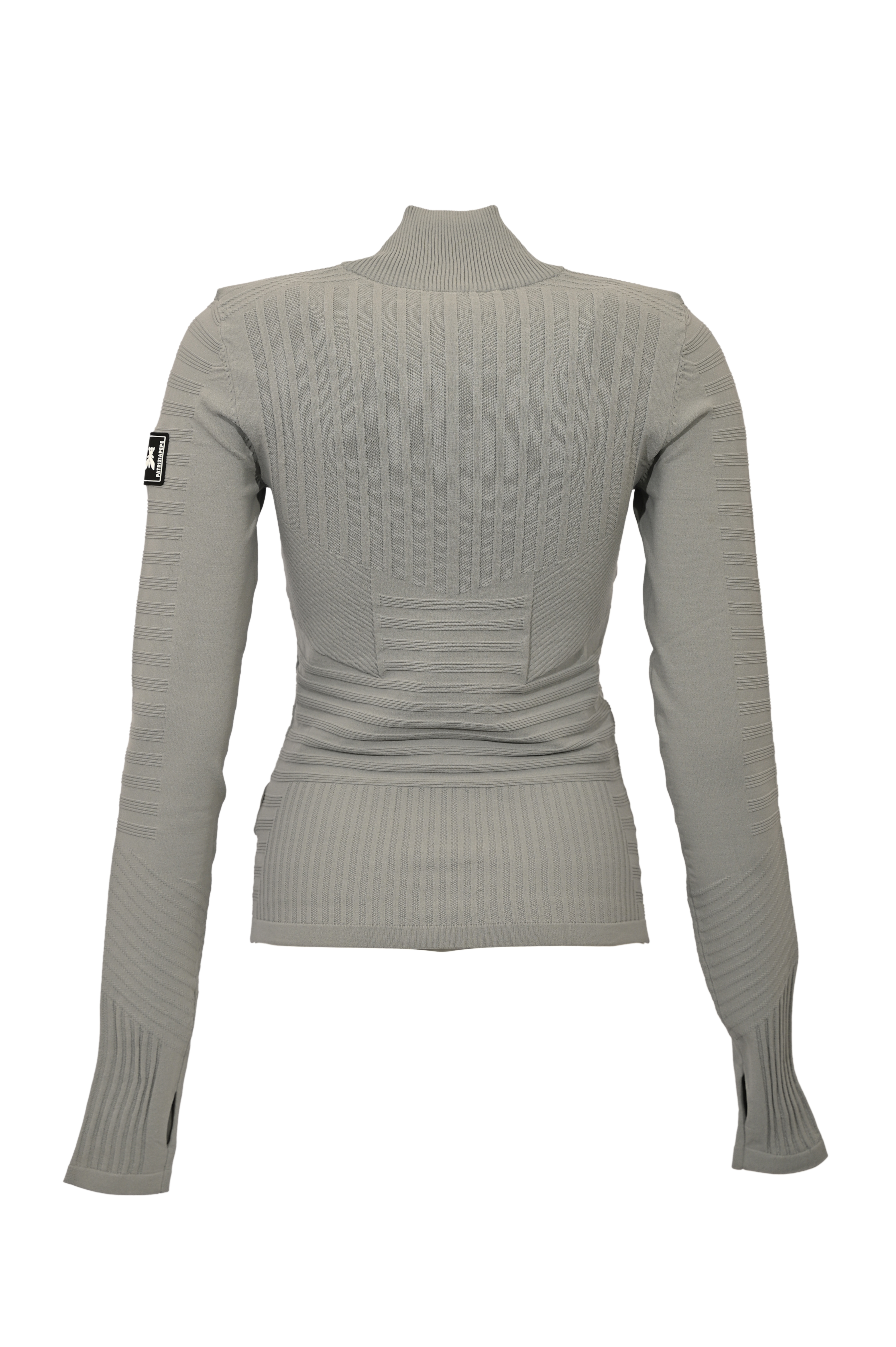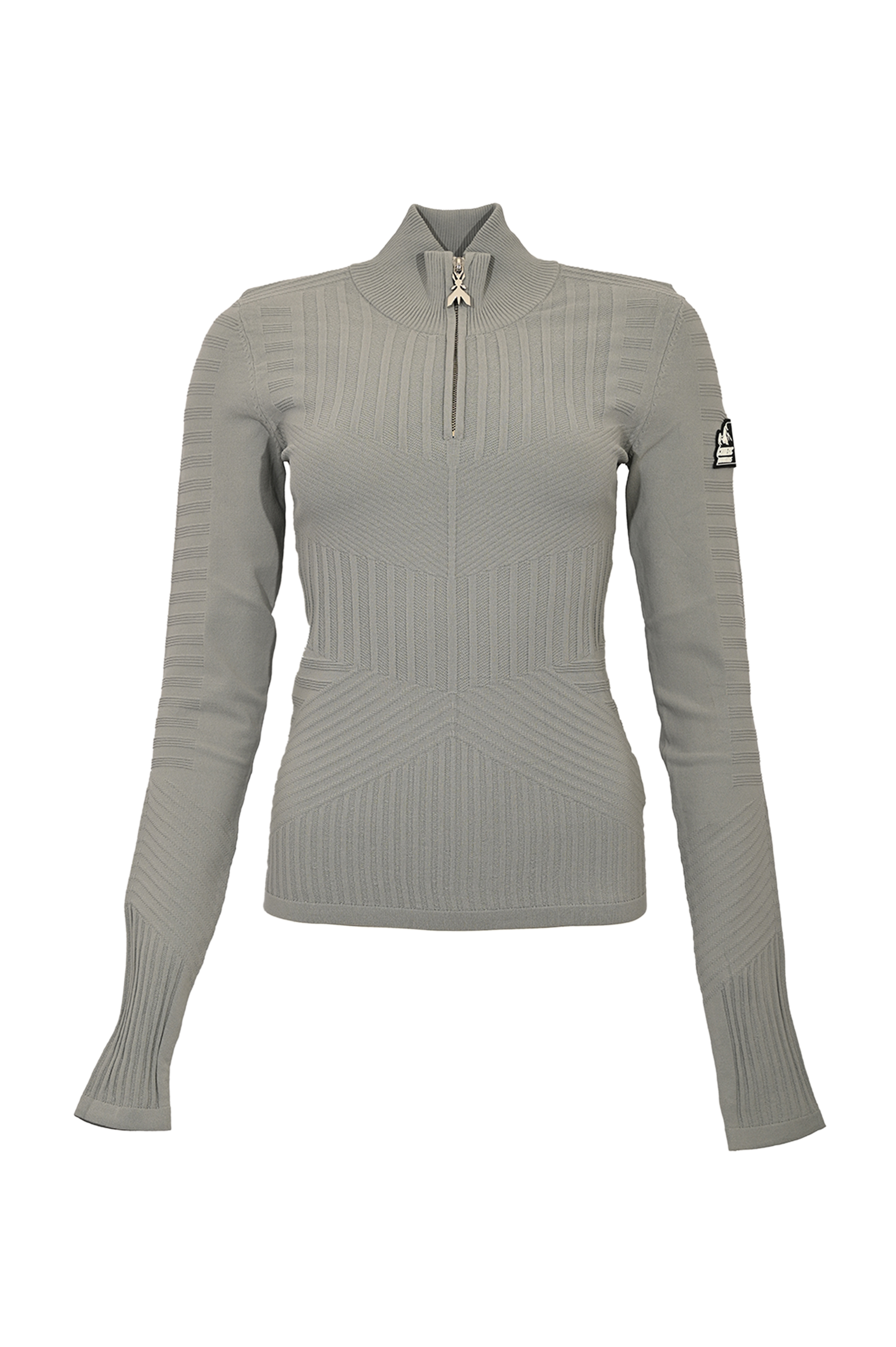 - Dettagli: lavorazione geometrica a costine, logo applicato sulla manica sinistra, linea aderente che valorizza la silhouette