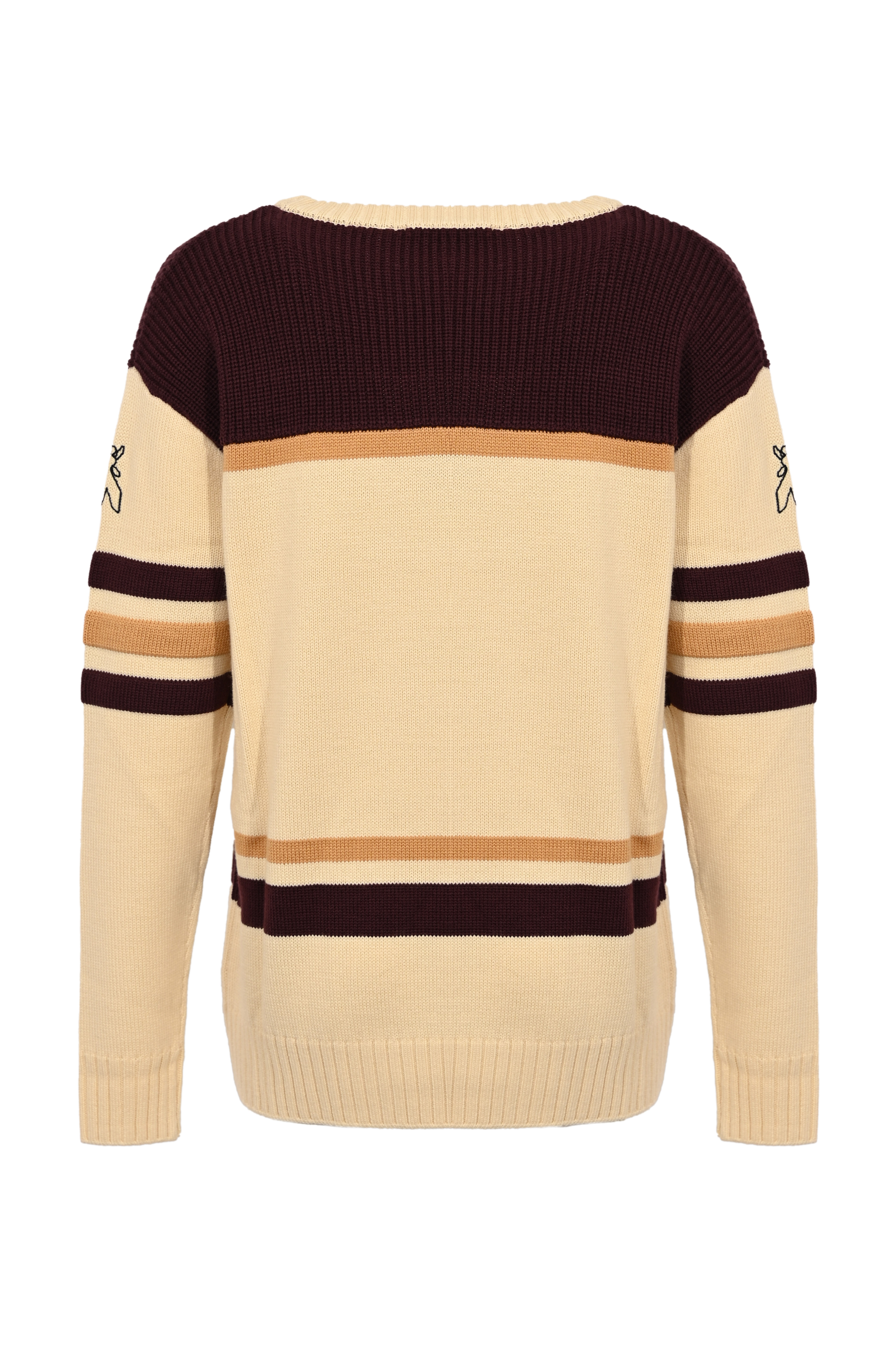 - Dettagli: logo jacquard frontale, righe color block, bordi a costine su collo, fondo e polsini