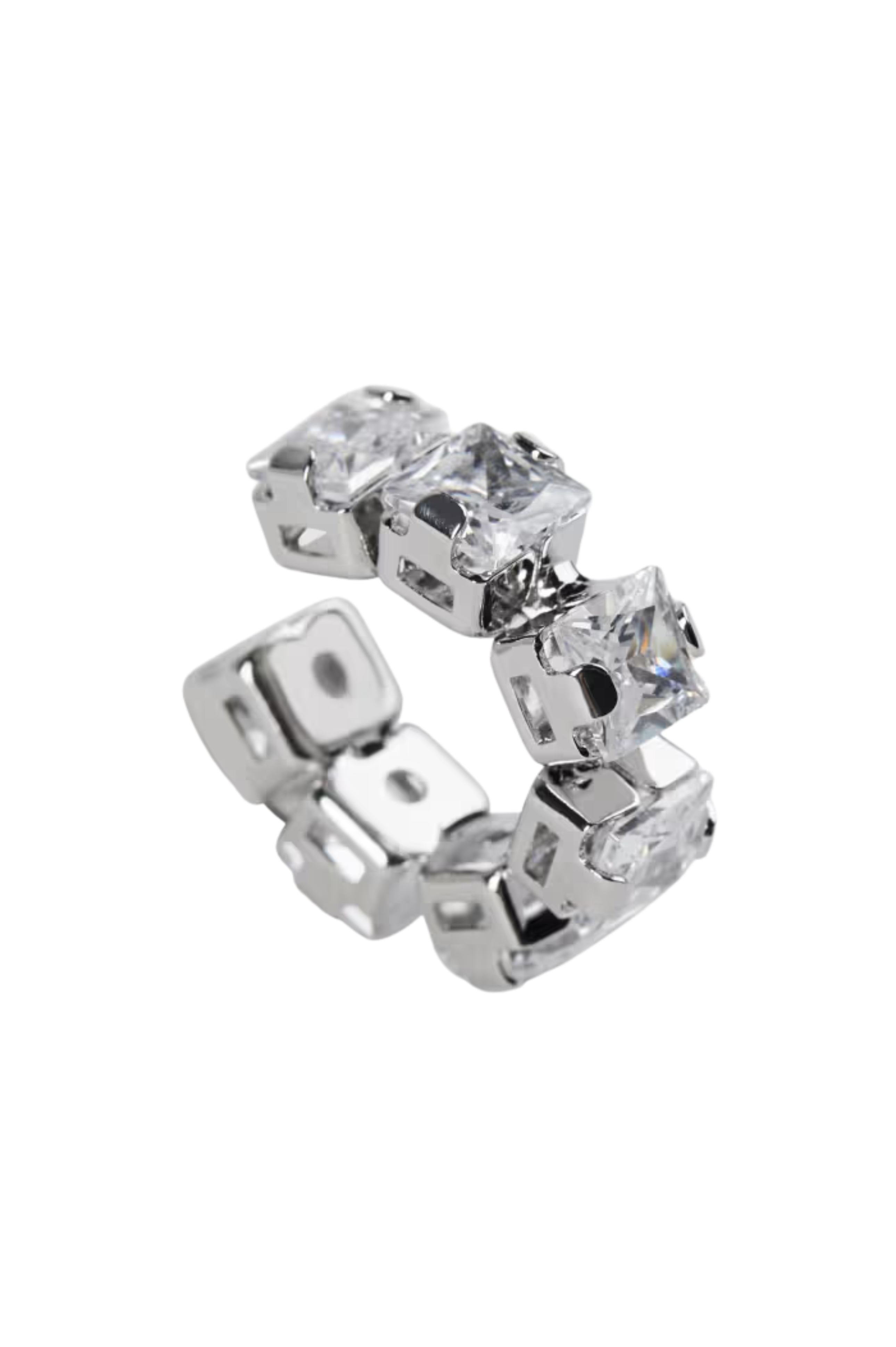 - Dettagli: orecchini a cerchio aperto effetto earcuff, caratterizzati da una struttura modulare con pietre quadrate incastonate su tutta la superficie. Design contemporaneo e raffinato, ideale per completare look eleganti e moderni