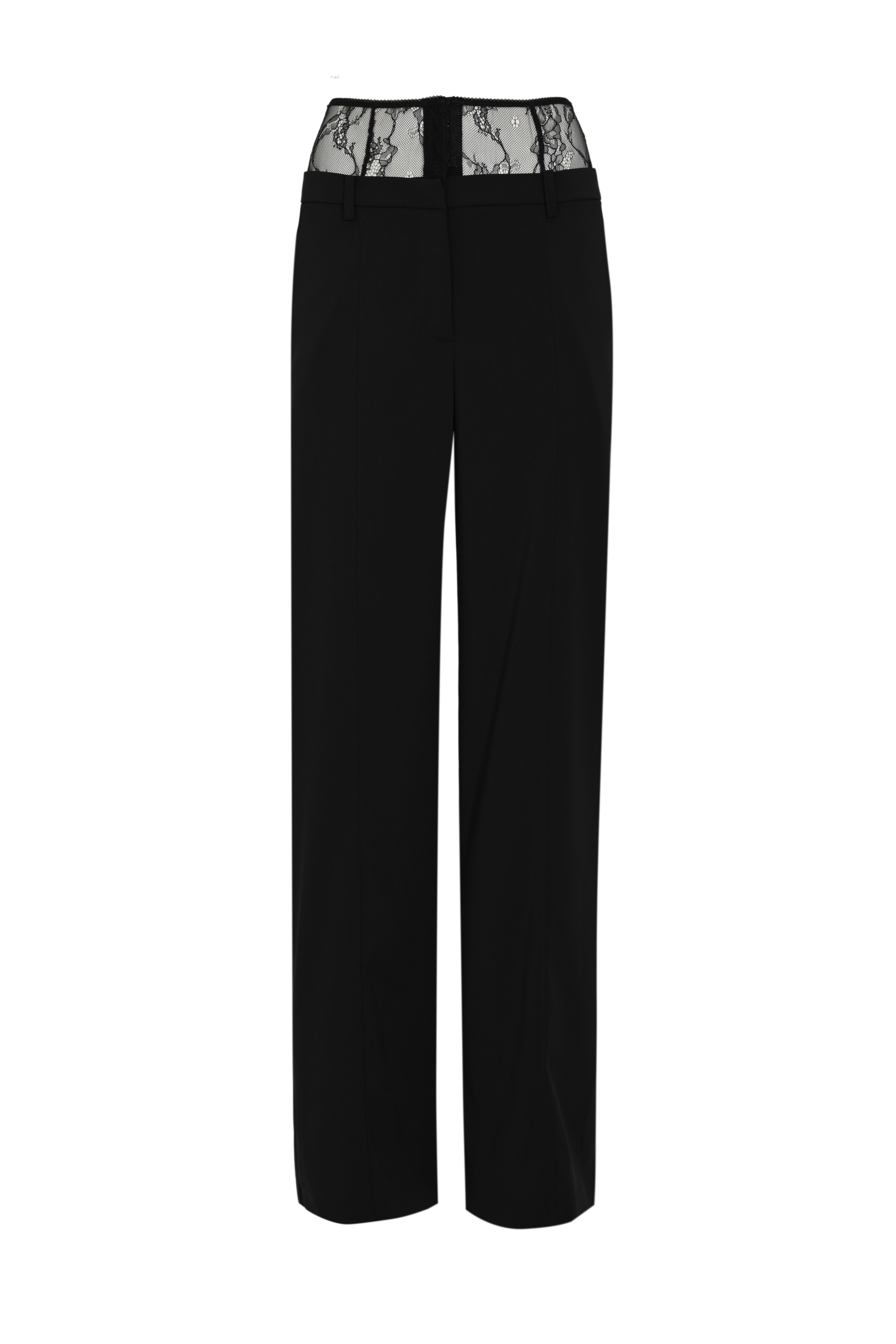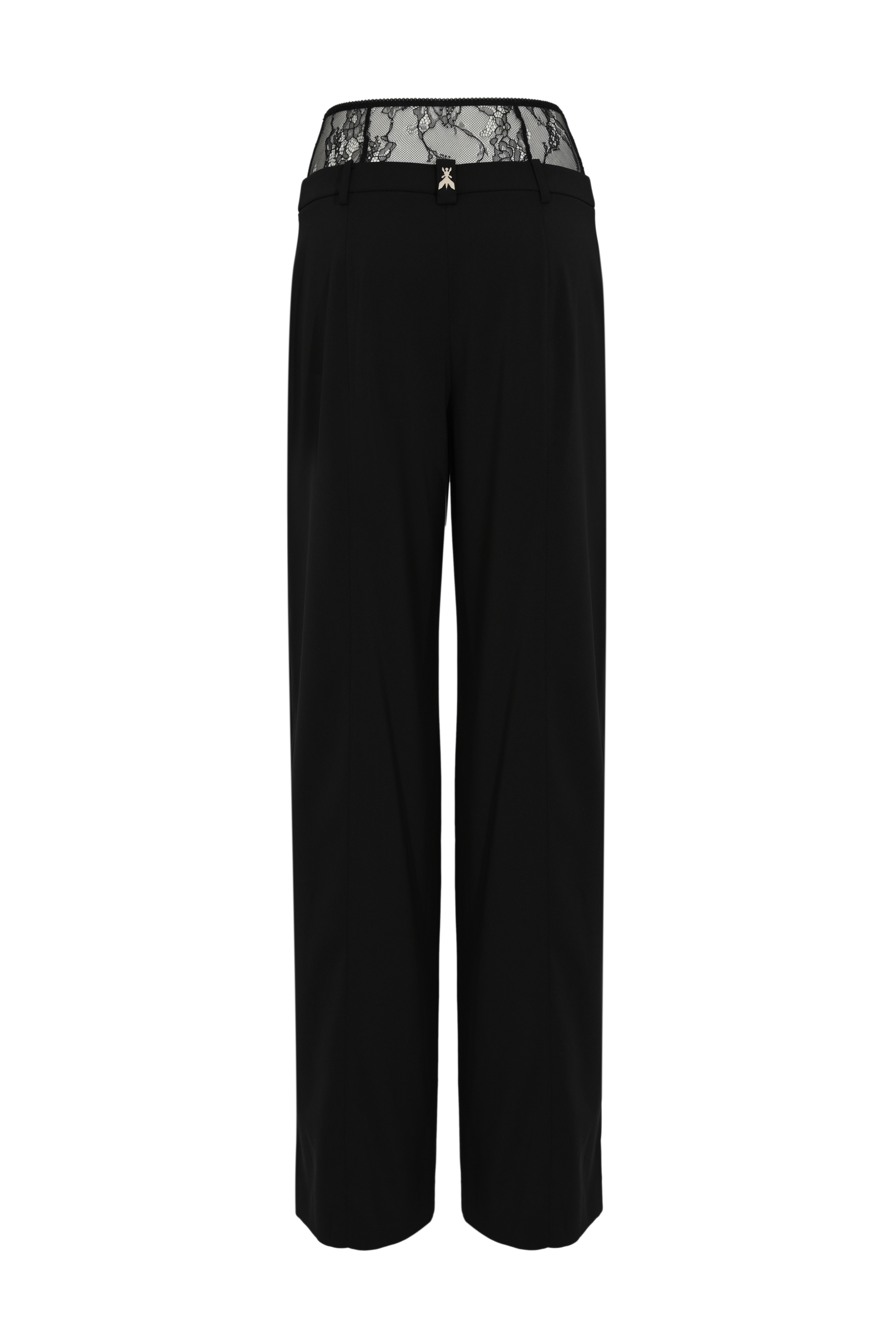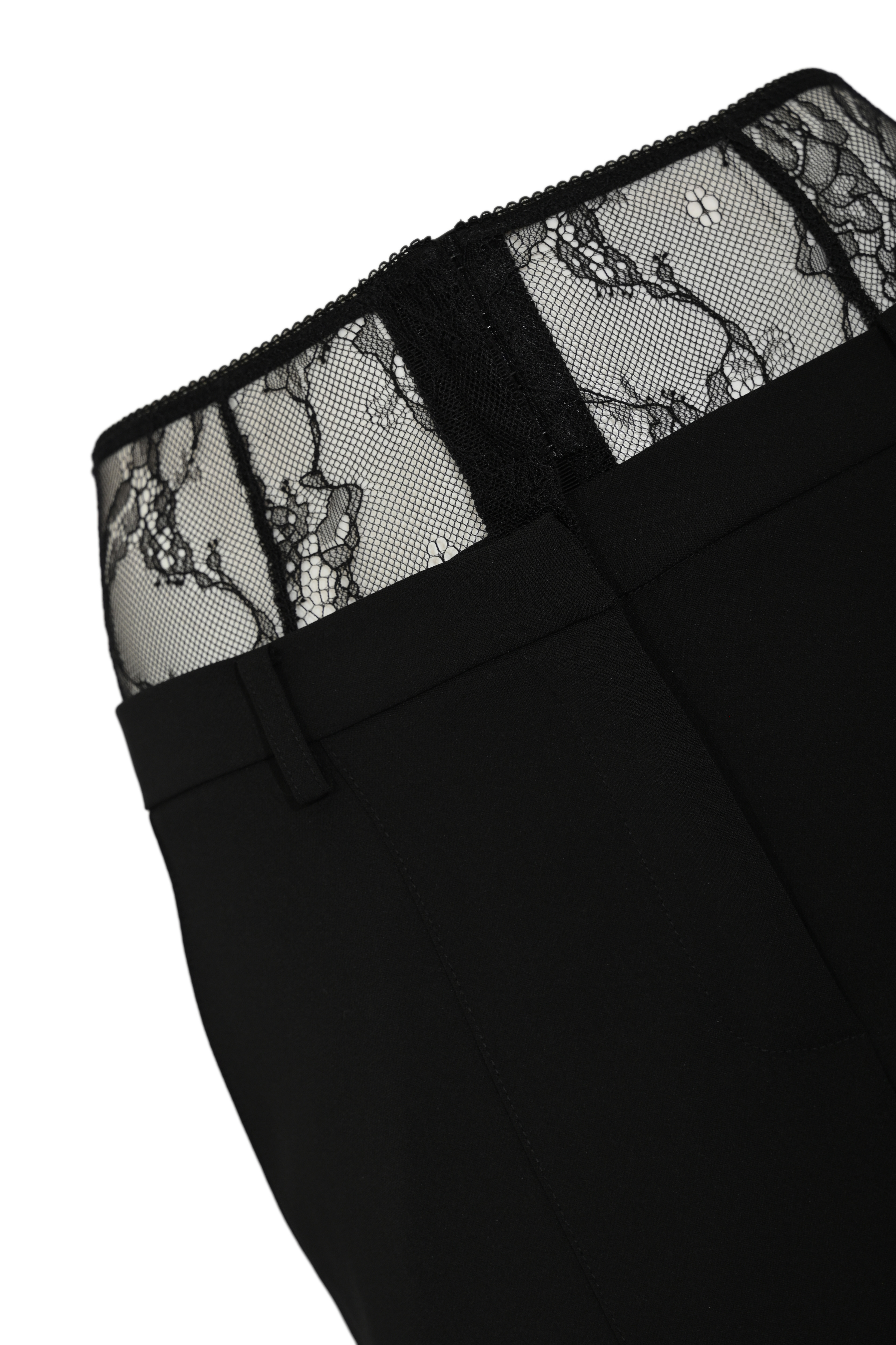 Pantaloni palazzo in crepe stretch con vita in pizzo