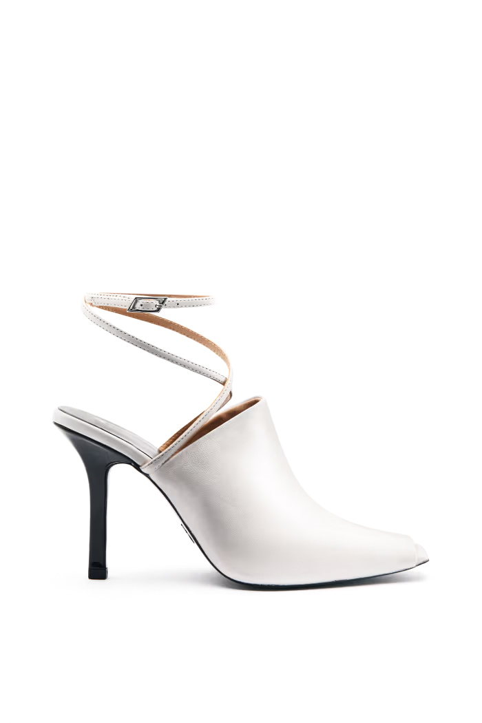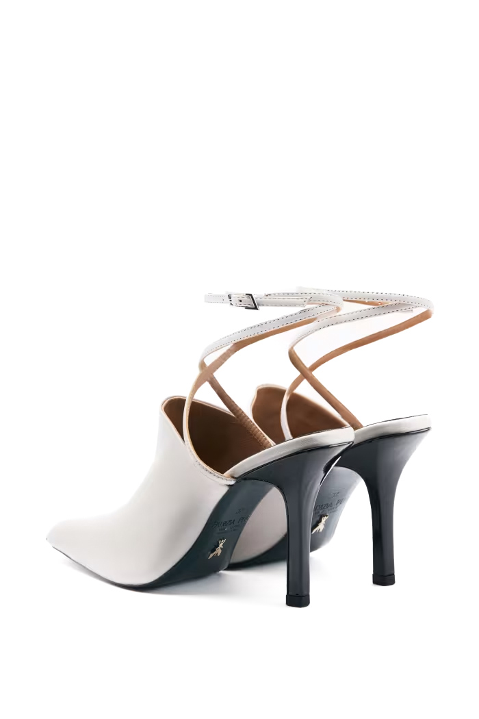 - Tacco: alto a stiletto rivestito in pelle