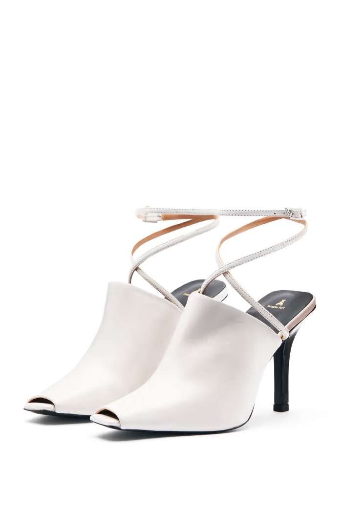 - Tomaia: pelle liscia con design avvolgente e punta aperta